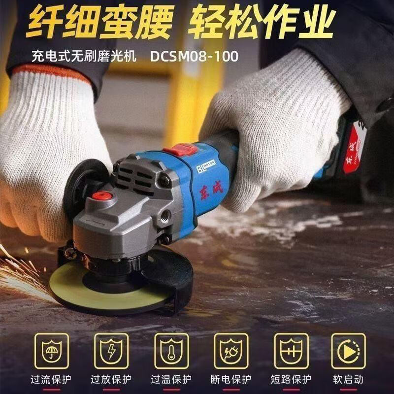 Dongcheng fine handle 08-100 brushless angle grinder 20V grinder cutting machine polishing machine household hand grinder Dongcheng 08-100 fine handle angle grinder + plastic box