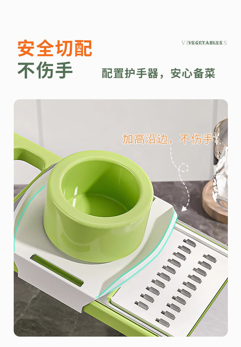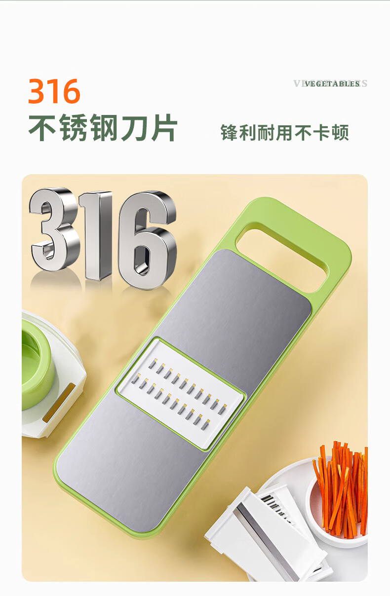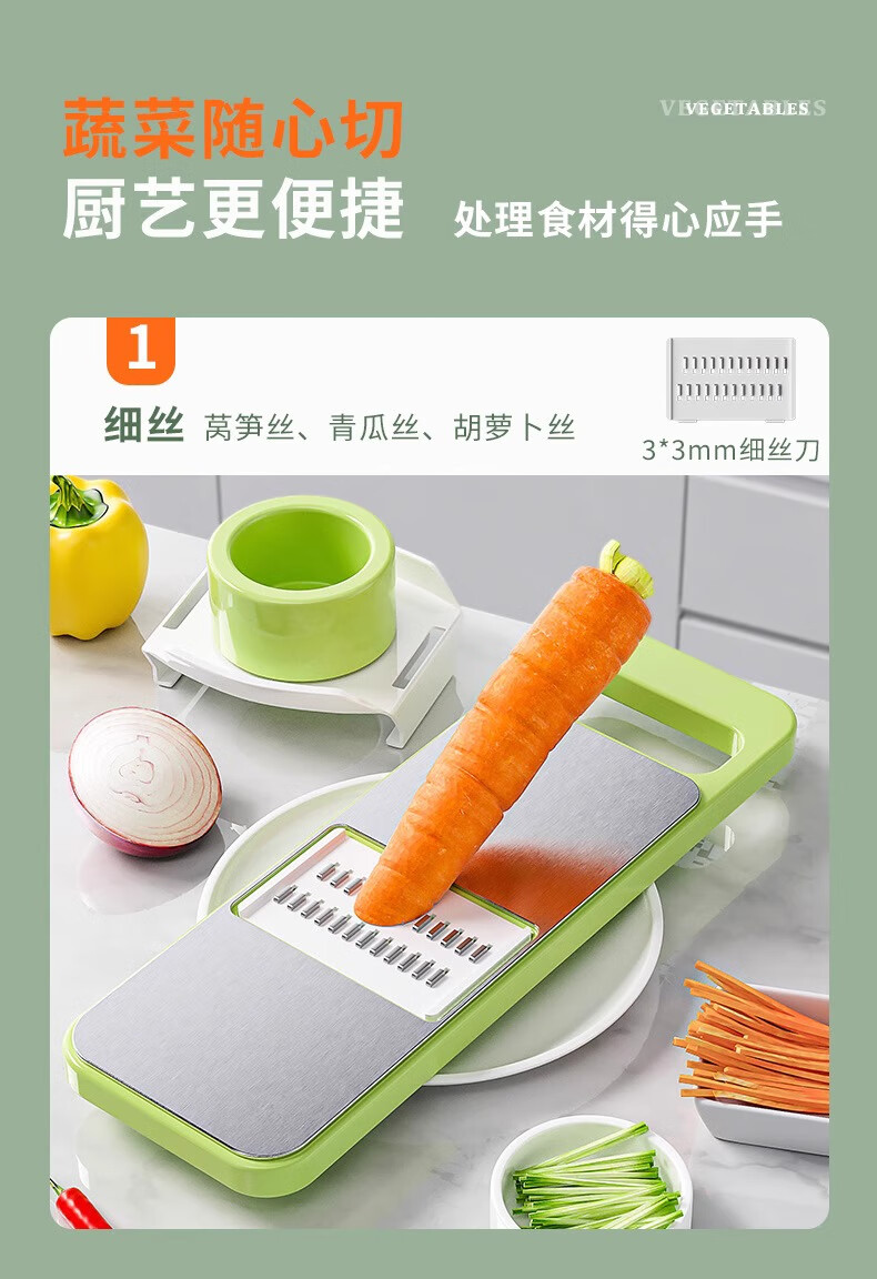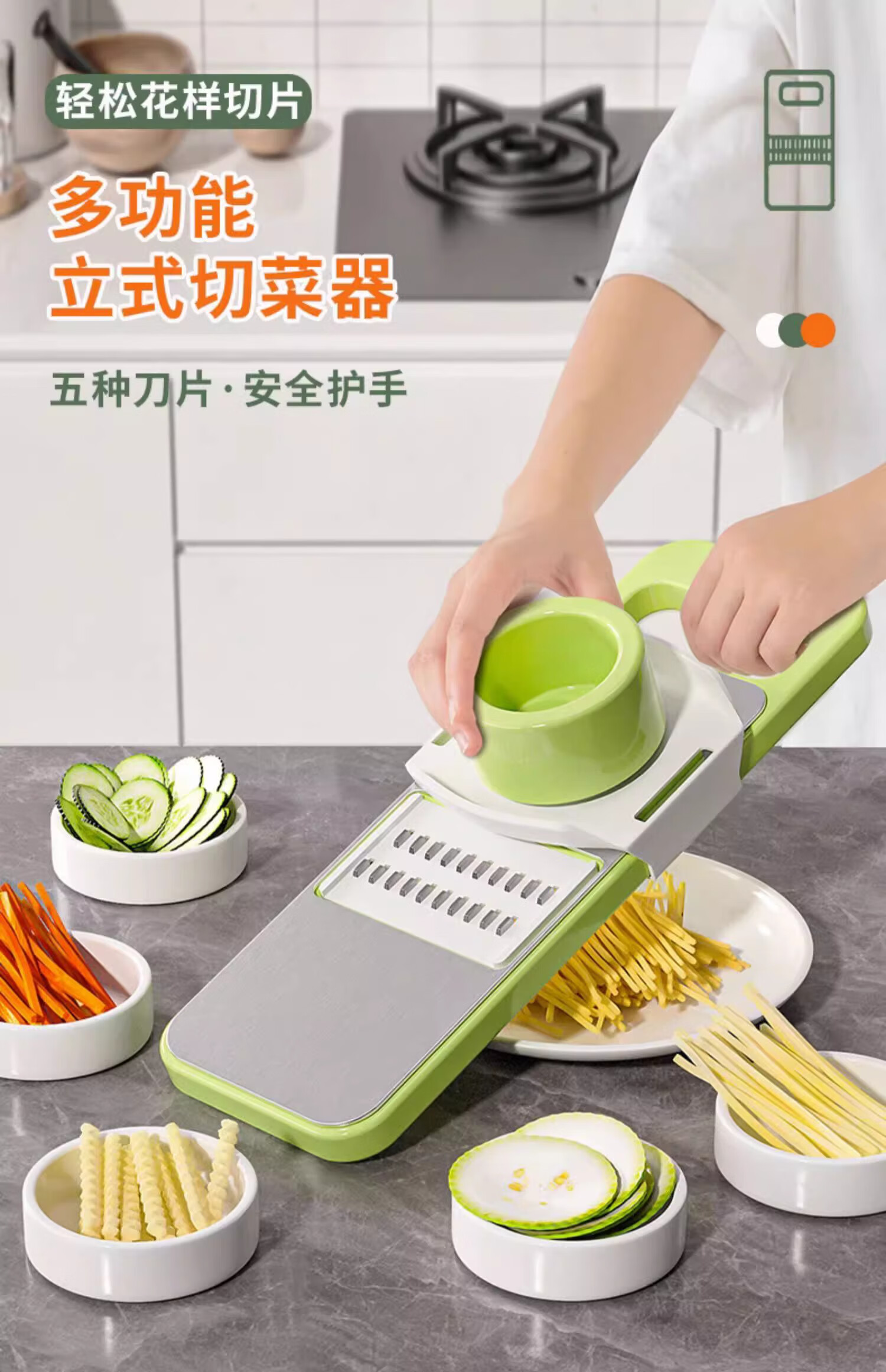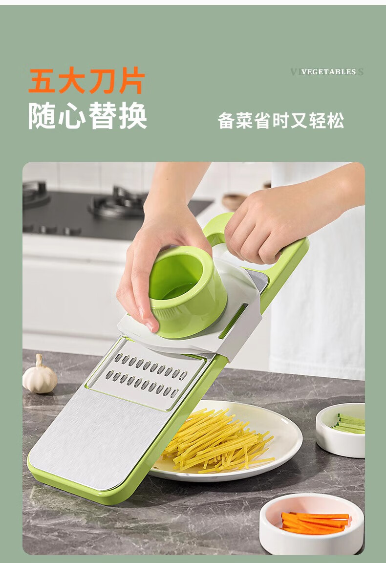 Multifunctional vegetable cutter, grater, slicing and grating artifact, free hand guard, multi-blade kitchen gadget grater, stainless steel vegetable cutter + five blade heads + hand protector