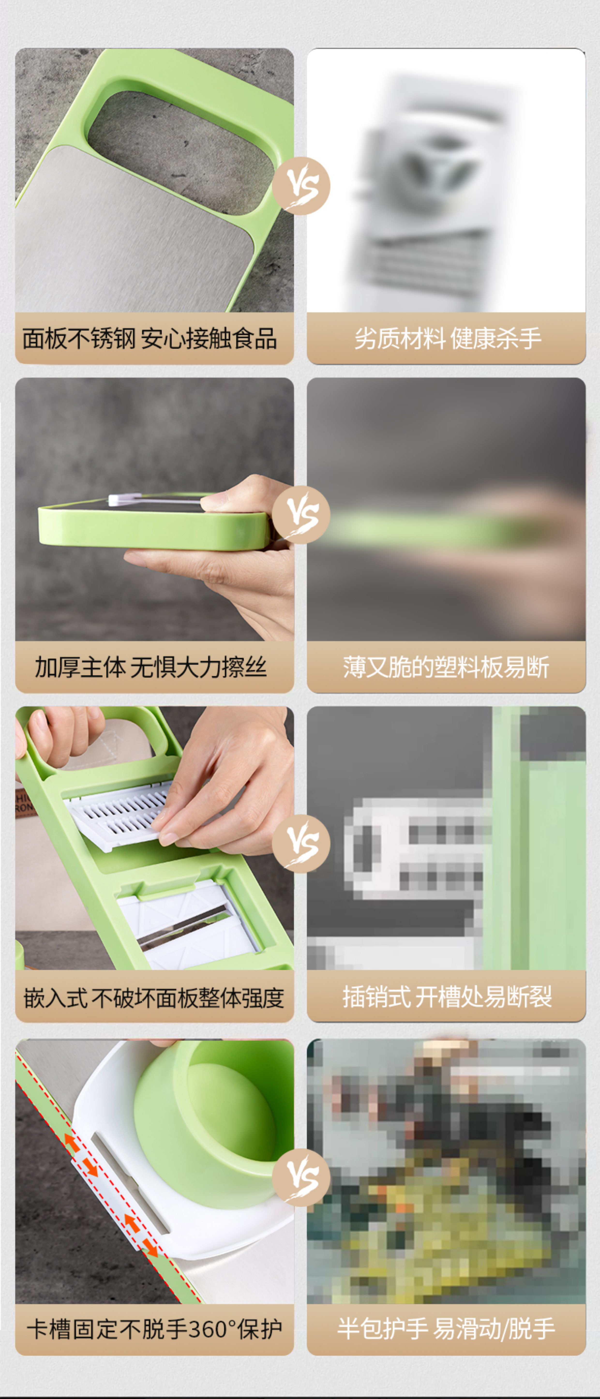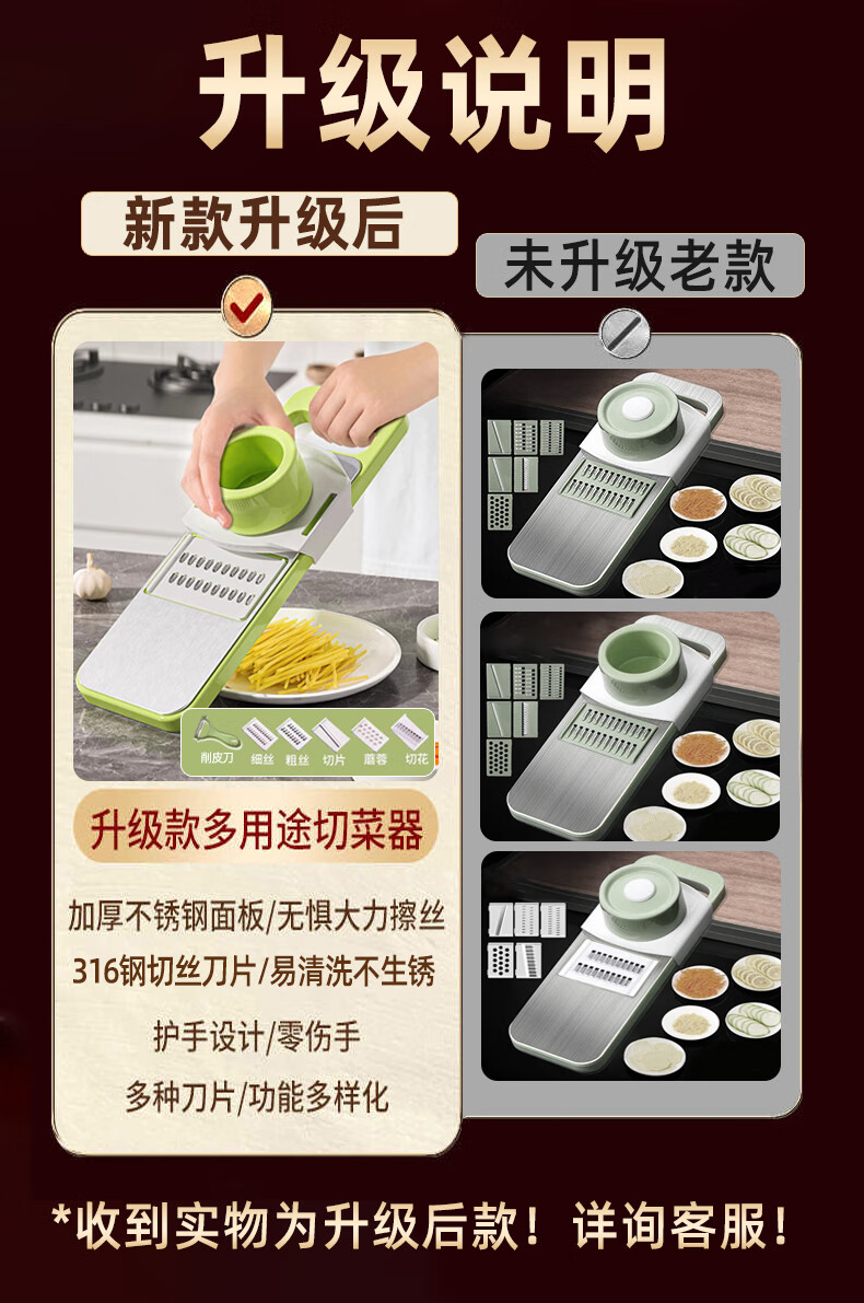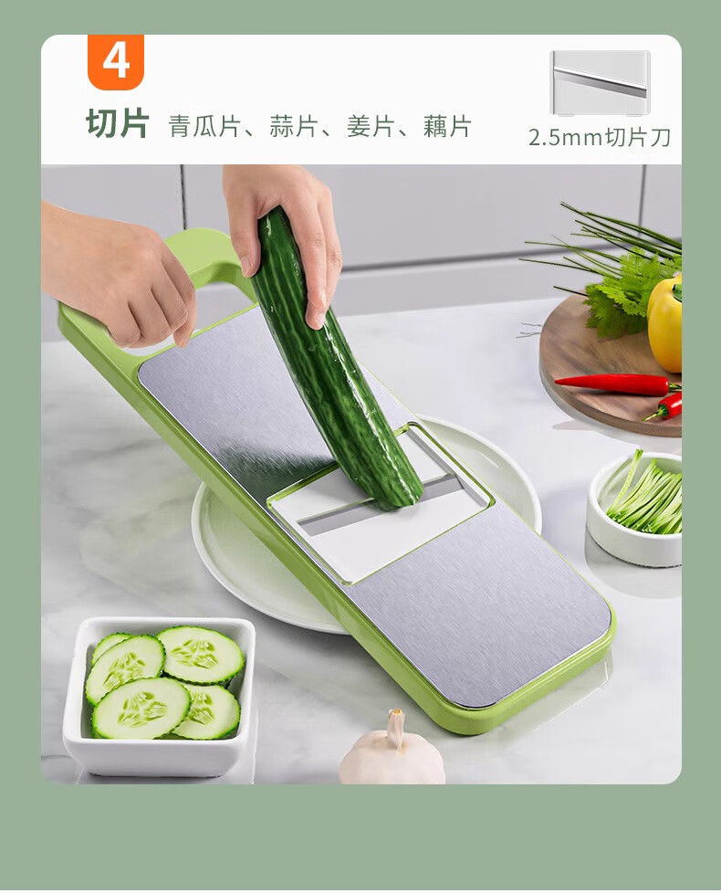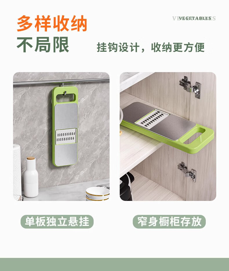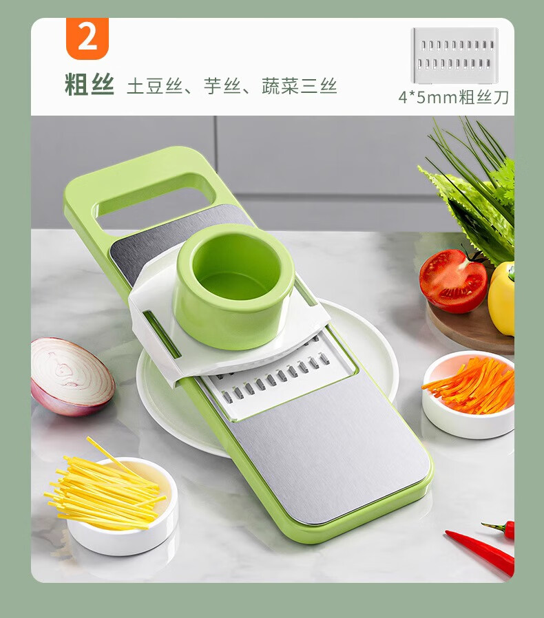 Multifunctional vegetable cutter, grater, slicing and grating artifact, free hand guard, multi-blade kitchen gadget grater, stainless steel vegetable cutter + five blade heads + hand protector