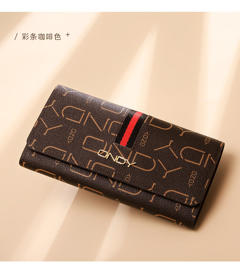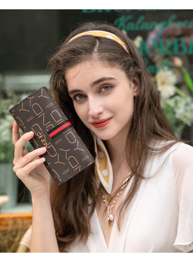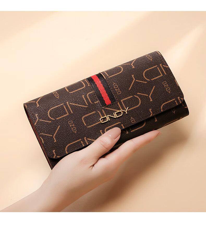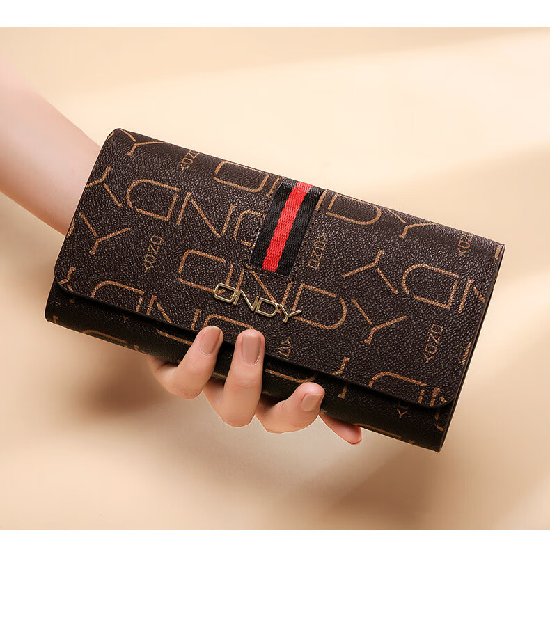 Kangaroo wallet women's long style 2025 new trendy large capacity multi-card slot women's clutch mobile phone coin purse wallet wallet color strip brown
