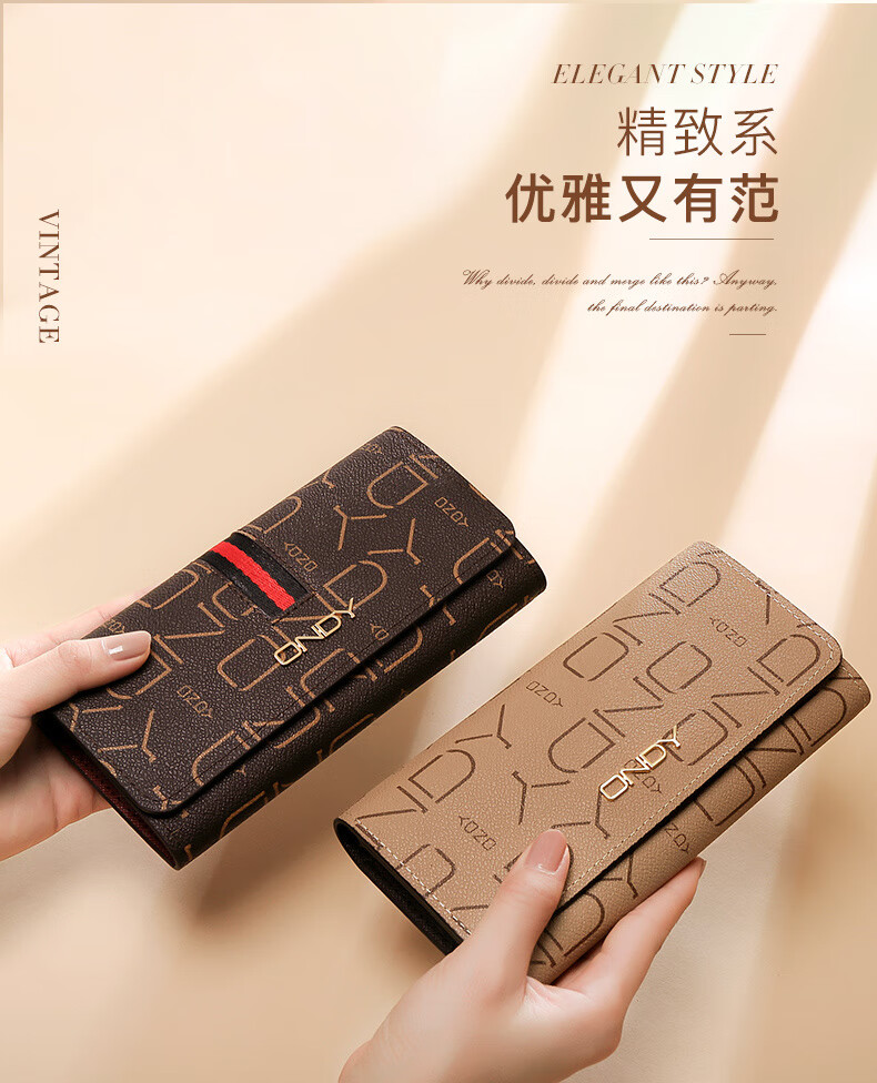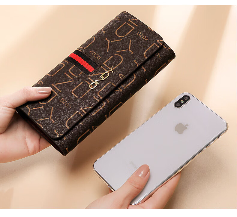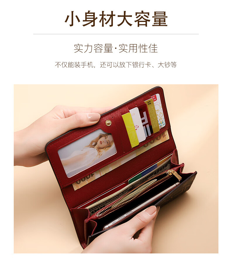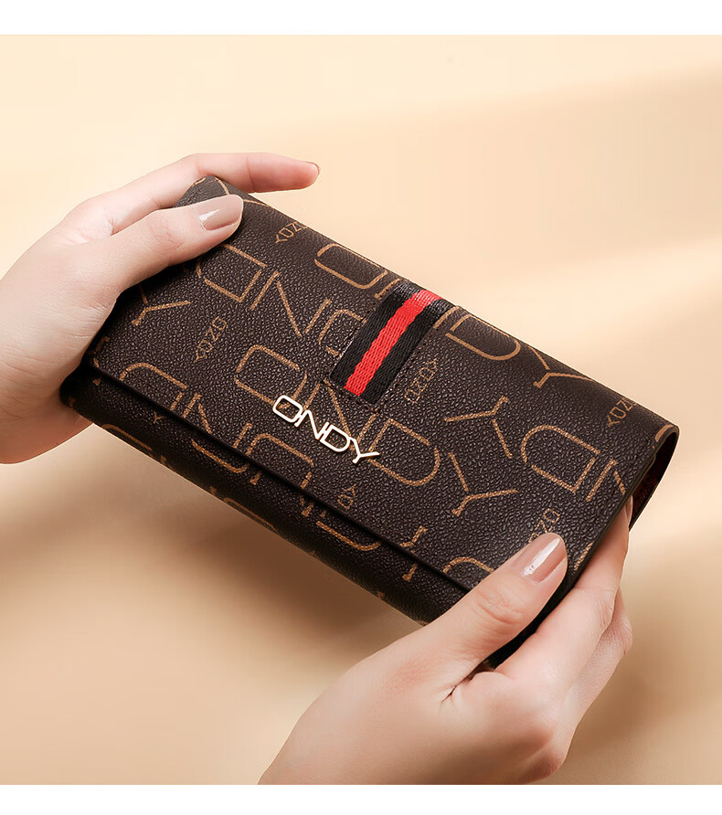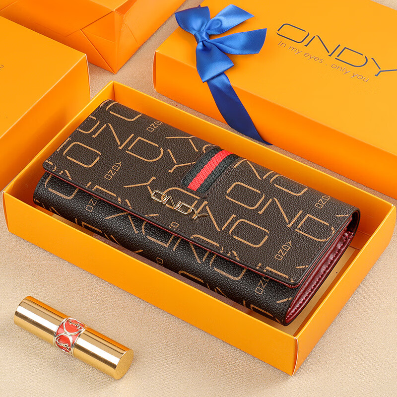 Kangaroo wallet women's long style 2025 new trendy large capacity multi-card slot women's clutch mobile phone coin purse wallet wallet color strip brown