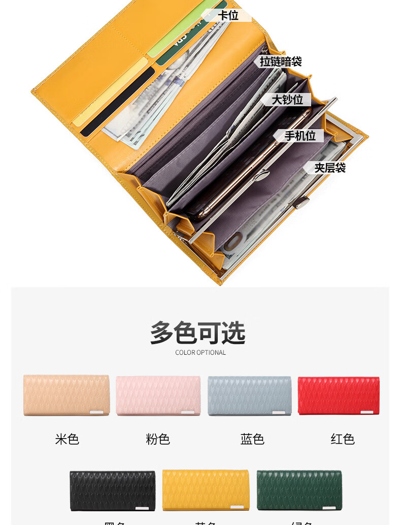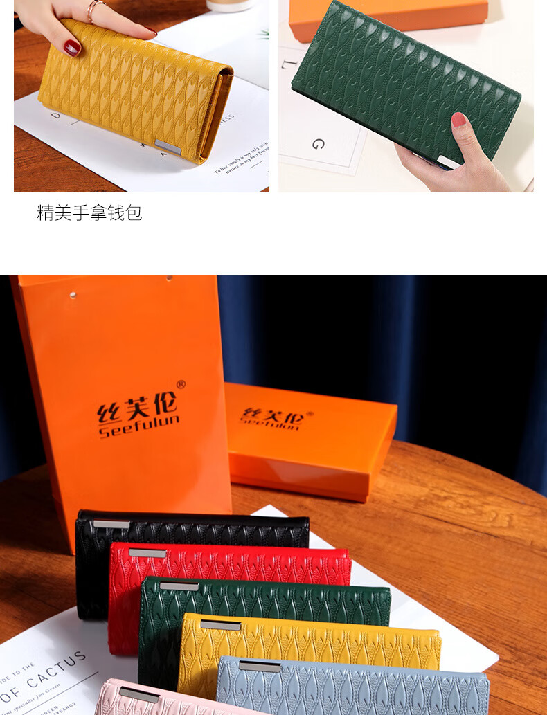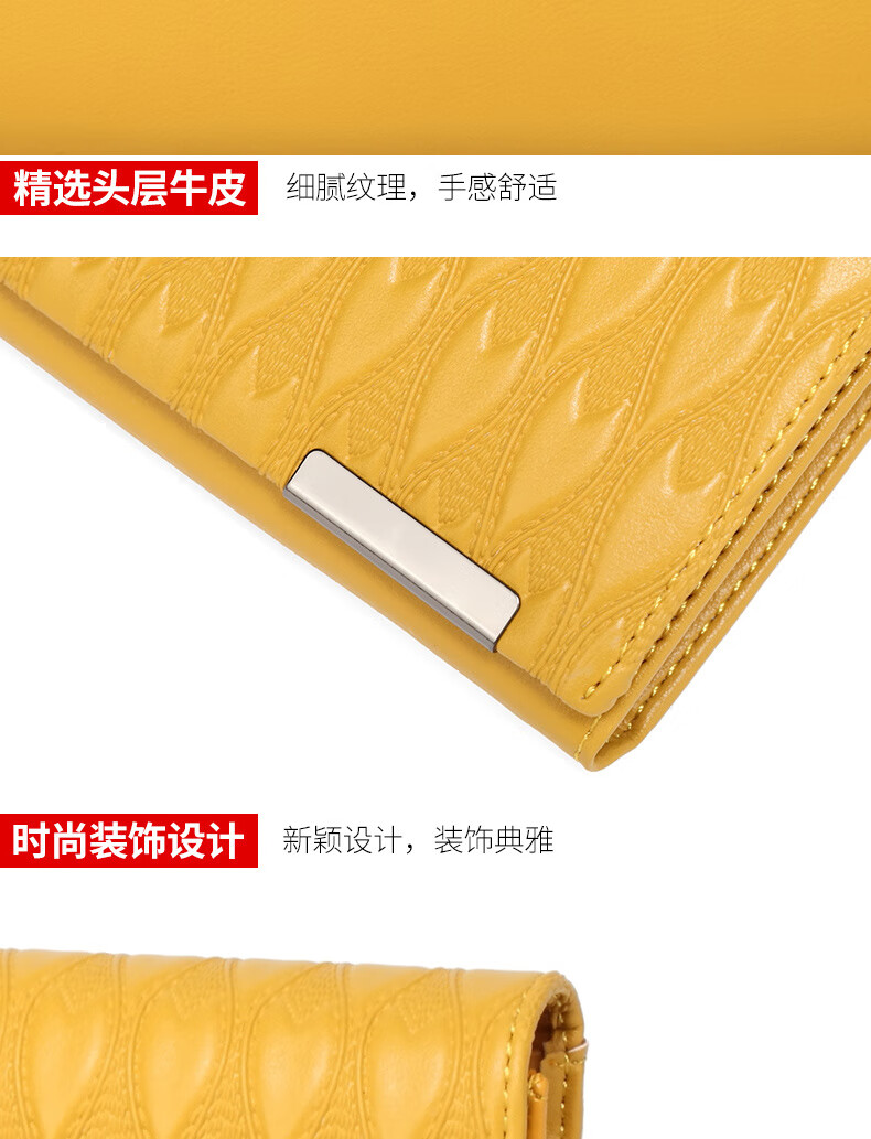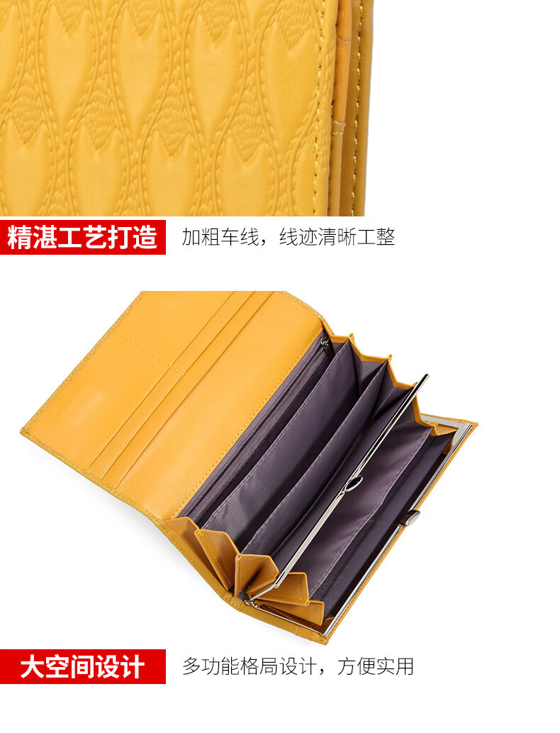 Kangaroo long hand wallet for women 2025 new genuine leather large-capacity folding wallet for mobile phones, fashionable and youthful style, yellow, no specifications