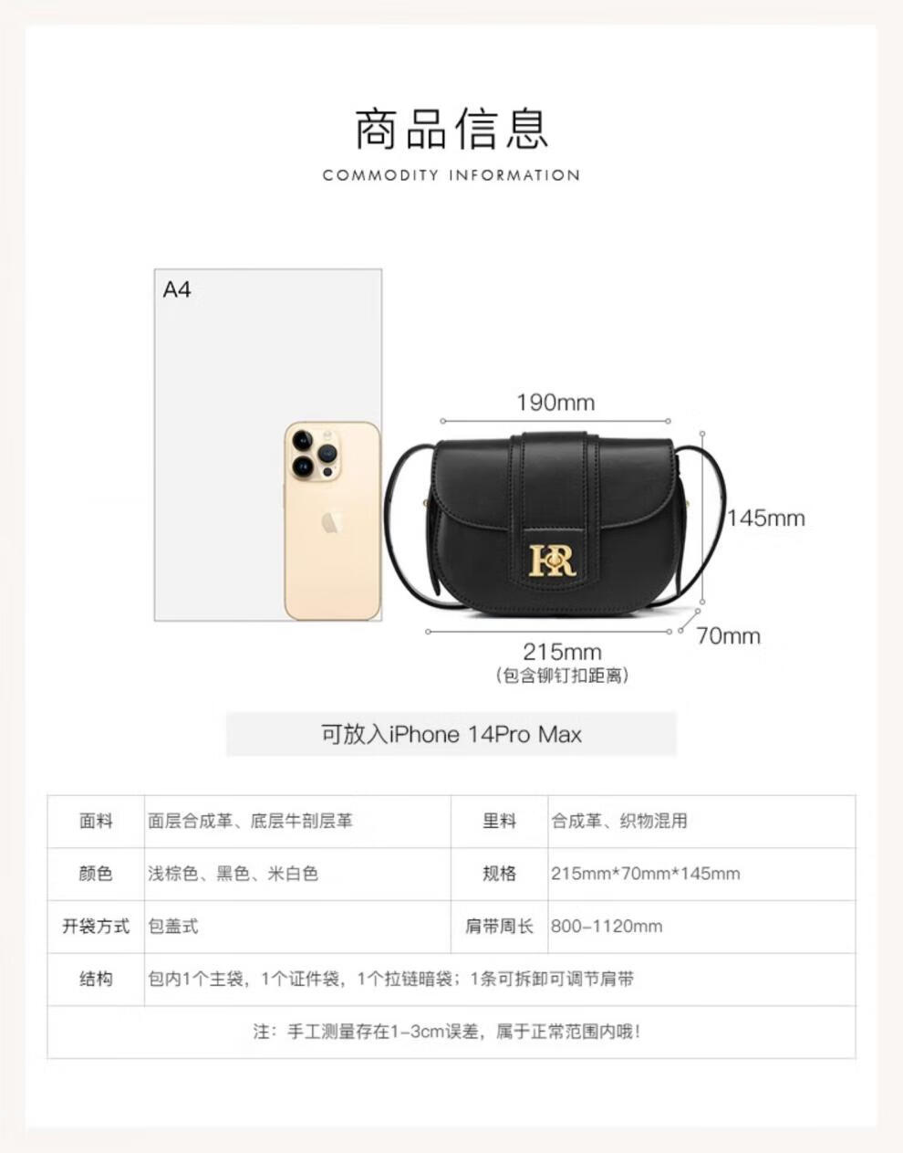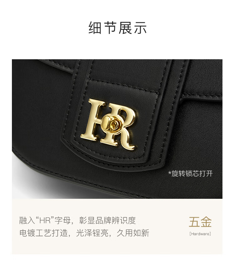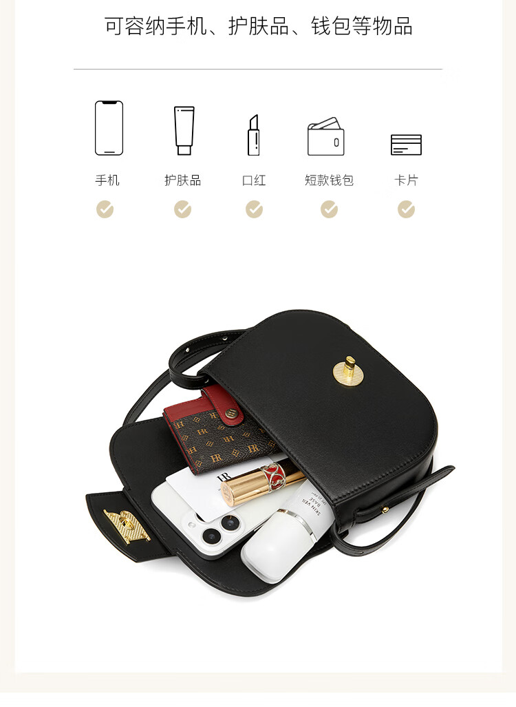 Helena 2025 new saddle bag light luxury women's shoulder bag black.