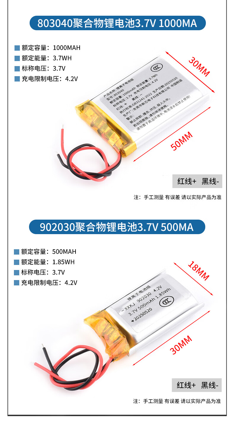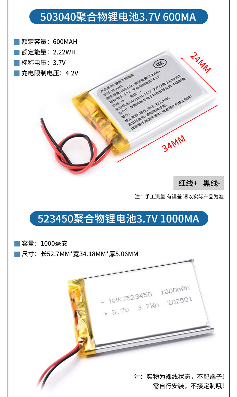 DZYJ small polymer 3.7V large capacity rechargeable wireless Bluetooth headset lithium battery driving recorder speaker universal 602030 polymer lithium battery 3.7V300ma no specifications