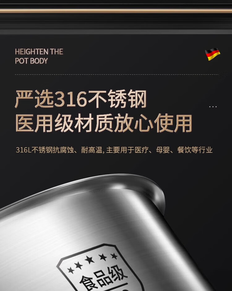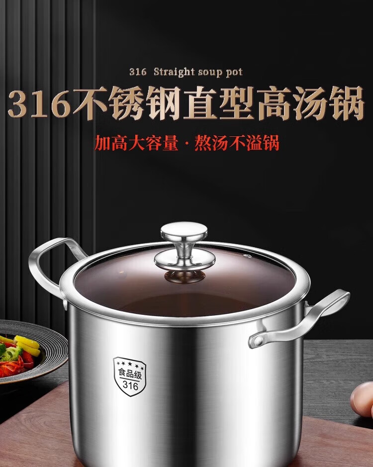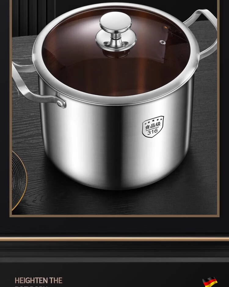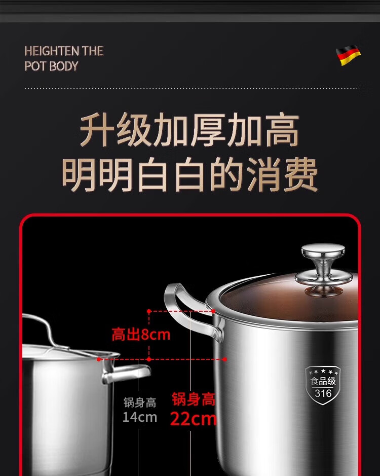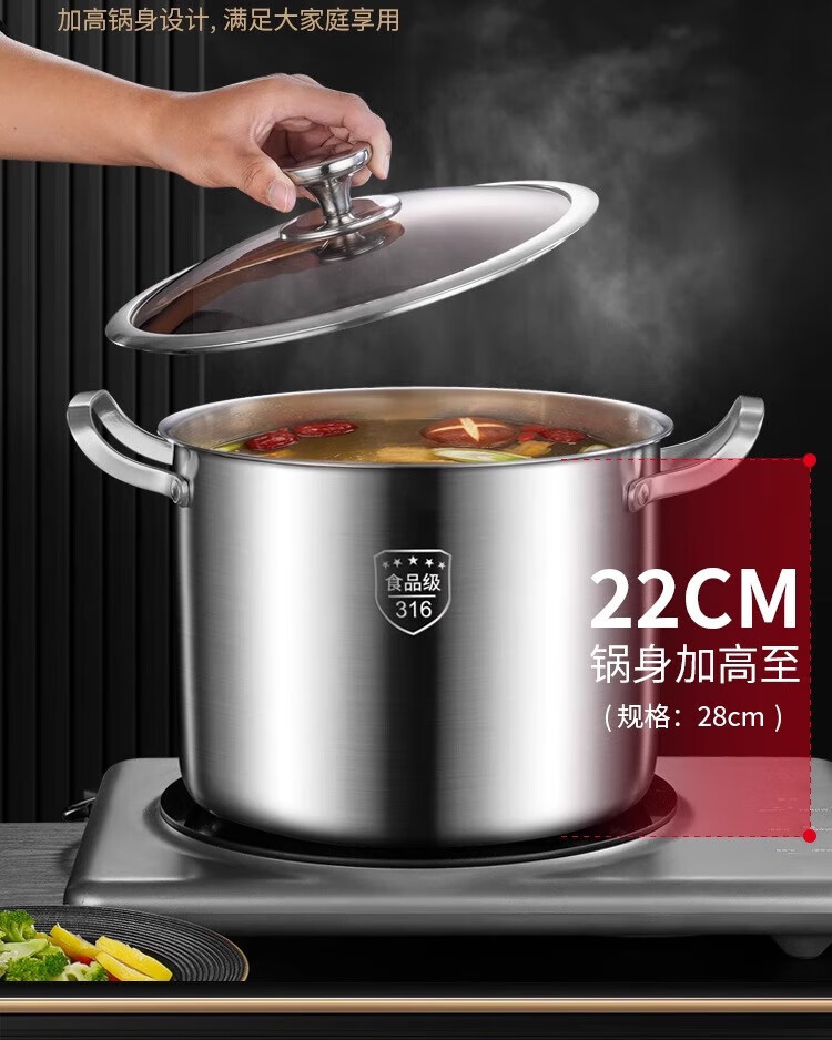 Bambetel German bambetel316 stainless steel extra-high soup pot household non-stick pot steaming and stewing integrated thickening and deepening extra-thick soup pot + 1 layer steaming grid (8-10 people) 34cm