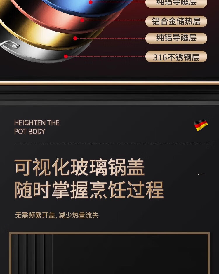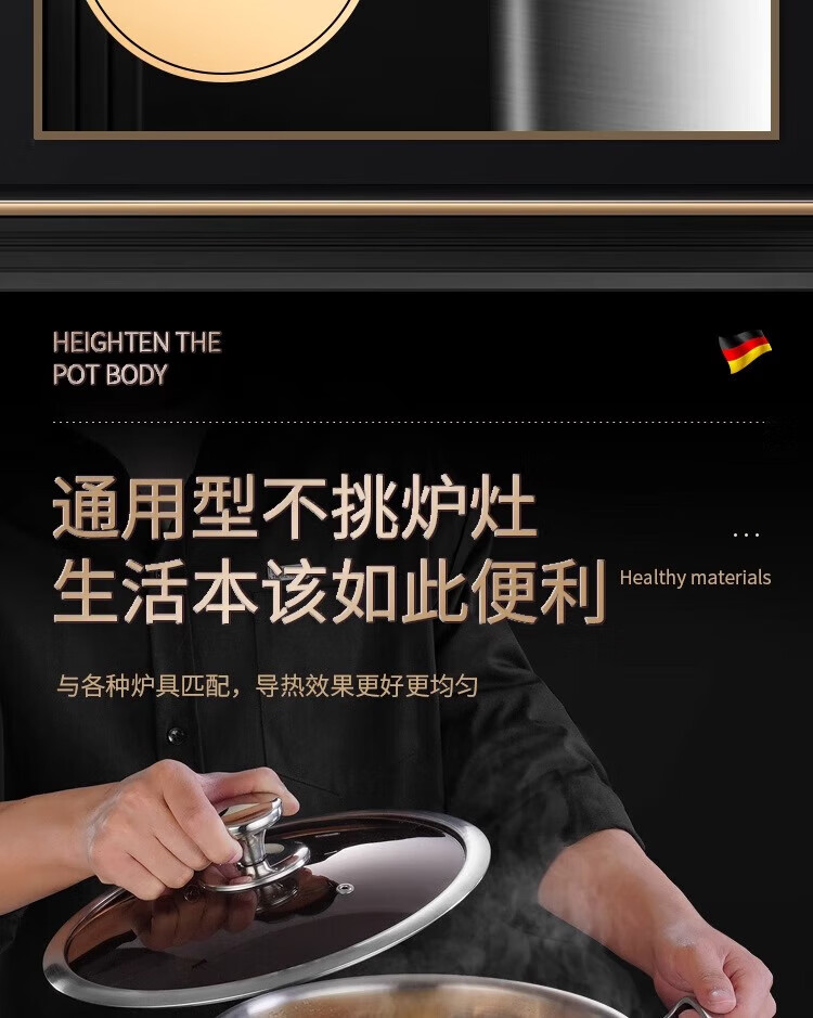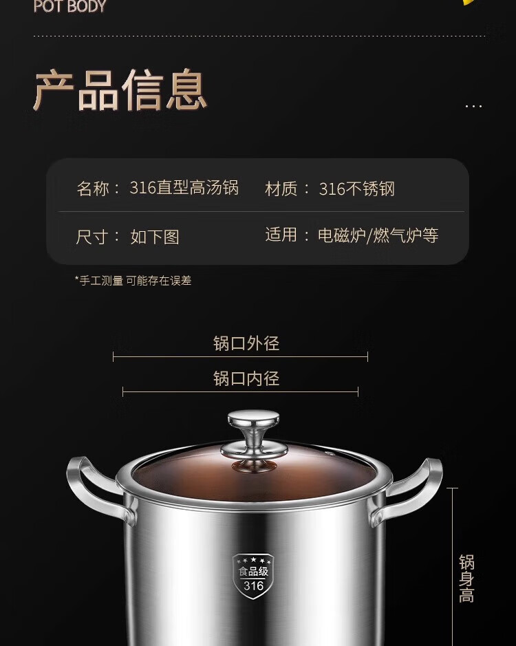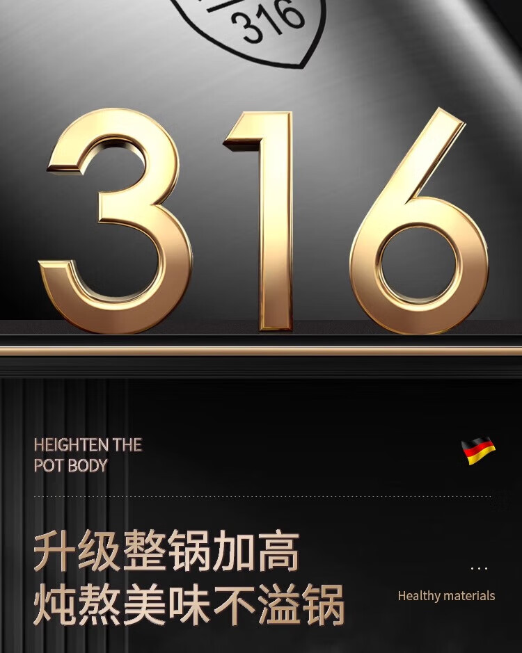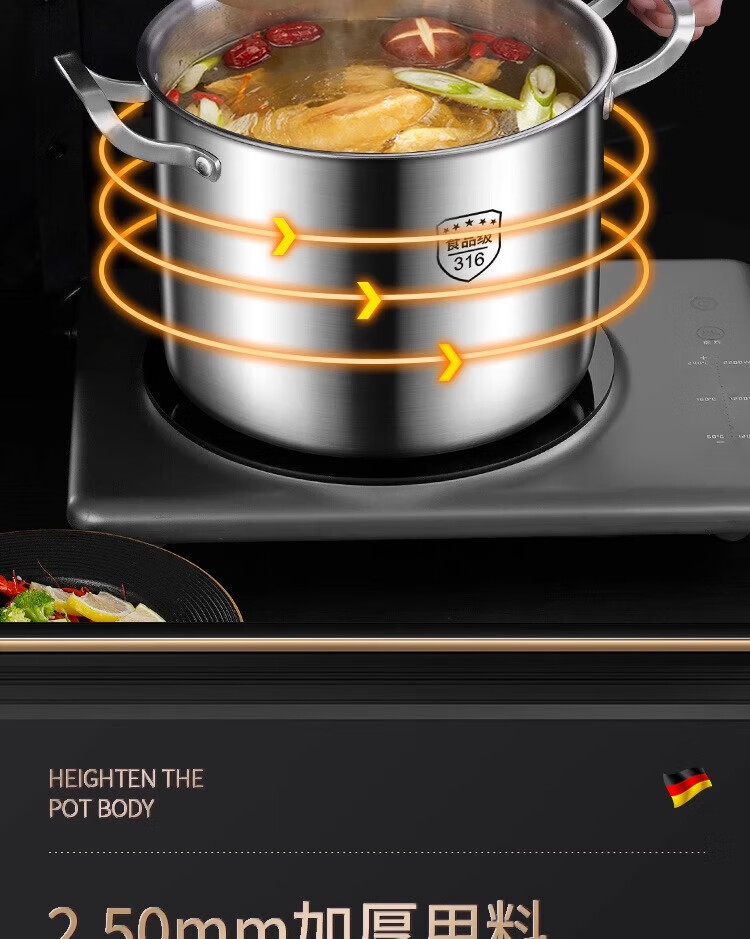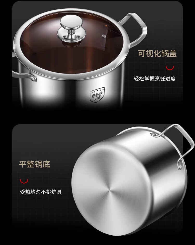 Bambetel German bambetel316 stainless steel extra-high soup pot household non-stick pot steaming and stewing integrated thickening and deepening extra-thick soup pot + 1 layer steaming grid (8-10 people) 34cm