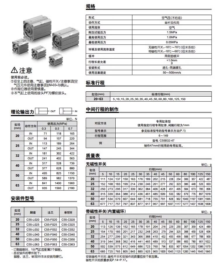 SMCSMC new original thin cylinder C55B20/25/32/40/50/63-10/15/20/25/30-150M C55B32-150M