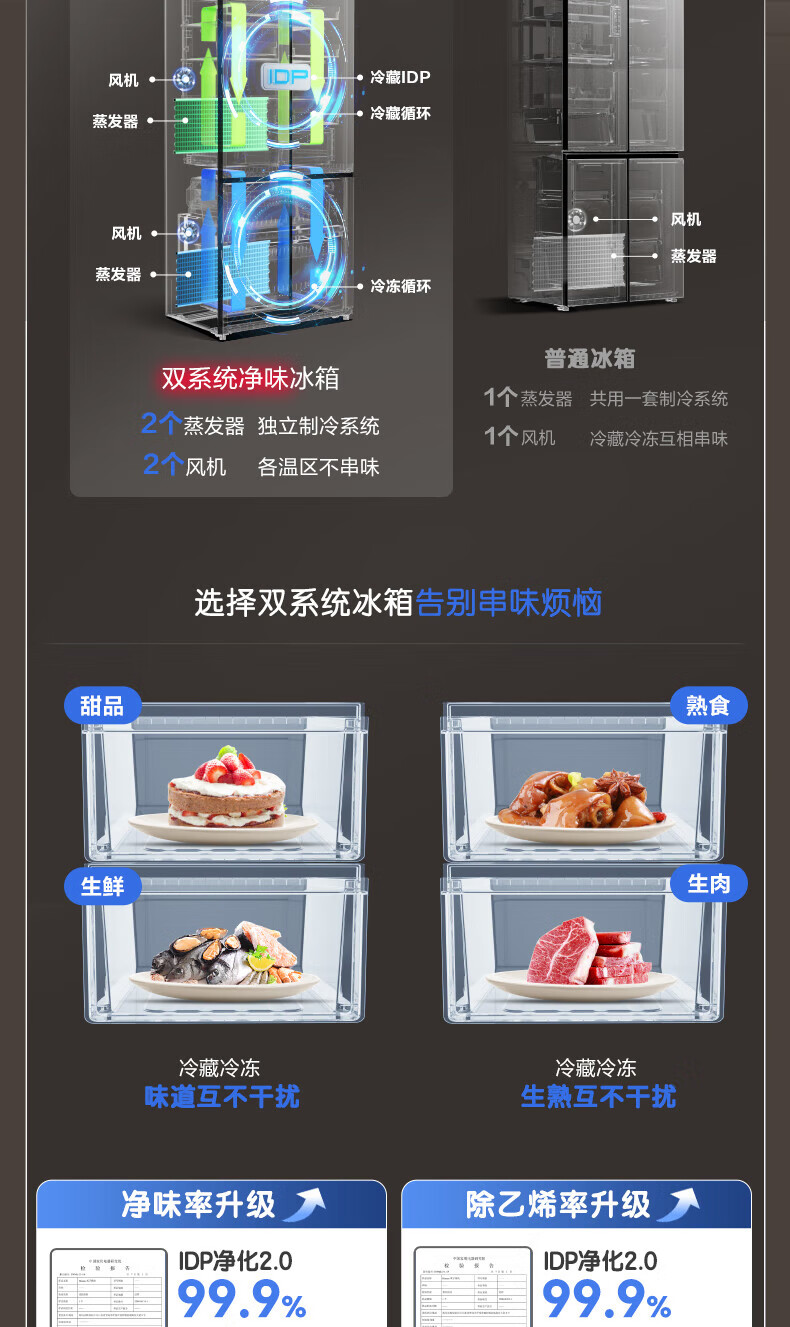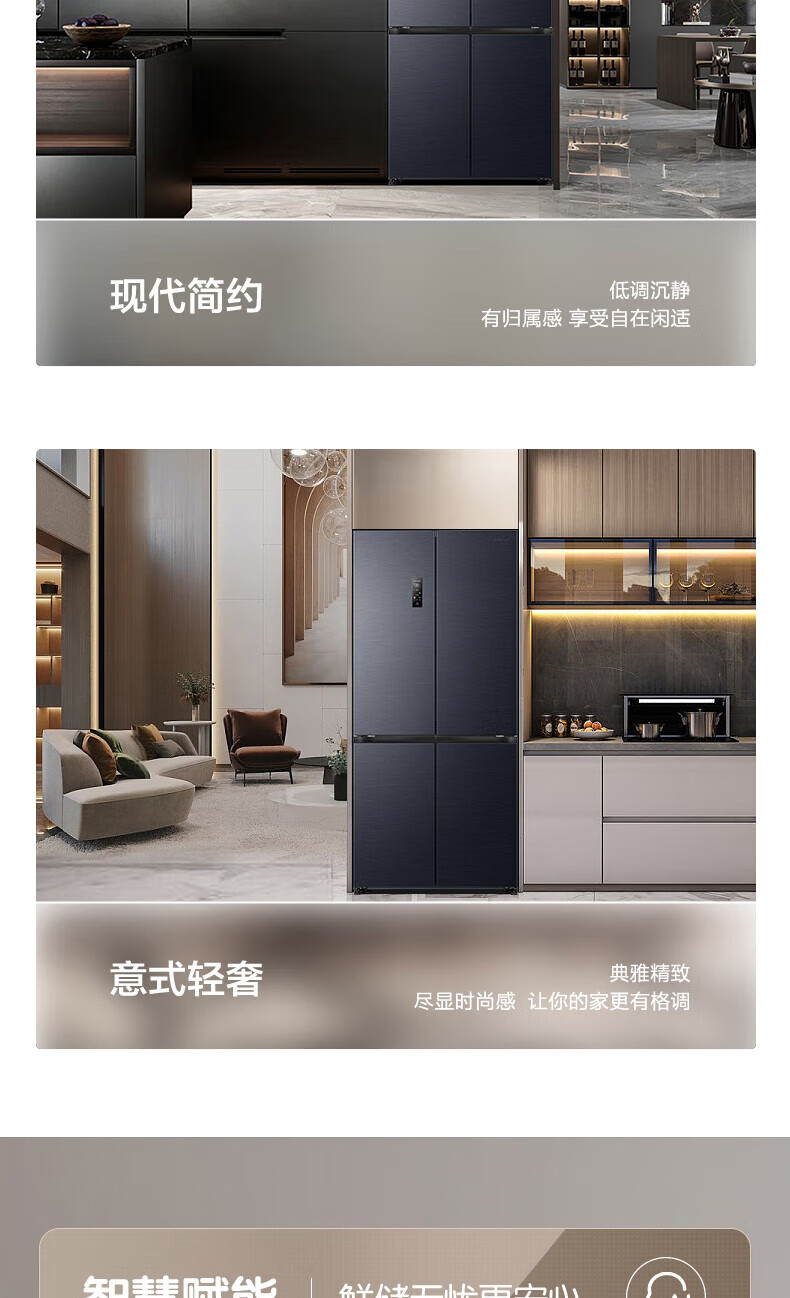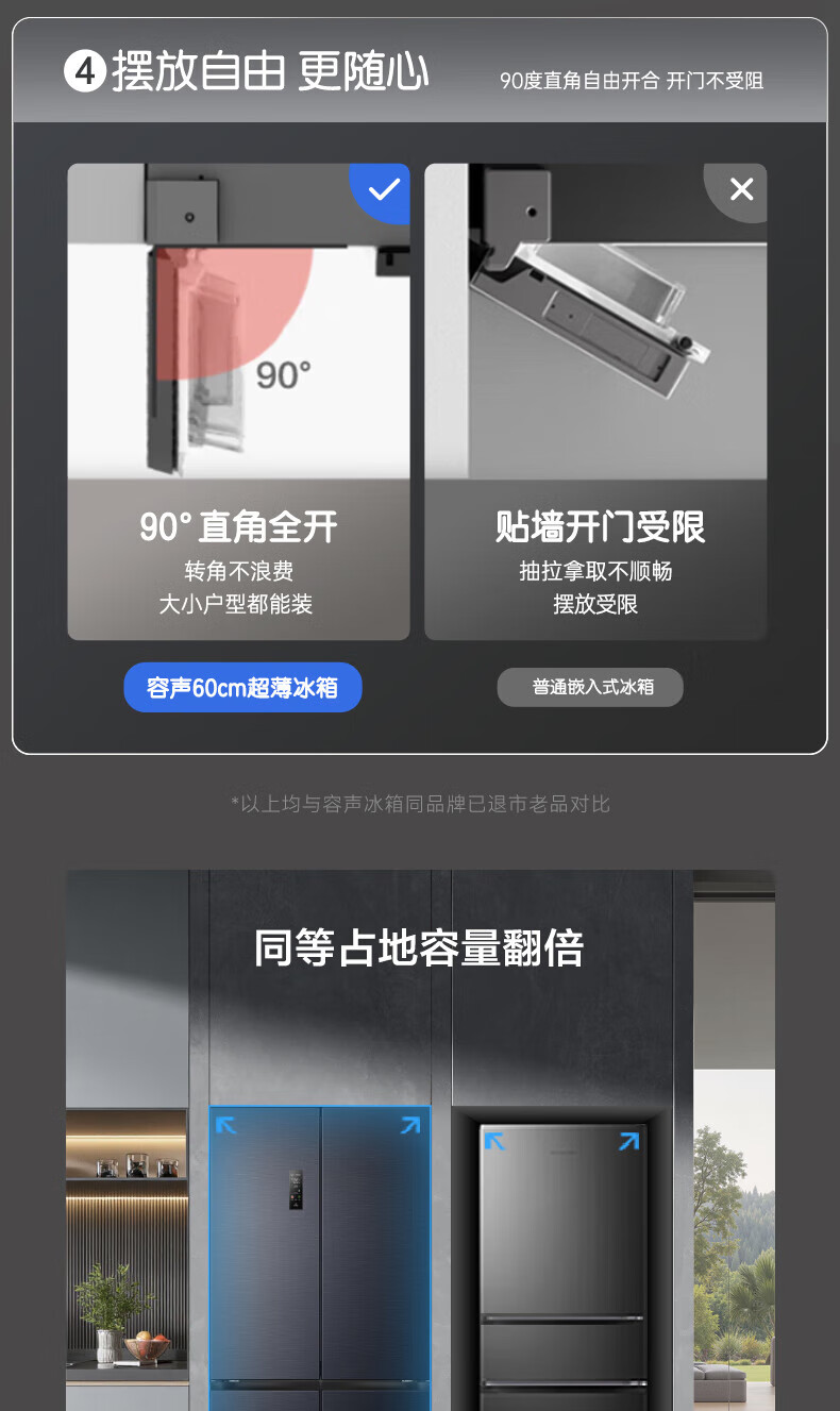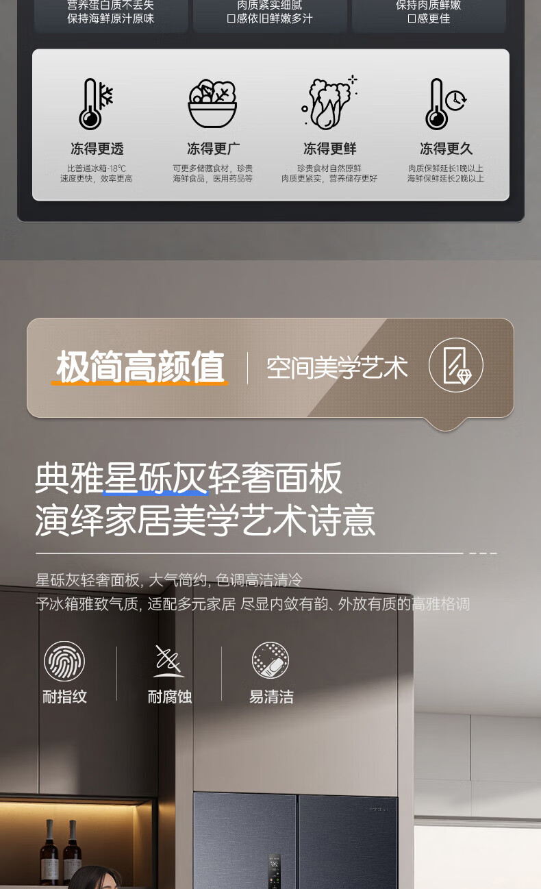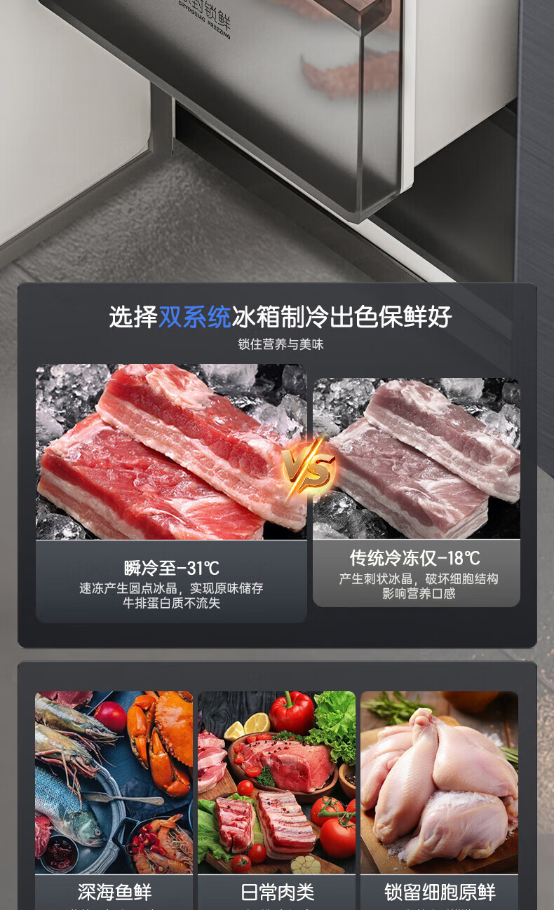 Rongsheng 507-liter IDP2.0 deodorizing dual system cross-fold four-door ultra-thin zero-embedded refrigerator household first-class energy efficiency BCD-507E50CZLAD national subsidy active sterilization | blue light freshness 60cm true zero embedded | bottom heat dissipation