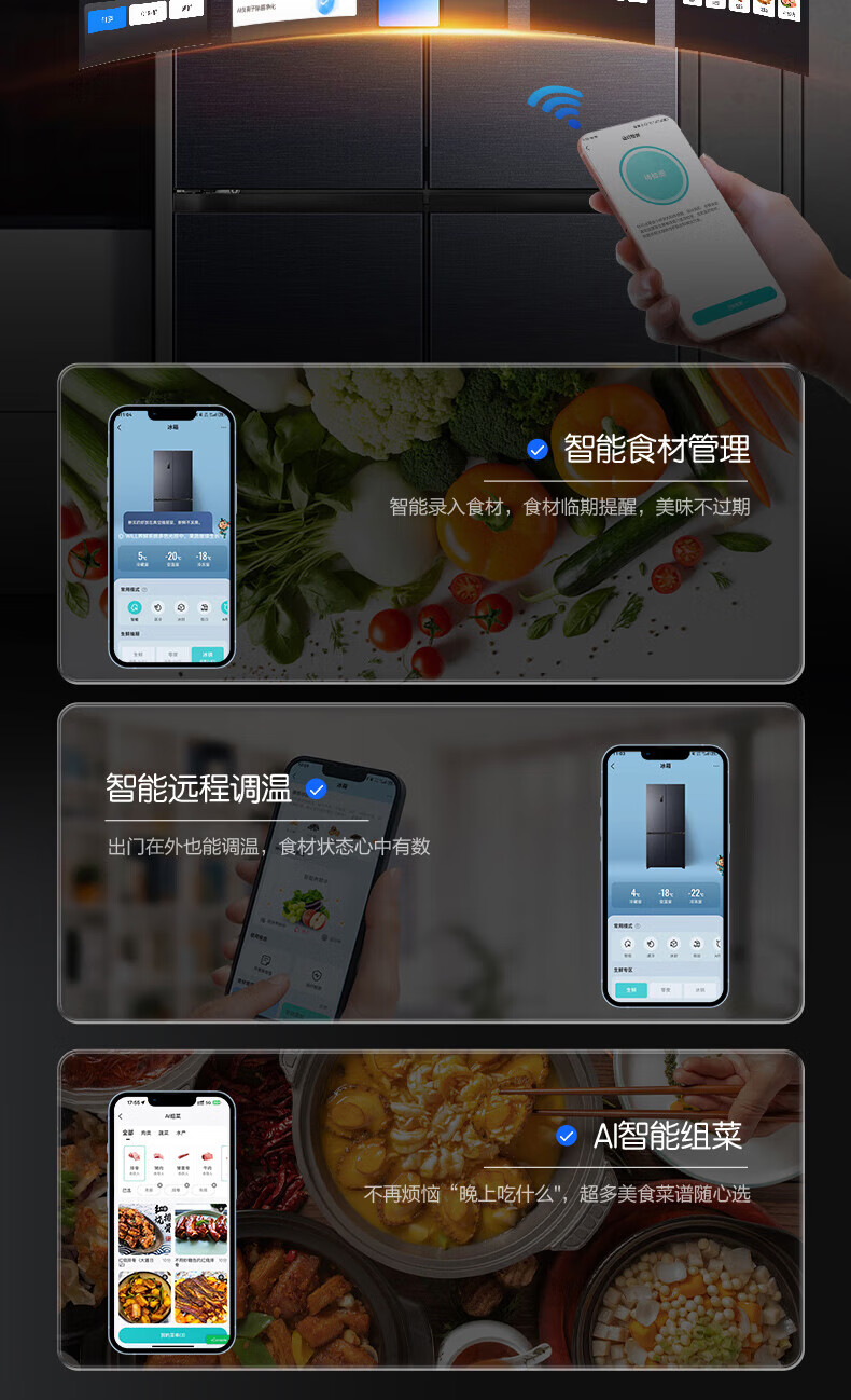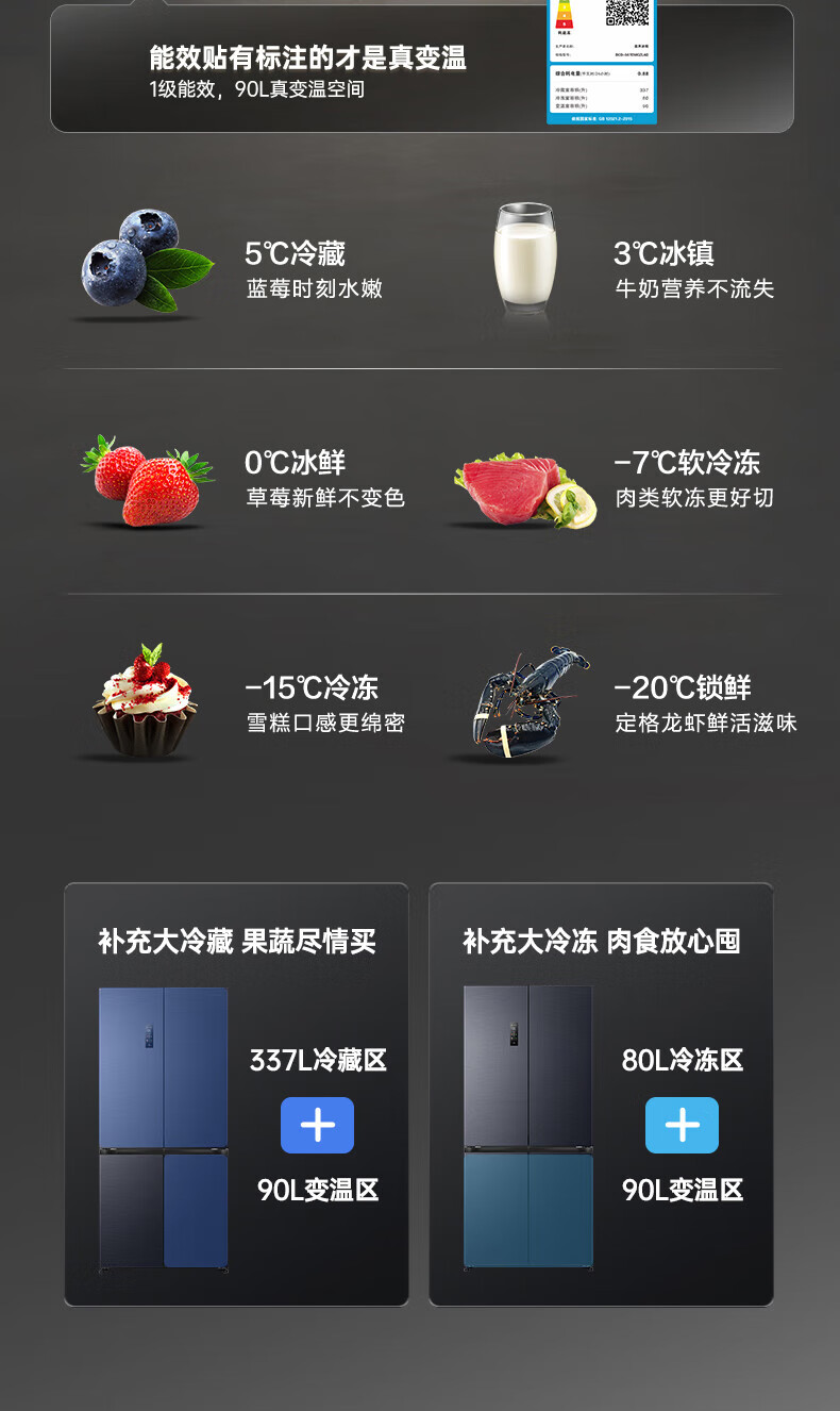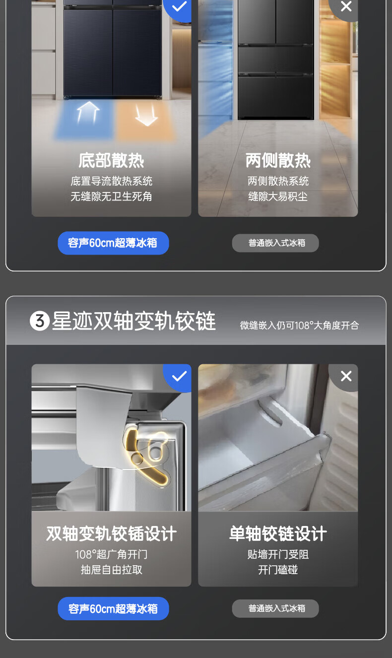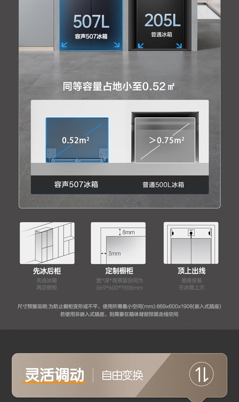 Rongsheng 507-liter IDP2.0 deodorizing dual system cross-fold four-door ultra-thin zero-embedded refrigerator household first-class energy efficiency BCD-507E50CZLAD national subsidy active sterilization | blue light freshness 60cm true zero embedded | bottom heat dissipation