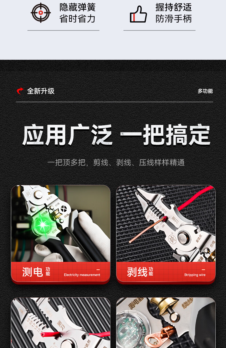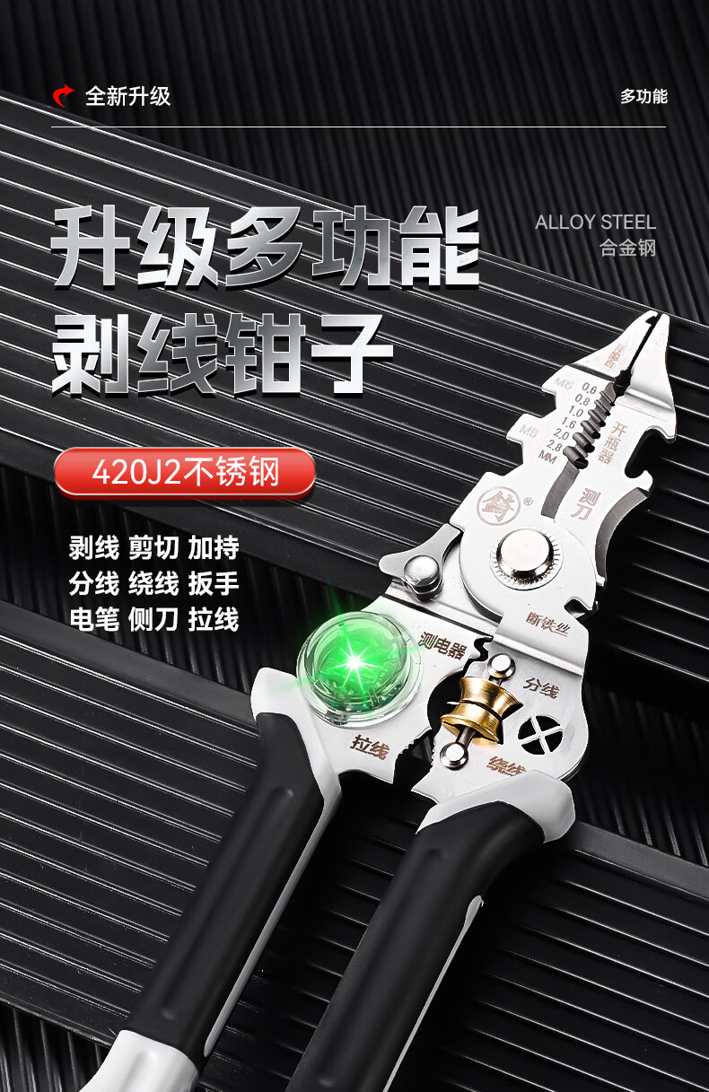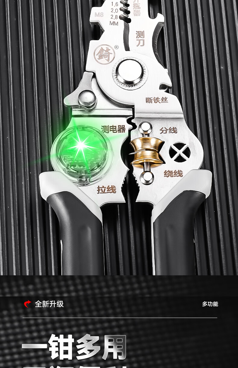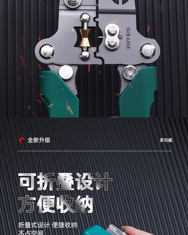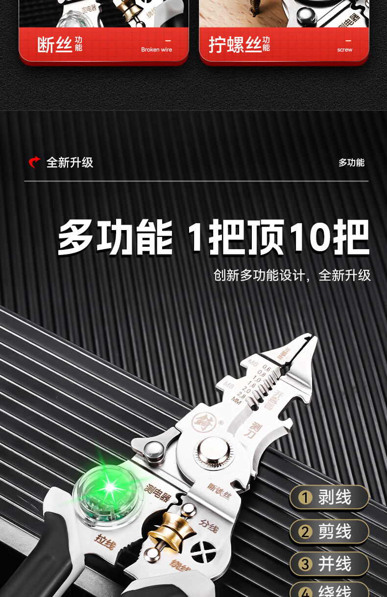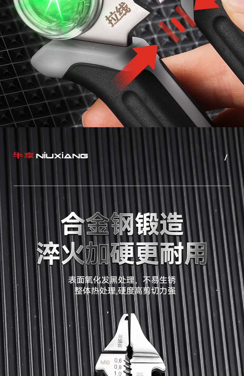 Niuxiang foldable wire stripper, new industrial-grade multi-functional wire stripper, screw-tightening pulley design with electric test, folding electric test wire stripper, forged head, extra thick