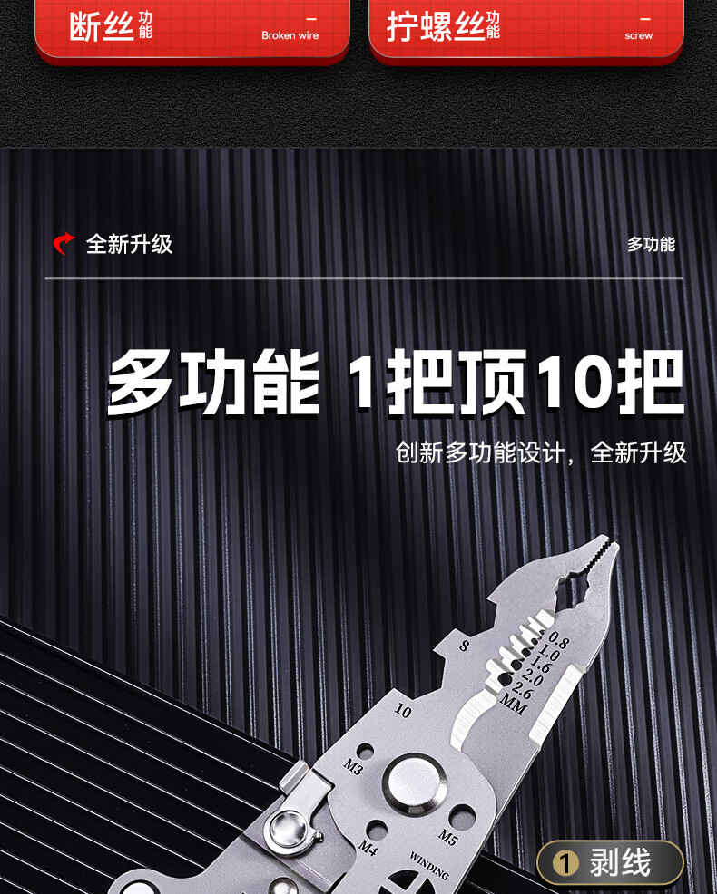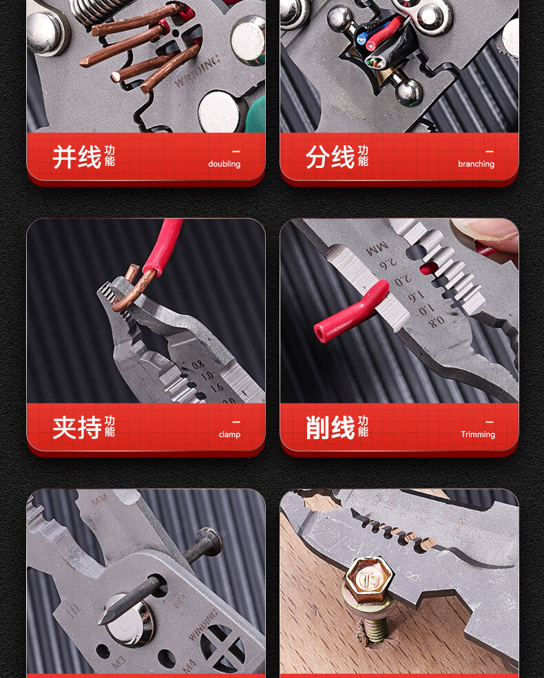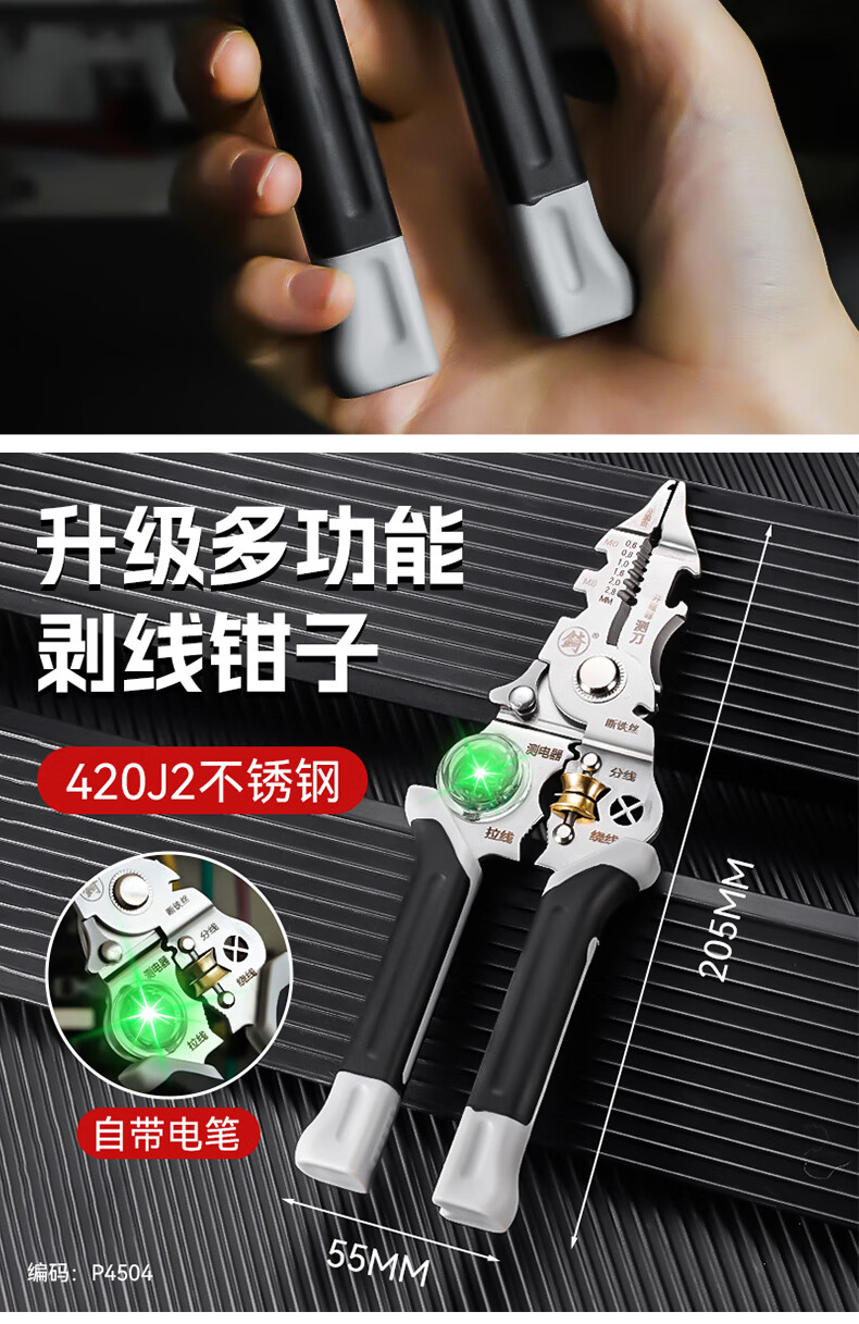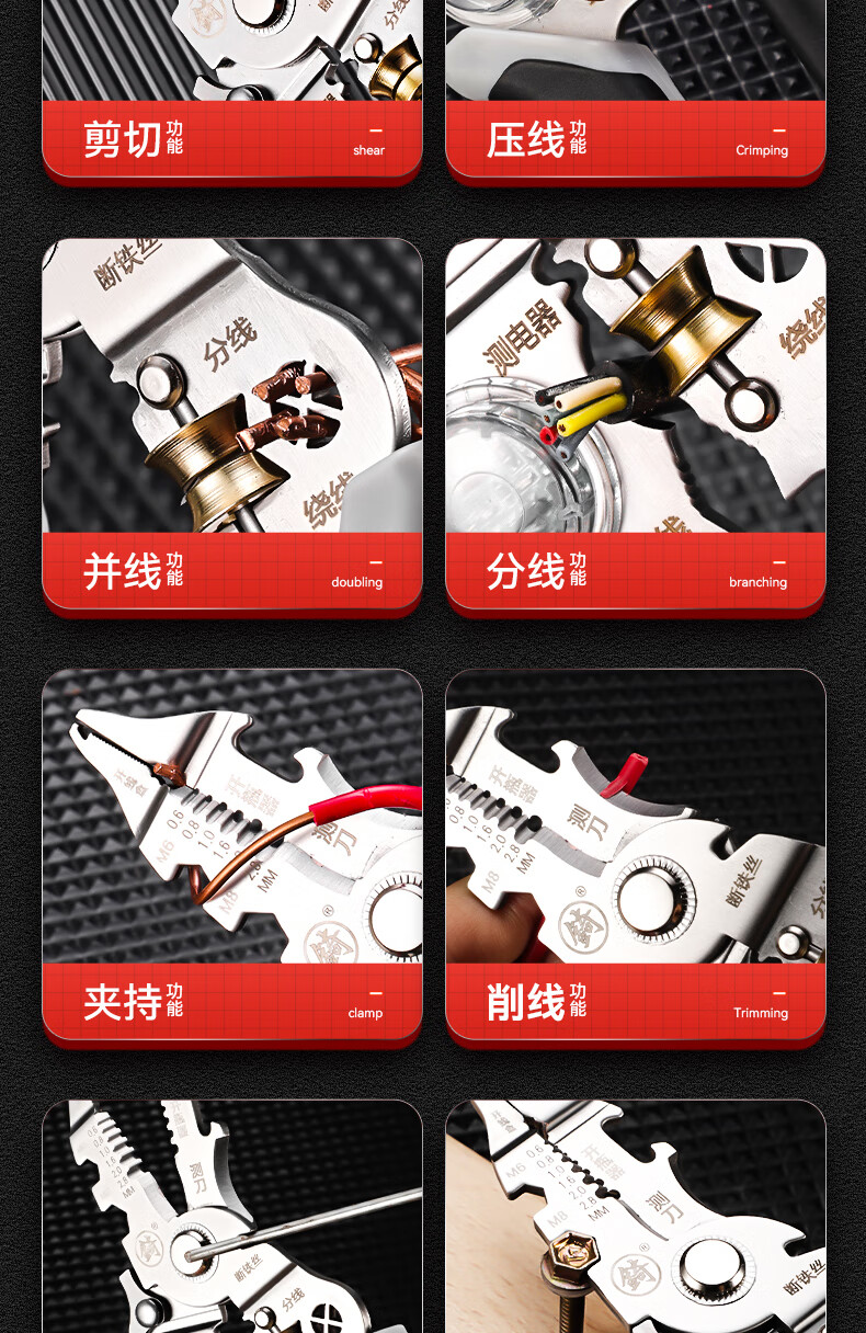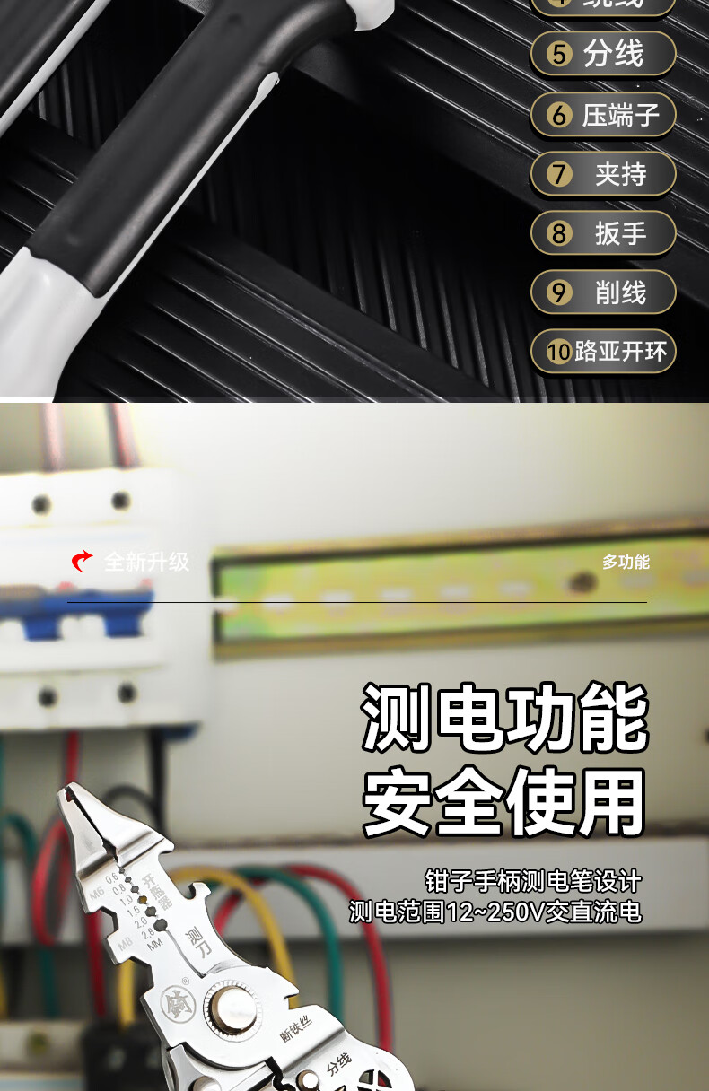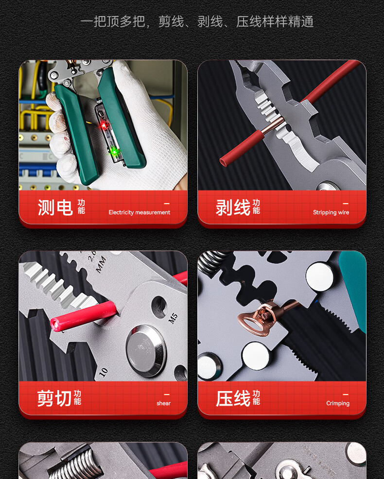 Niuxiang foldable wire stripper, new industrial-grade multi-functional wire stripper, screw-tightening pulley design with electric test, folding electric test wire stripper, forged head, extra thick
