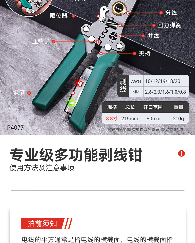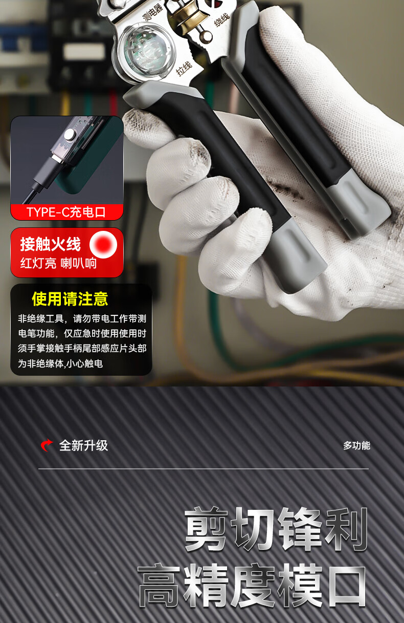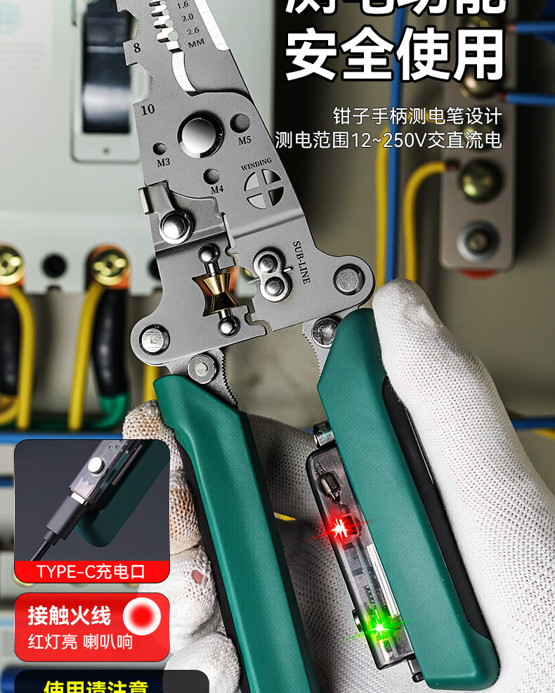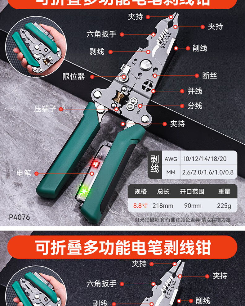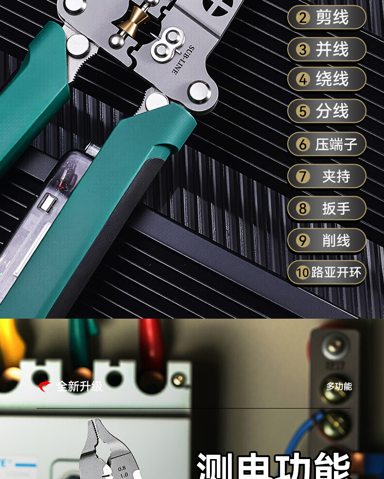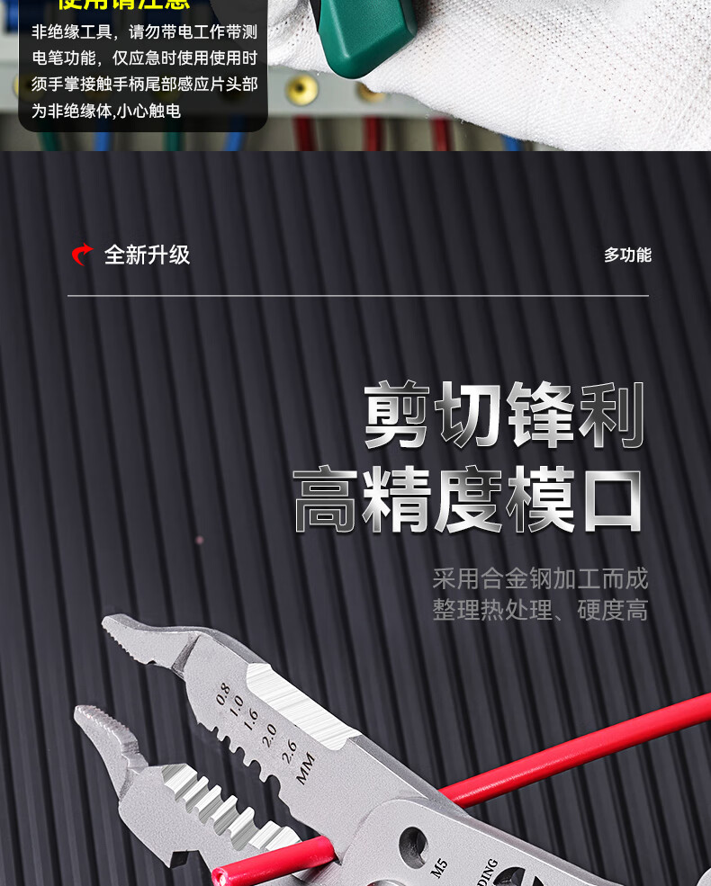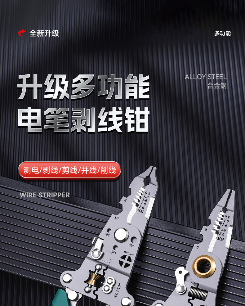 Niuxiang foldable wire stripper, new industrial-grade multi-functional wire stripper, screw-tightening pulley design with electric test, folding electric test wire stripper, forged head, extra thick