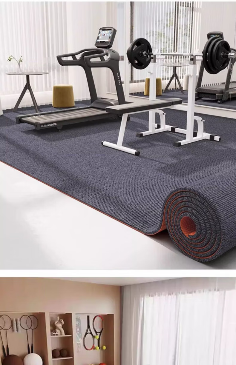 South Sandwich High-end Quality Treadmill Shock Absorbing Mat Gym Soundproofing Shock Absorbing Carpet Treadmill Commercial Bedroom Room Full Cover Gray TPE Single Stripe 6mm 160*200cm