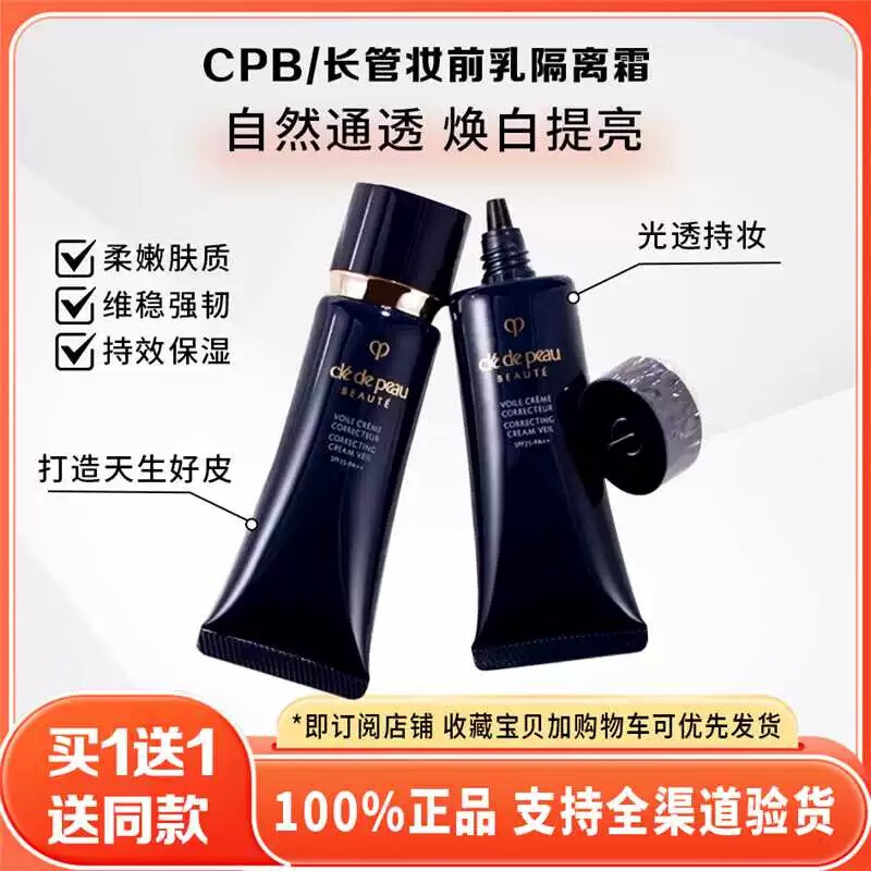 Long-tube isolation cream, concealer, sun protection and brightening, three-in-one small and medium size makeup primer, trial size, Japanese version 15ml, Japanese version 15ml (send one), free perfume + powder puff