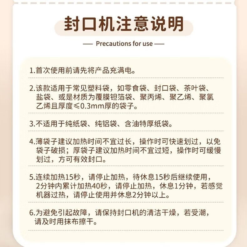 JIMANG sealing machine small household rechargeable sealer mini portable snack plastic bag heat sealing machine artifact to keep fresh, one pack, sealing and opening dual-purpose 1m