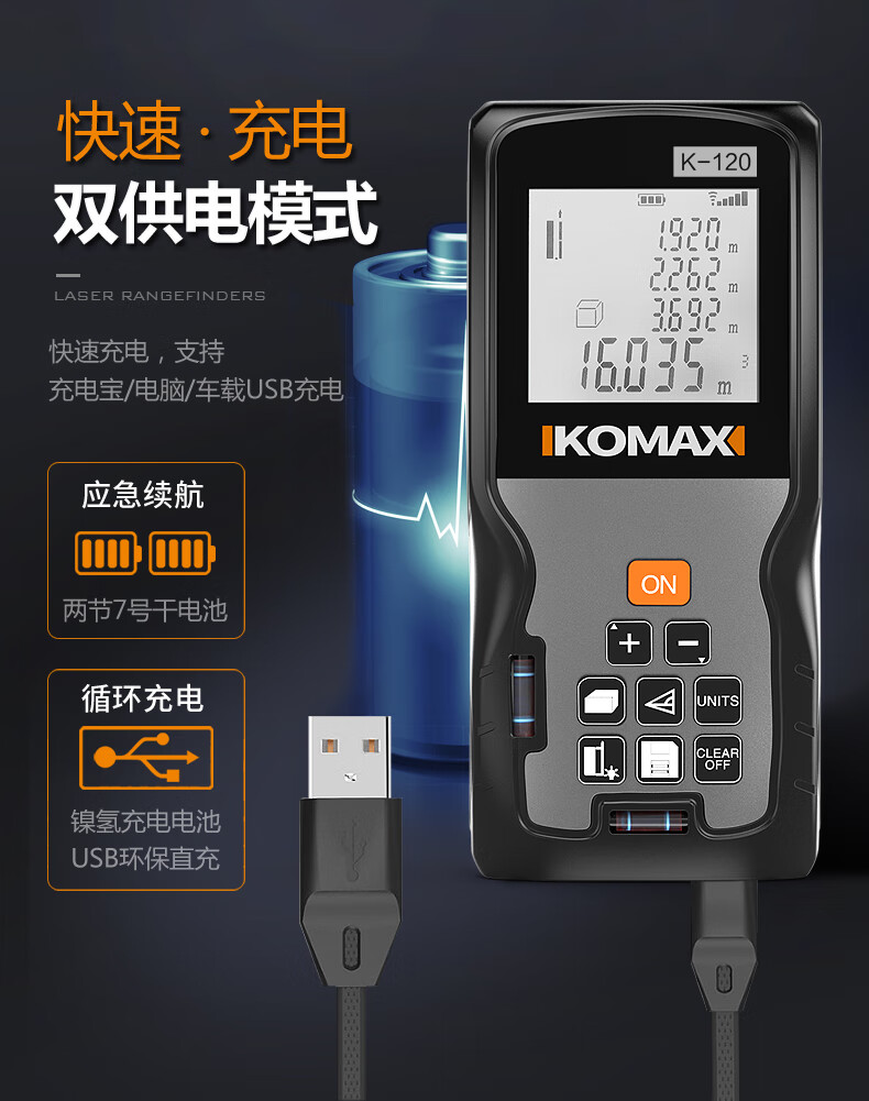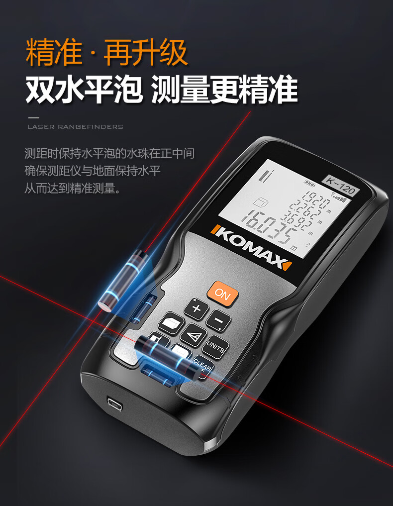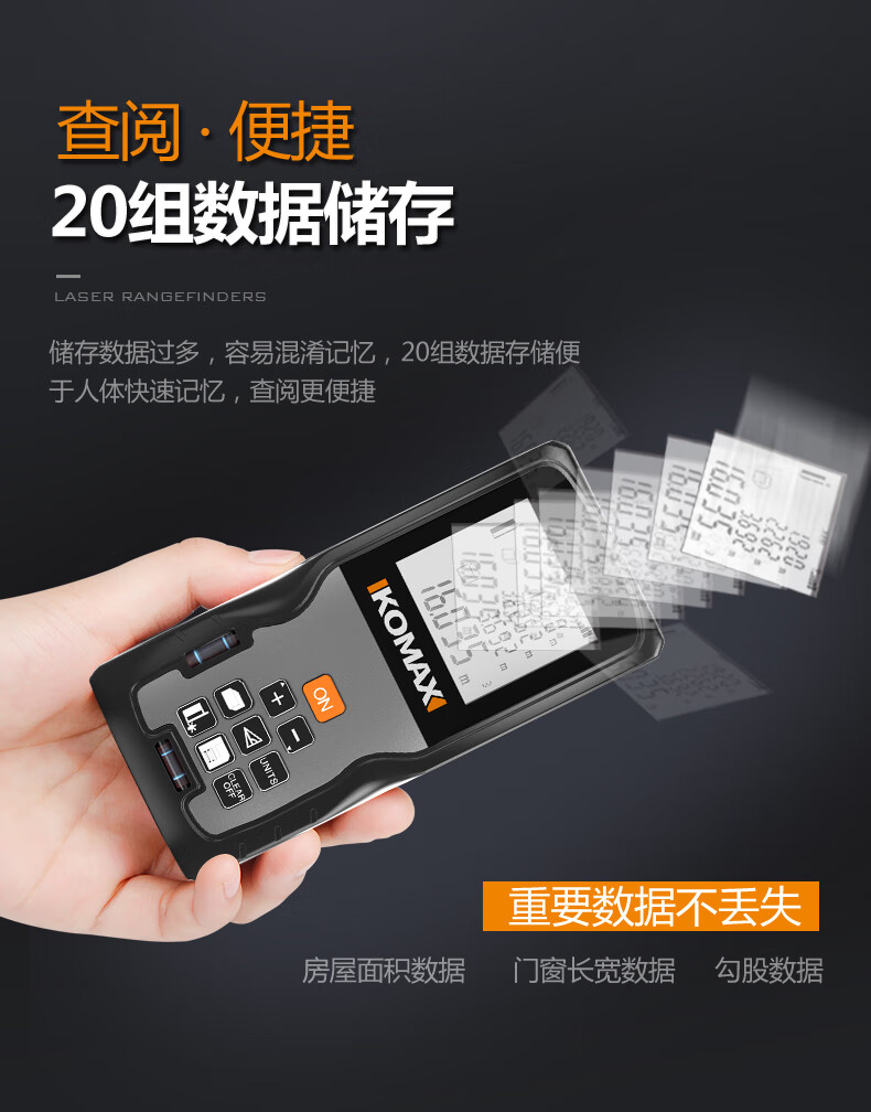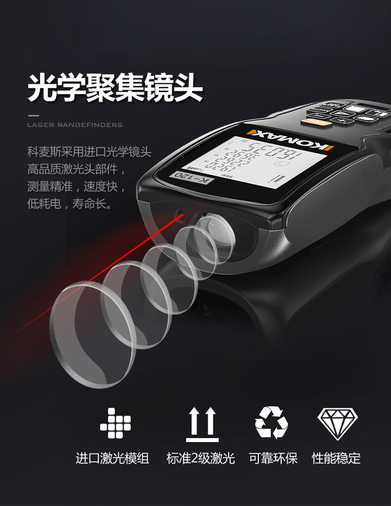 Komax laser range finder measuring ruler high-precision handheld distance measuring instrument electronic ruler measuring room instrument laser ruler precision model 50 meters++ product