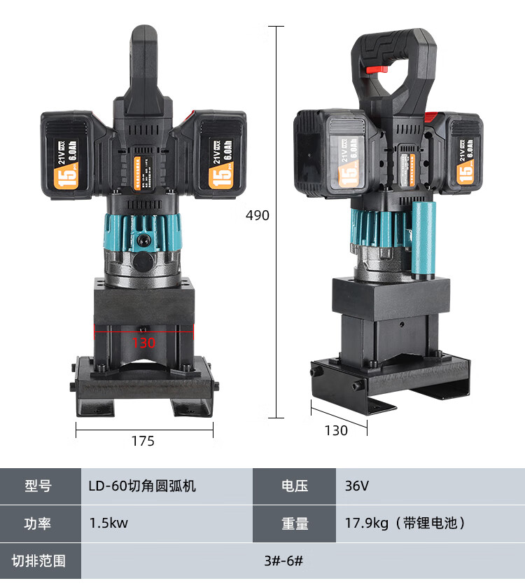 Taiyi rechargeable angle iron chamfering/cutting/cutting arc cutting and rowing lithium battery small portable angle iron cutting and beveling triangle dual lithium battery charging LD-60 (cutting and rowing machine)