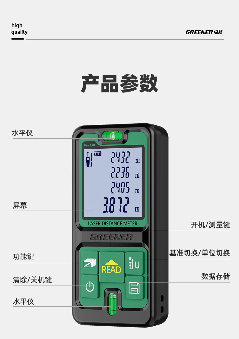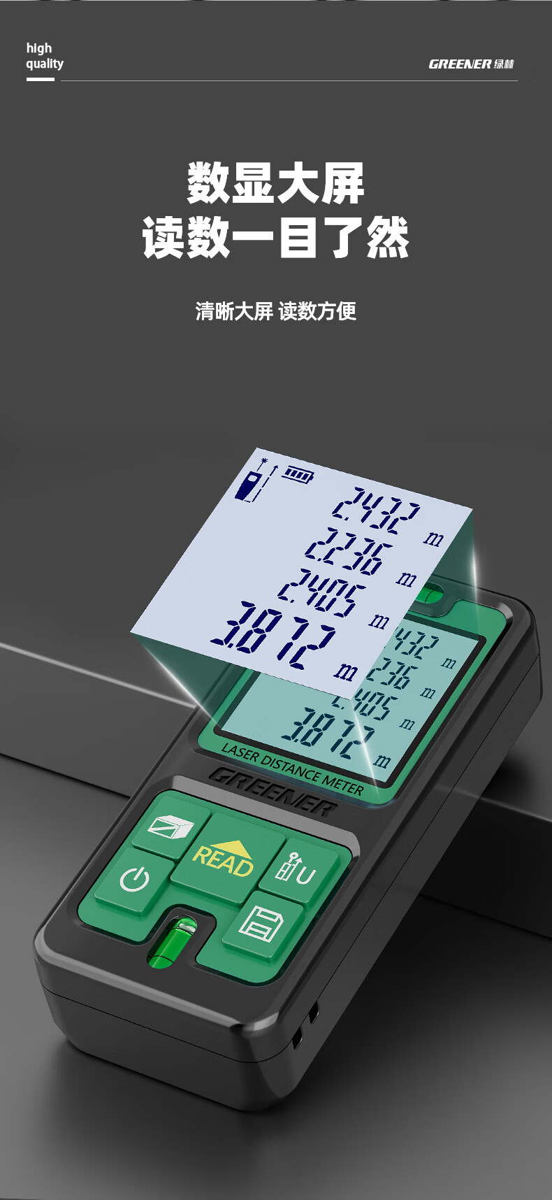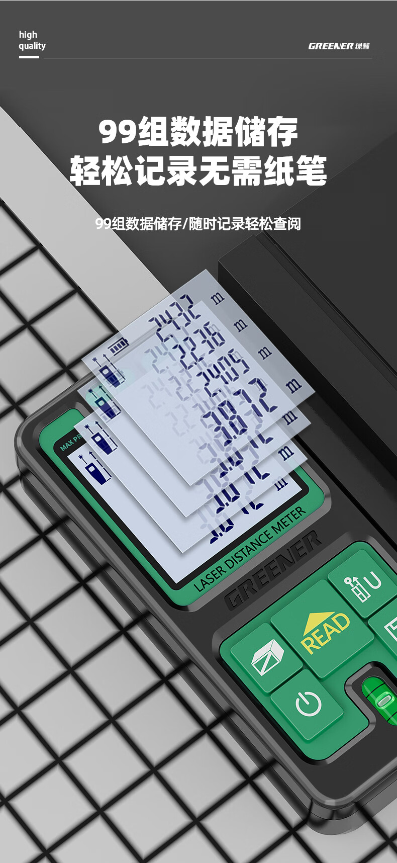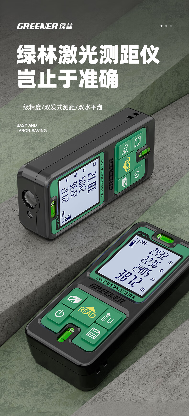 GREENER Laser Distance Meter High-Precision Handheld Laser Ruler Electronic Measurement Ruler Distance Instrument Room Measurer 60 Meter Precision Model _Double Universal Leveling Bubble (Free
