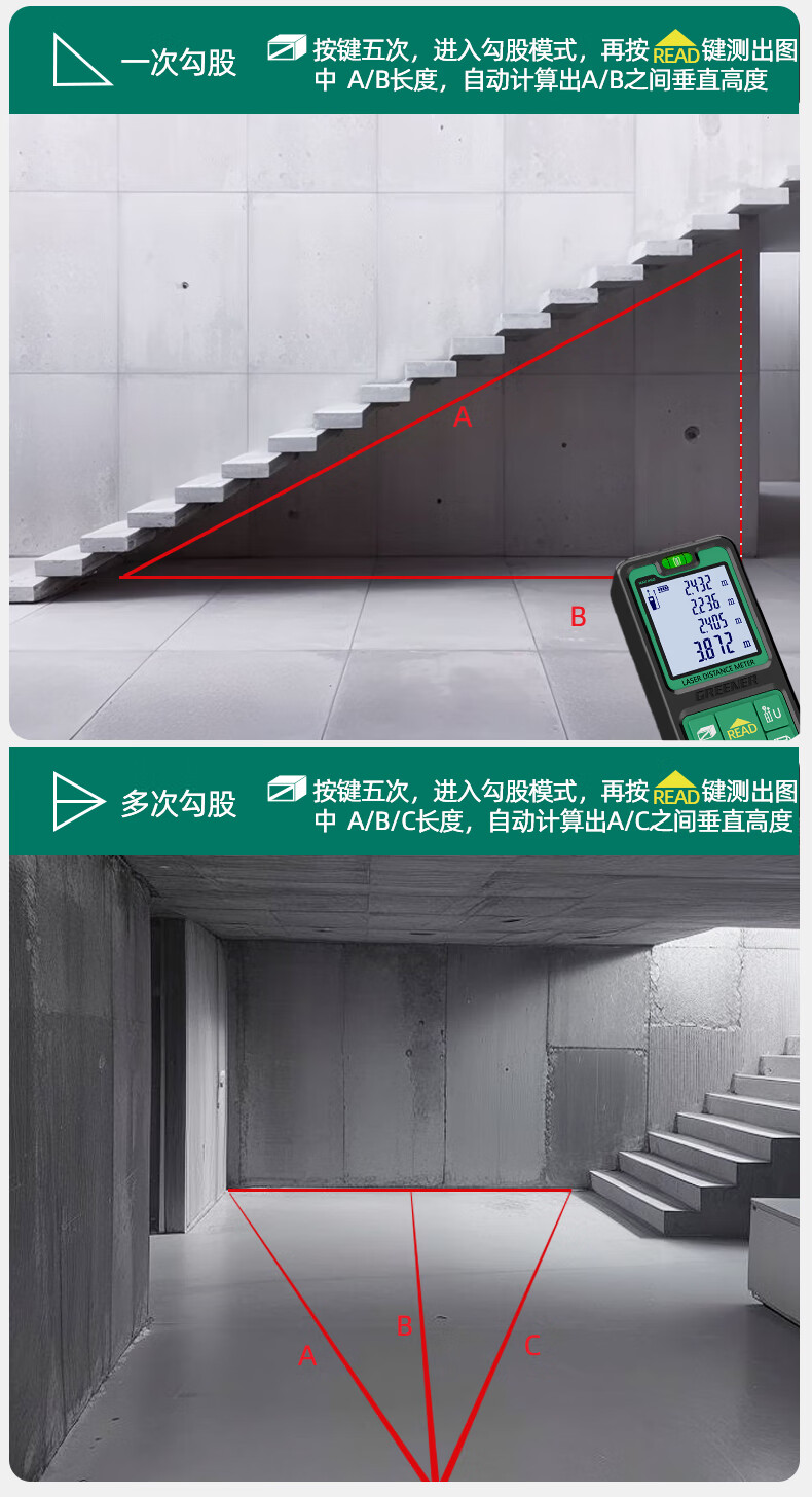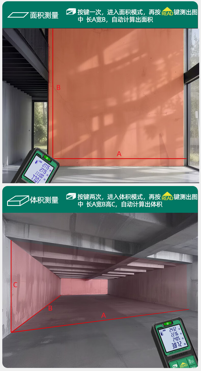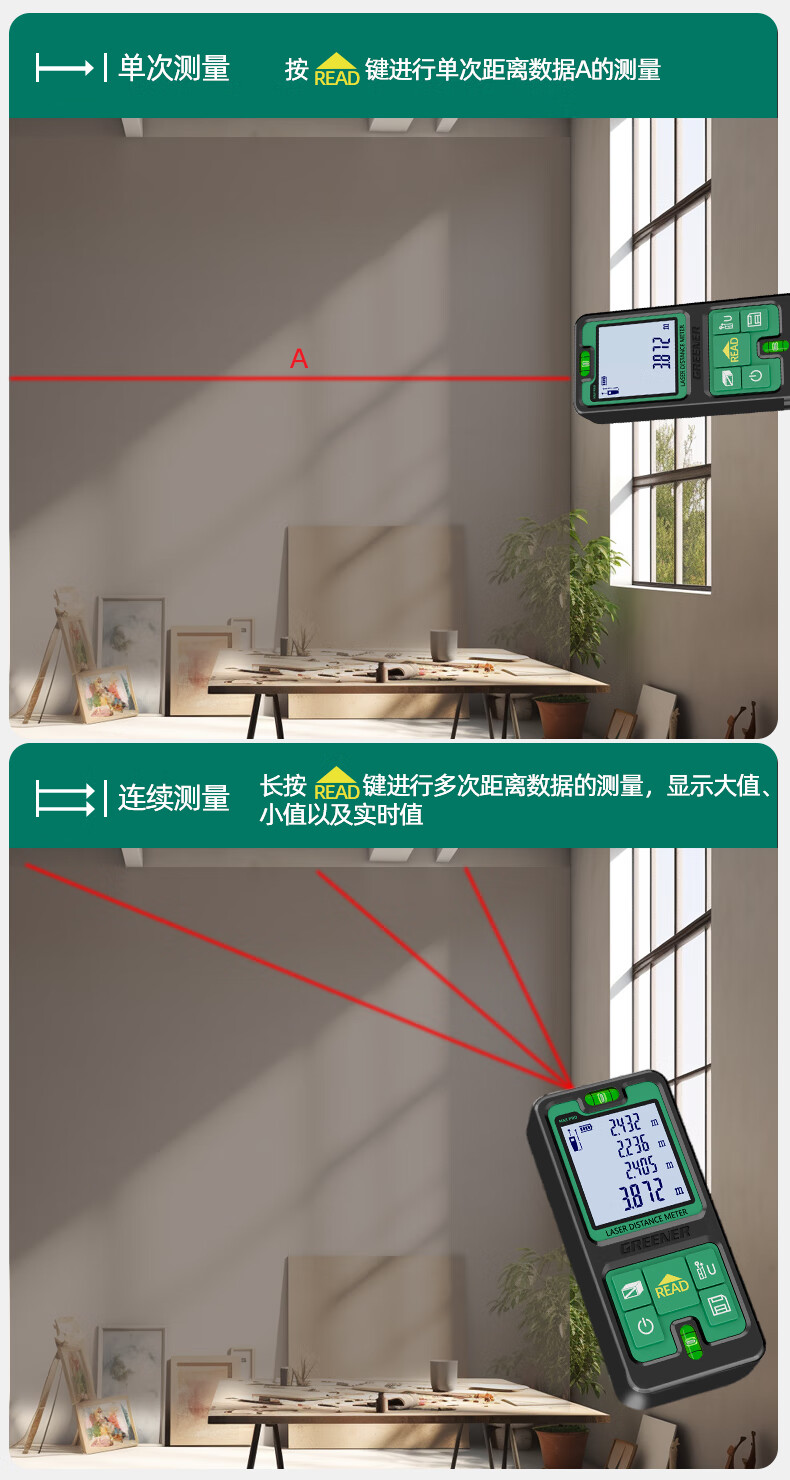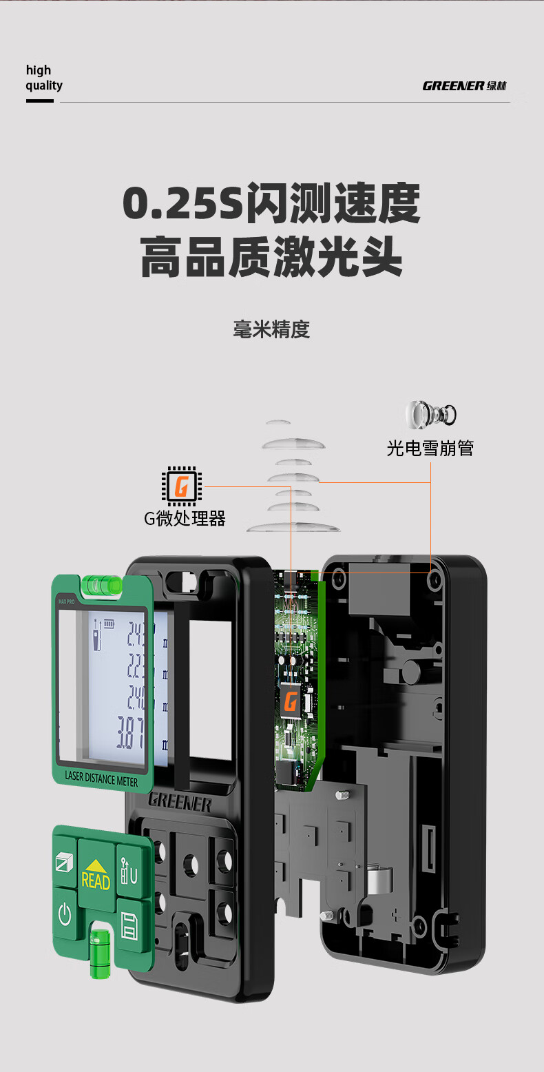 GREENER Laser Distance Meter High-Precision Handheld Laser Ruler Electronic Measurement Ruler Distance Instrument Room Measurer 60 Meter Precision Model _Double Universal Leveling Bubble (Free