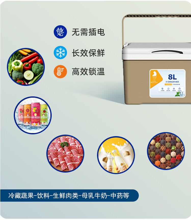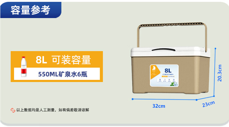 Oubaosen 8 liter warm sand color thickened car insulated picnic refrigerated fresh-keeping camping ice bucket 8 liter warm sand color (free 1 ice brick + 5 ice bags) 1