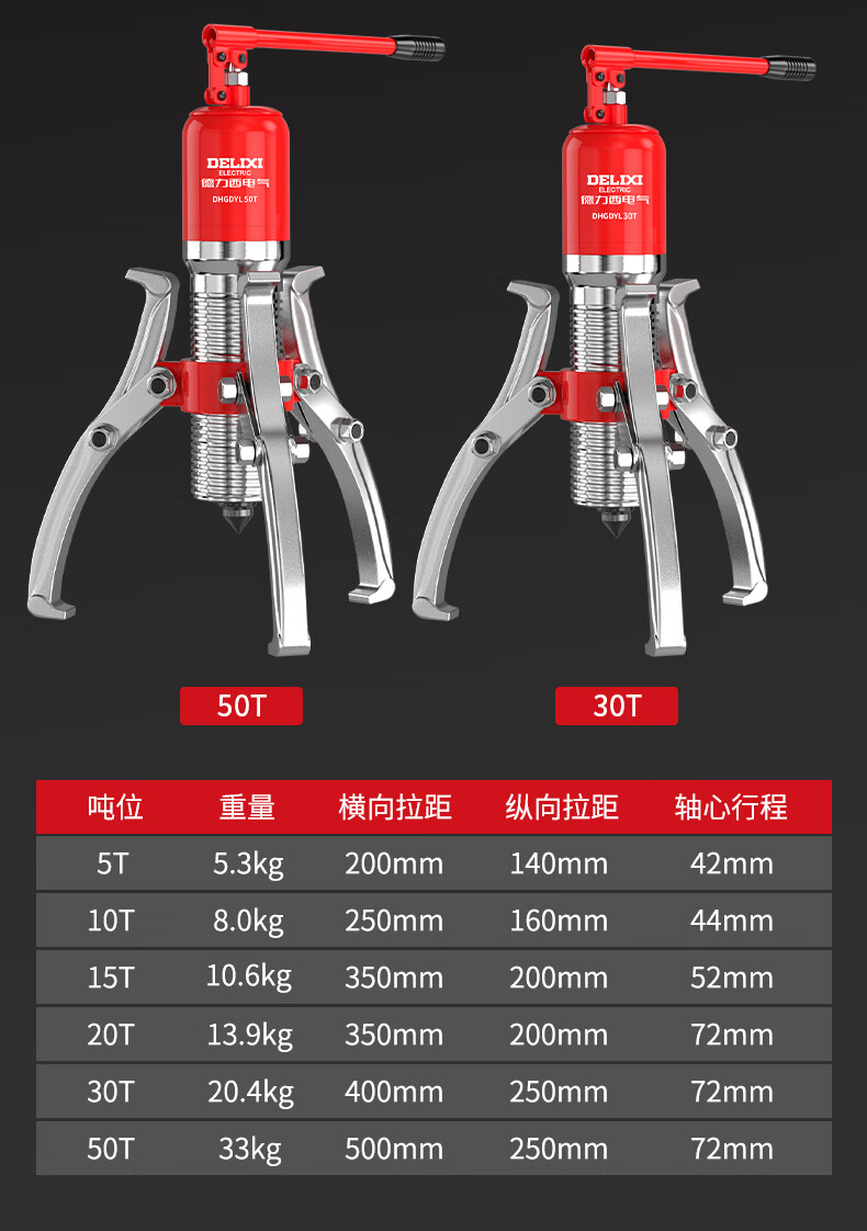 Delixi Electric Hydraulic Three-claw Puller Bearing Removal Tool Horizontal and Vertical Puller Industrial Grade Hydraulic Puller Upgraded and Enhanced Model-5 Ton Industrial Grade Integrated Hydraulic