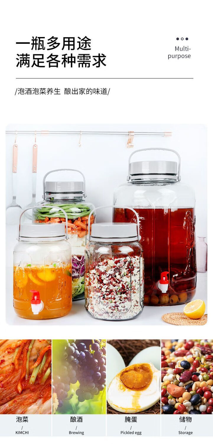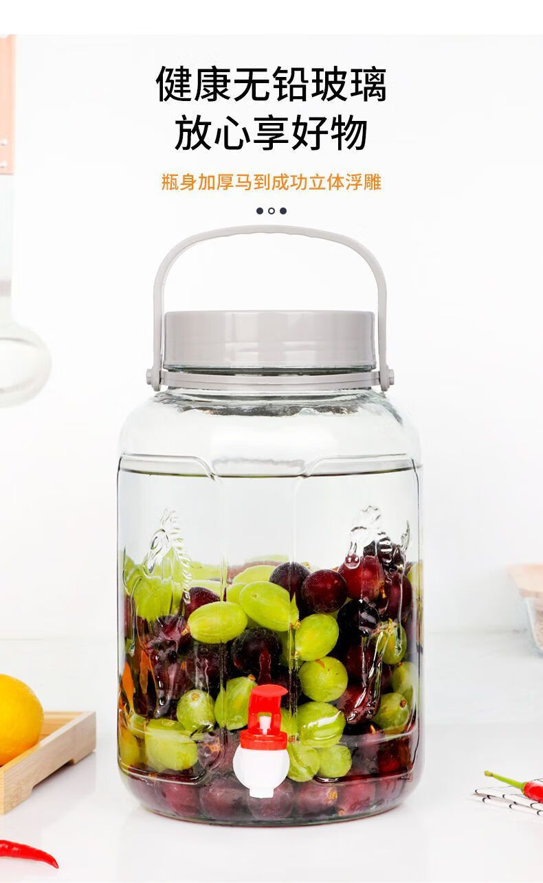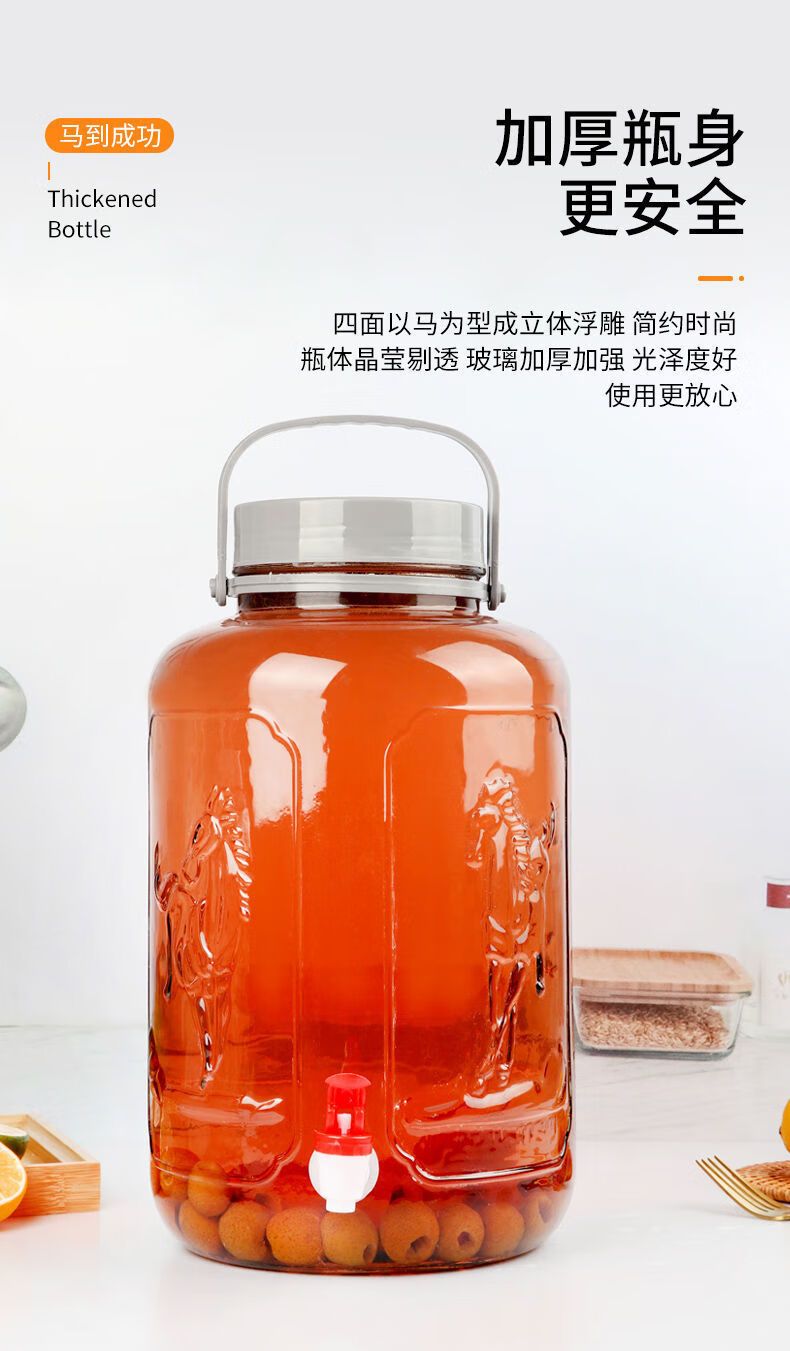 Meikejie bubble wine glass bottle thickened sealed jar with sealing lid household special pickle plum wine bottle pickle jar water capacity (6 catties) no faucet 3L plum, orchid, bamboo and chrysanthemum style
