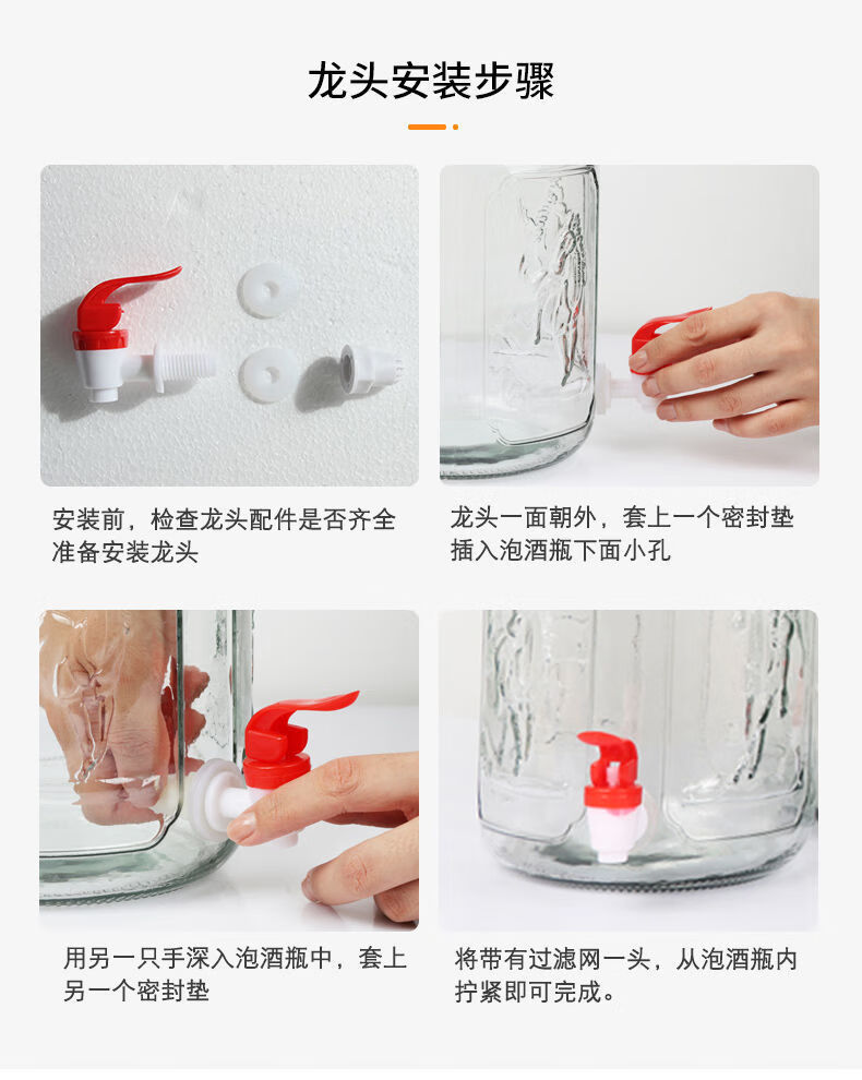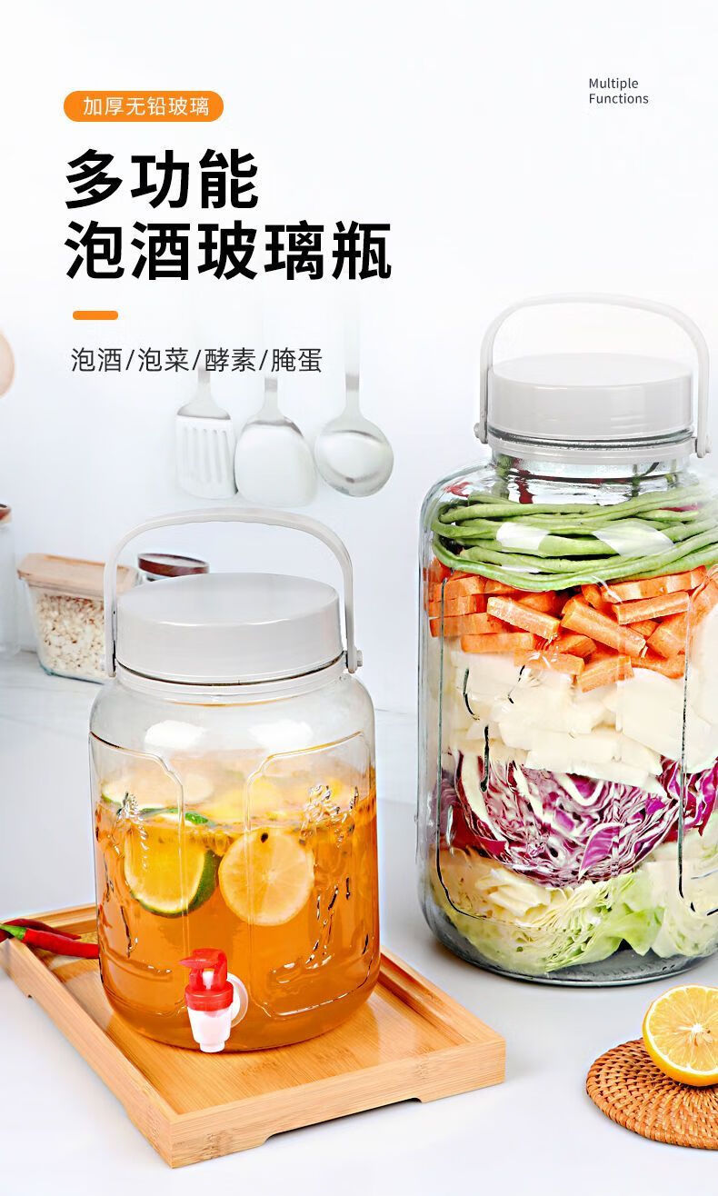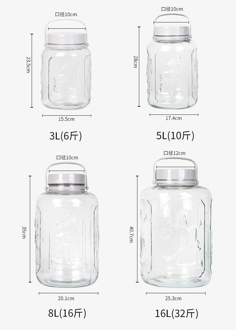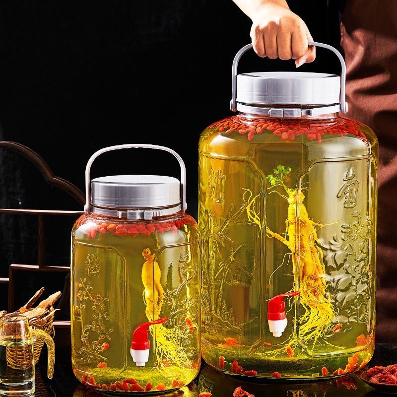 Meikejie bubble wine glass bottle thickened sealed jar with sealing lid household special pickle plum wine bottle pickle jar water capacity (6 catties) no faucet 3L plum, orchid, bamboo and chrysanthemum style