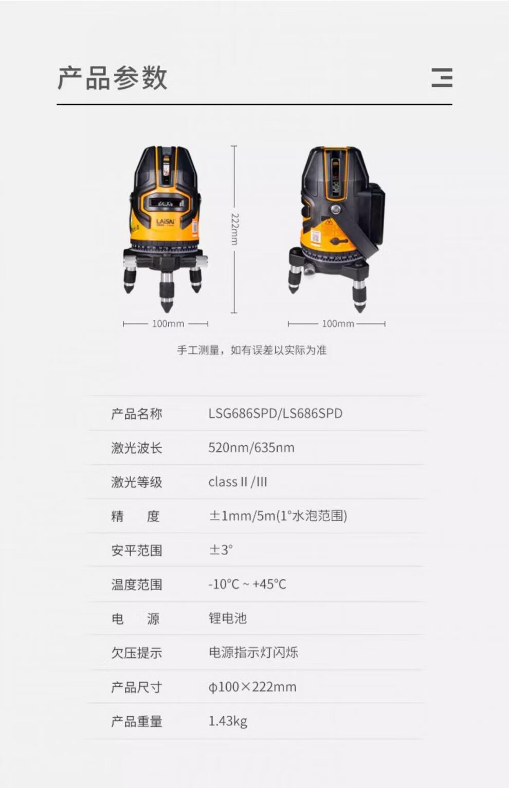 Laser laser level 5-line green light LSG686SPD outdoor high-precision strong light laser bidding line meter classic 5-line-LSG686SPD standard version