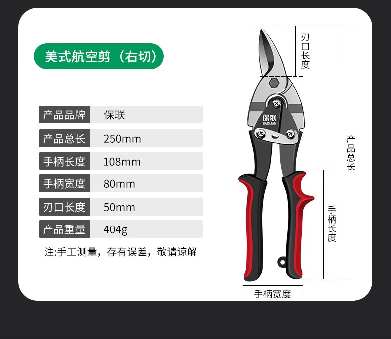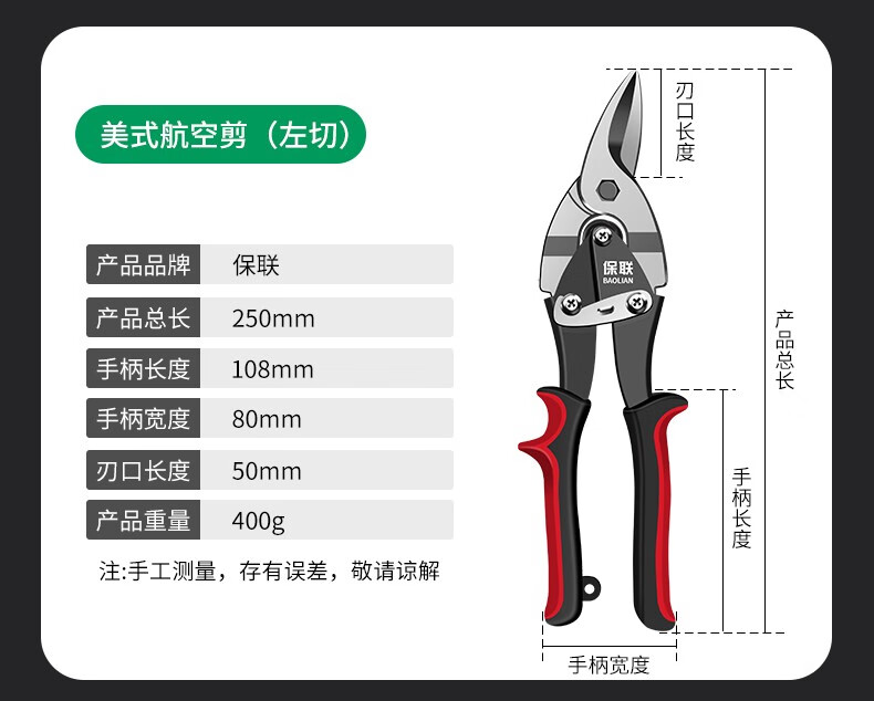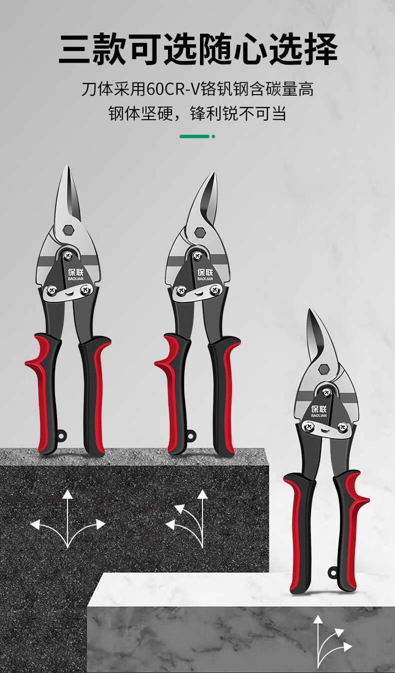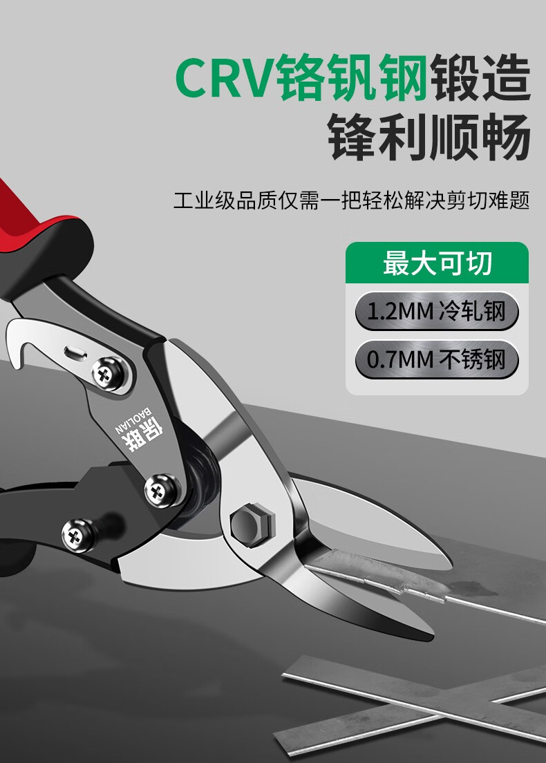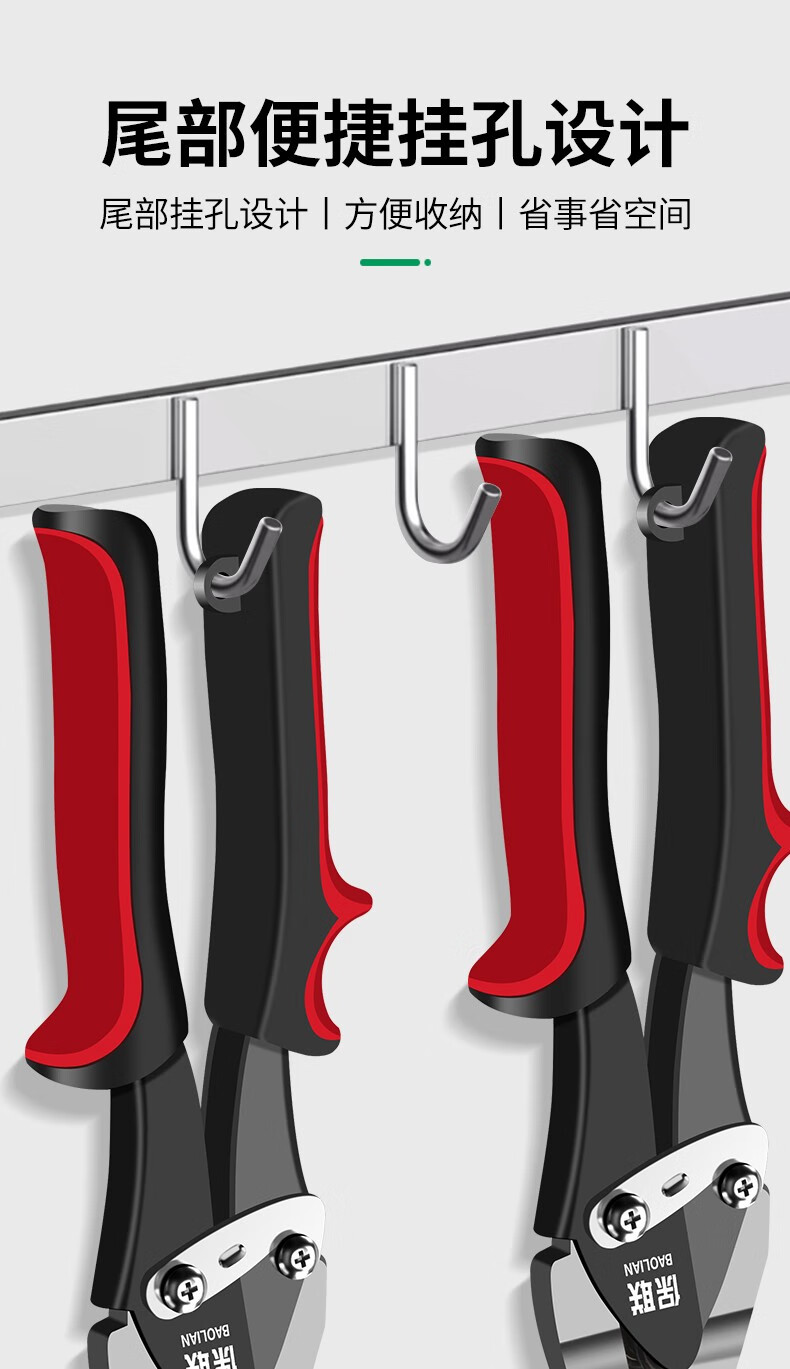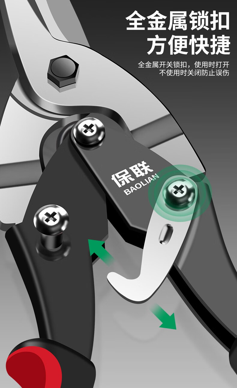 Baolian iron sheet scissors keel scissors aviation scissors industrial-grade aluminum buckle plate special scissors integrated ceiling special tools 10 inches universal straight head aviation scissors (+ gloves