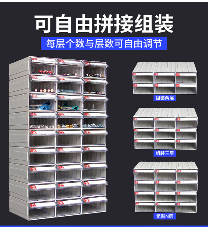 Initial concept of material box, thickened partitioned parts box, plastic drawer-type partitioned turnover box, storage box, hardware tool box, S# component box, brown, 60 pcs per box