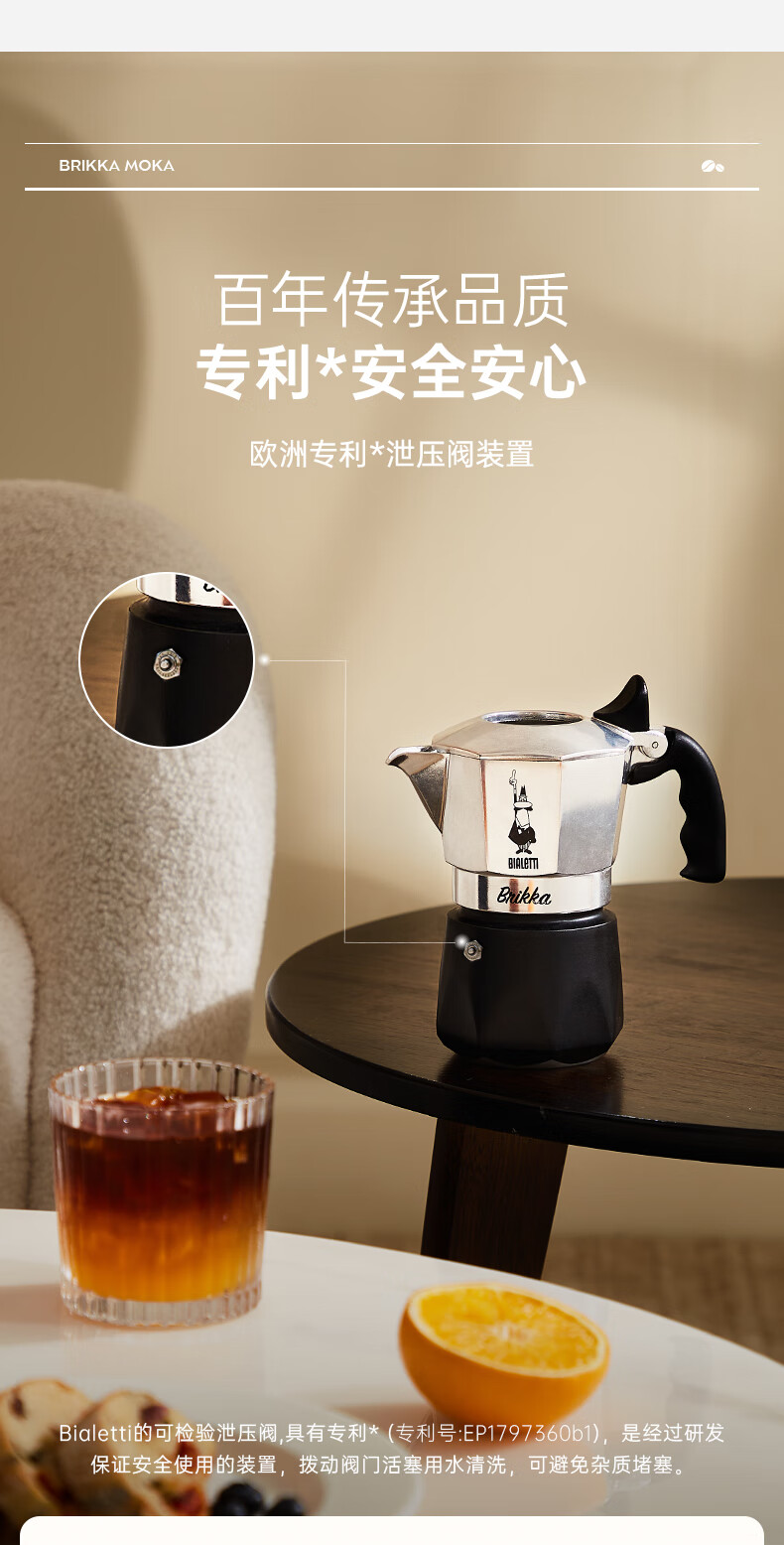 Bialetti Official Flag Bialetti Double Valve Moka Pot Italian Coffee Pot Coffee Maker Camping Double Valve 2 Cups Diamond Bottom 100ml