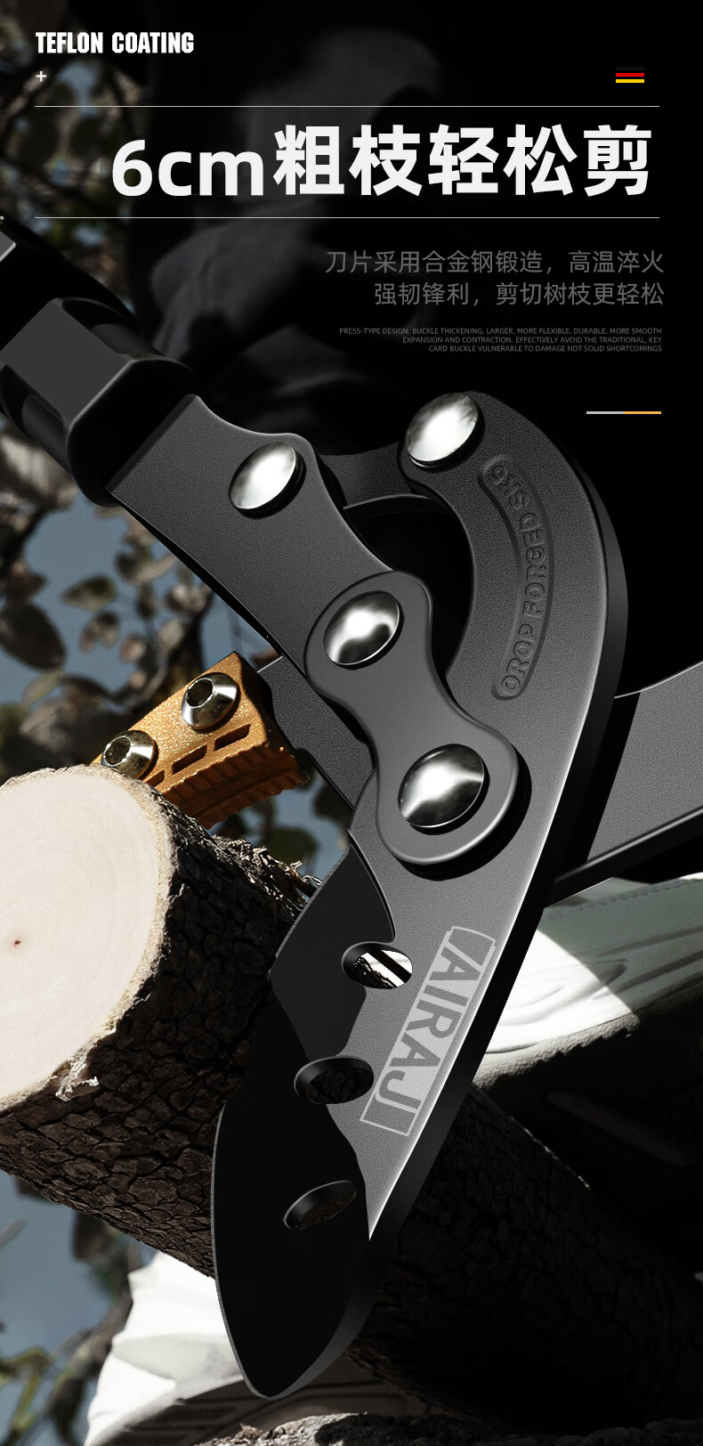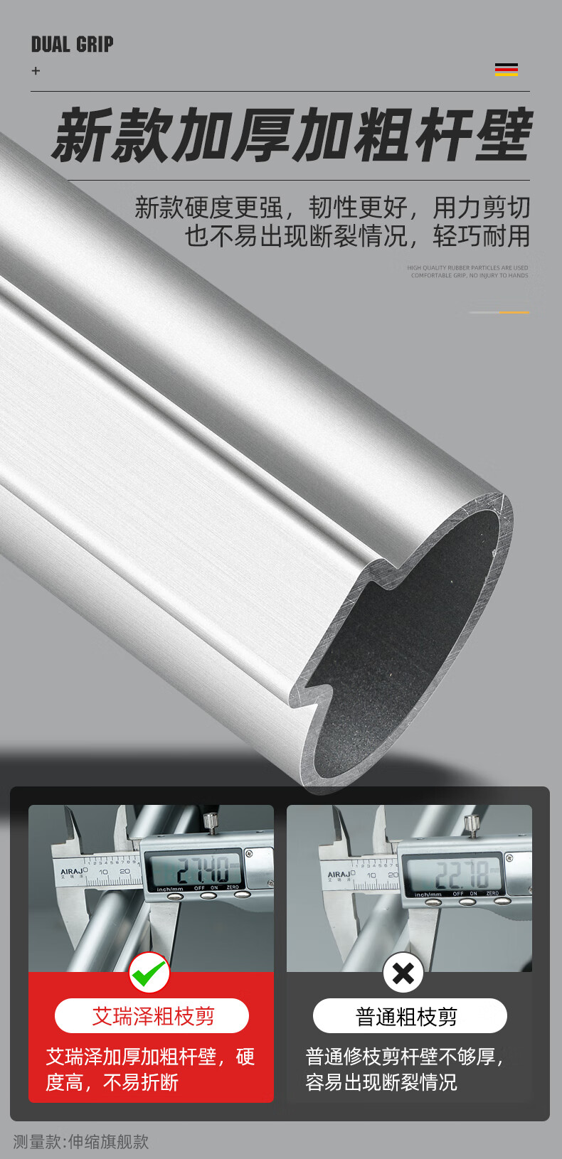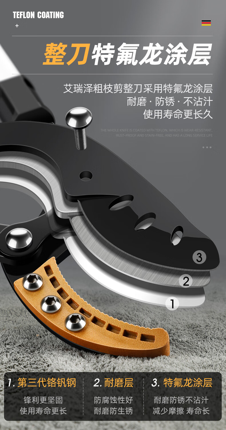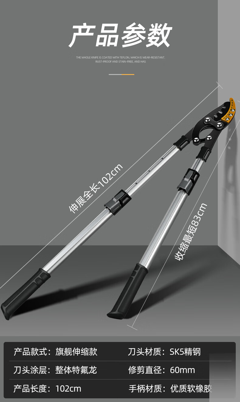 Arrizo branch scissors, pruning shears, garden powerful and powerful shears, thick branch shears, gardening fruit tree telescopic scissors, triangular steel pipe powerful shears (cut 65mm)
