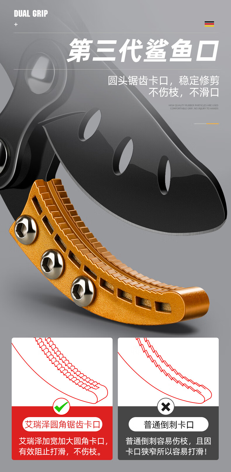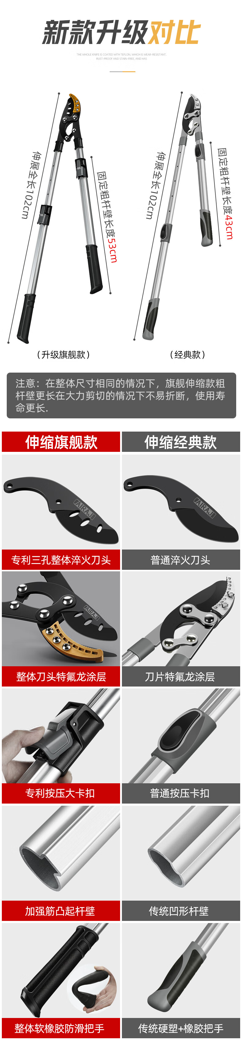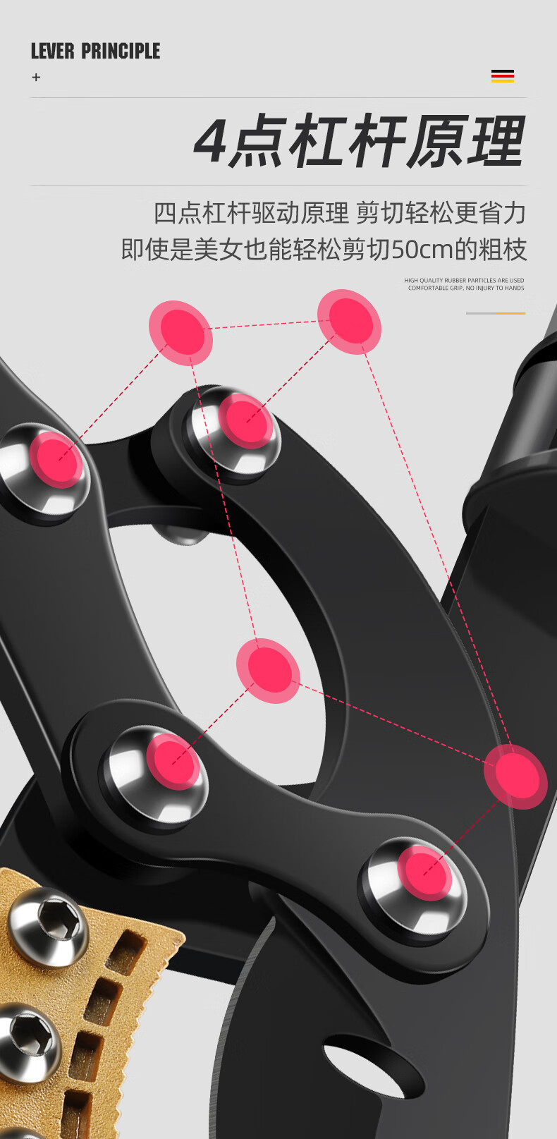Arrizo branch scissors, pruning shears, garden powerful and powerful shears, thick branch shears, gardening fruit tree telescopic scissors, triangular steel pipe powerful shears (cut 65mm)