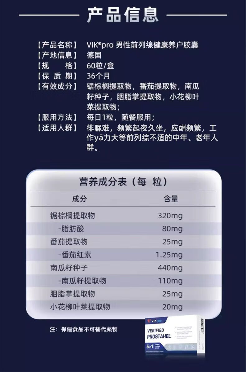 VIKpro German imported saw palmetto lycopene extract soft capsule men's male health nutrition 60 capsules saw palmetto 60 capsules