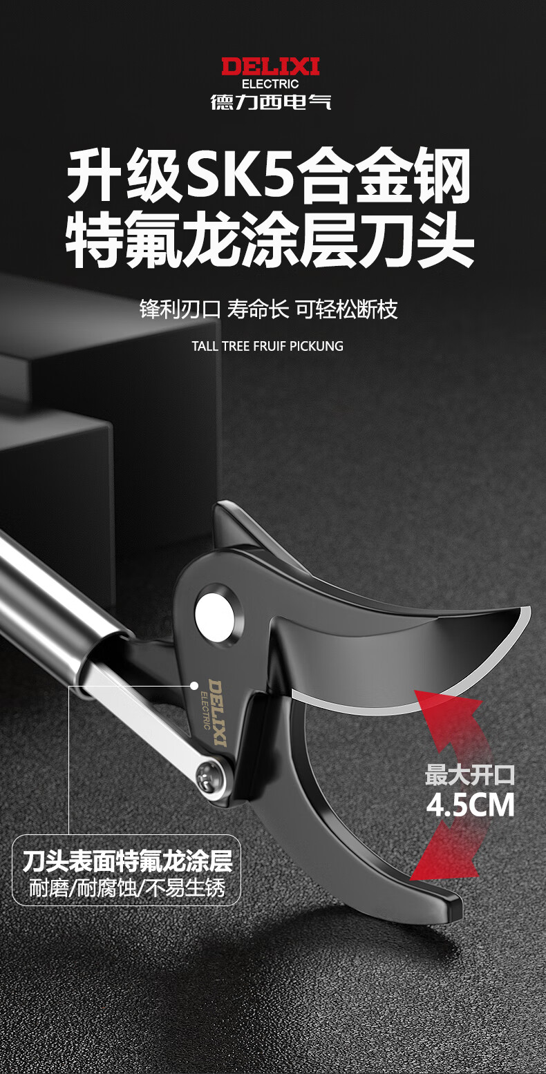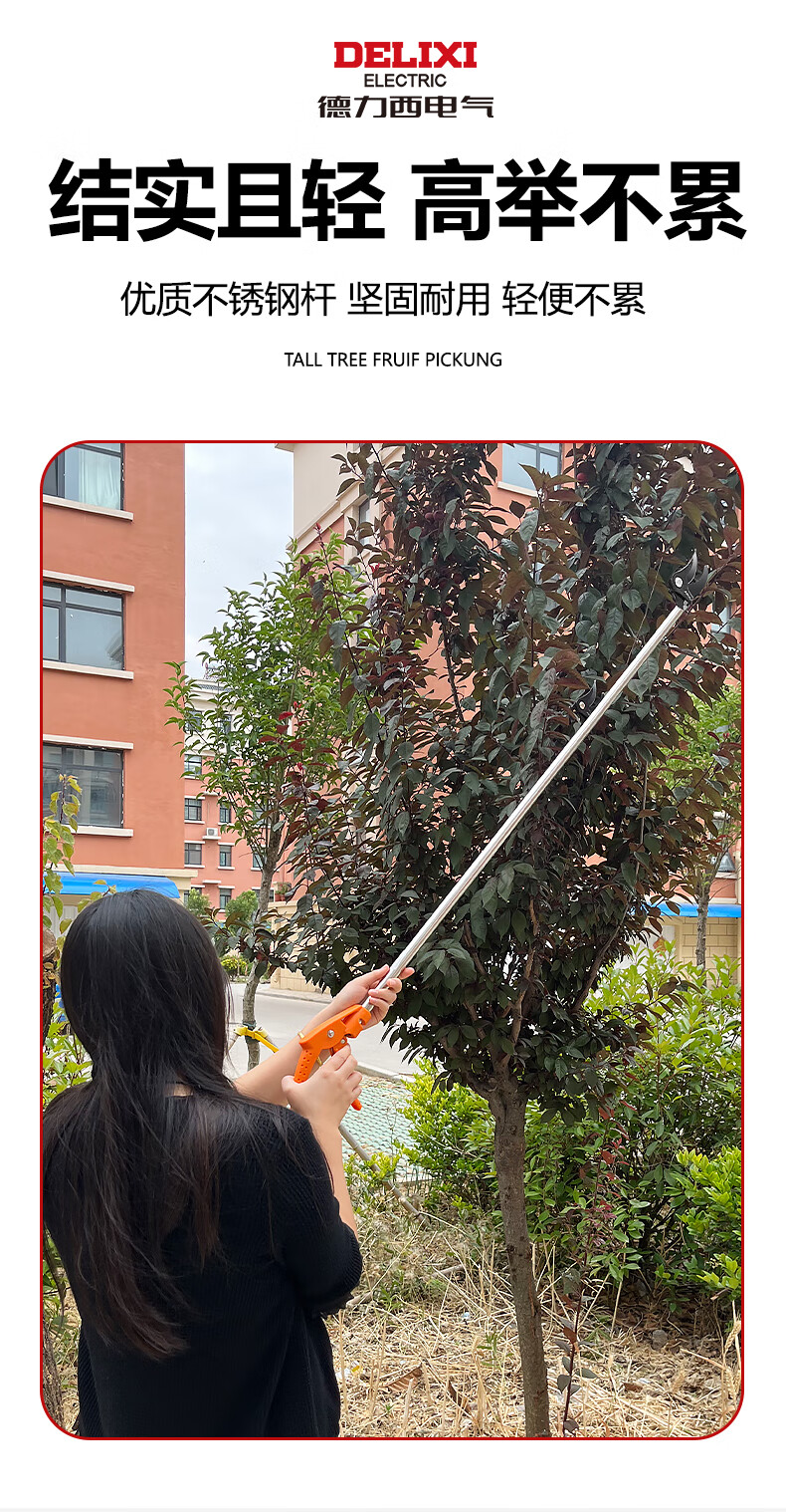 Delixi Electric high-altitude pruning shears telescopic pole pruning high-branch fruit trees pruning branches special scissors 1 meter upgraded stainless steel reinforced rod