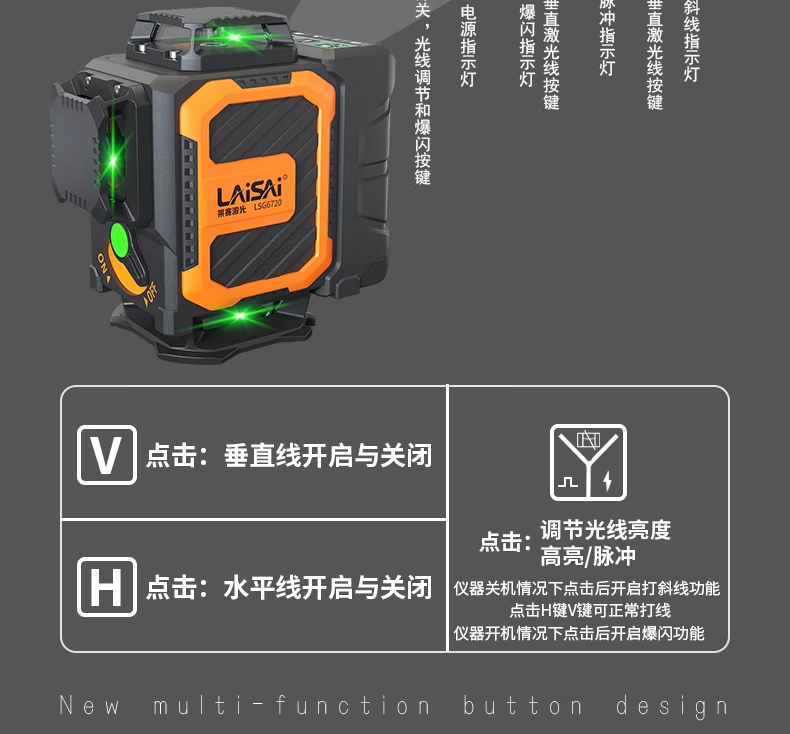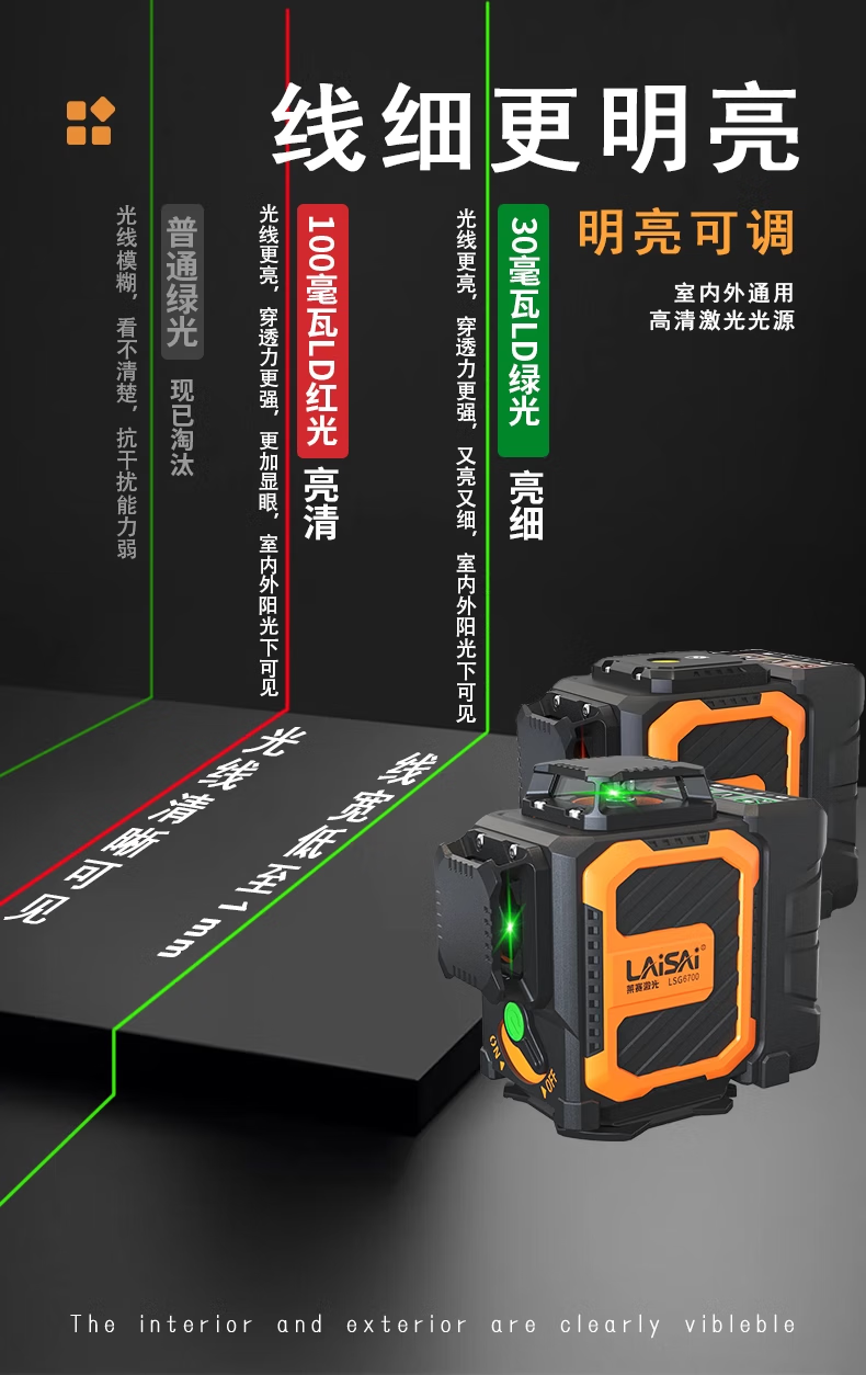 Shantou Lincun's new Laisai laser level 12-line 6710/6700 high-precision strong light thin line 16-line 6720 floor-mounted instrument green light 12-line upper level line