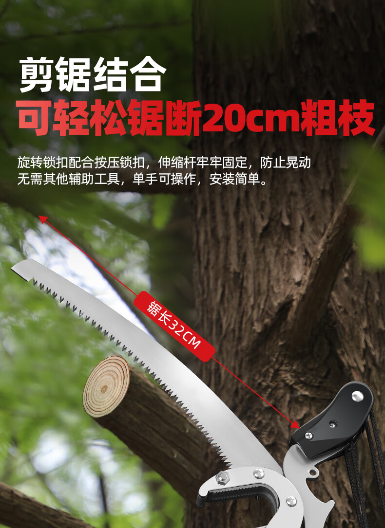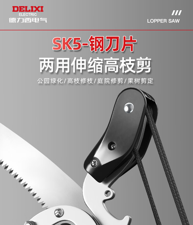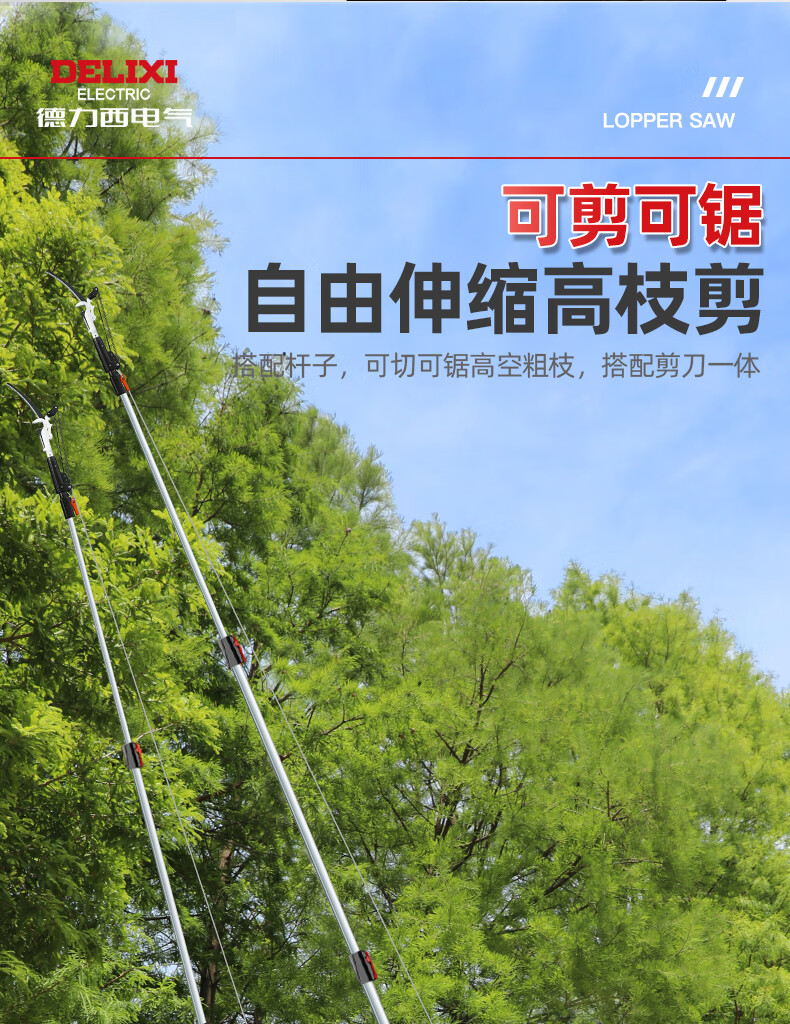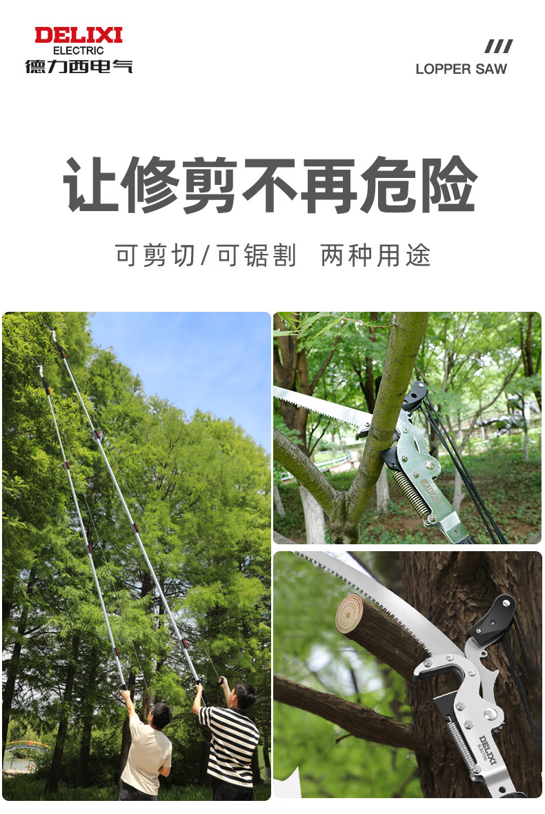 Delixi Electric high-branch shears telescopic high-altitude pruning shears and tree sawing artifact special scissors for pruning branches telescopic pole Tyrannosaurus Rex 3 meters upgraded aviation aluminum pole? More A