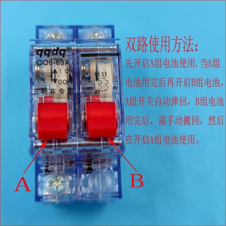 Electric vehicle open two in one out electric tricycle 63a air switch circuit breaker battery main gate dual battery switch 2p high power 63a2p dual battery switch