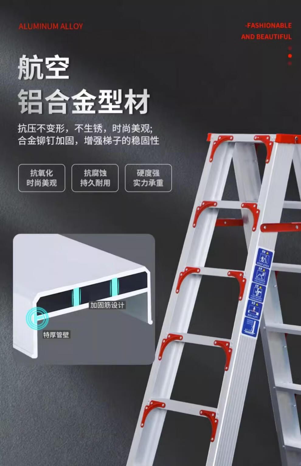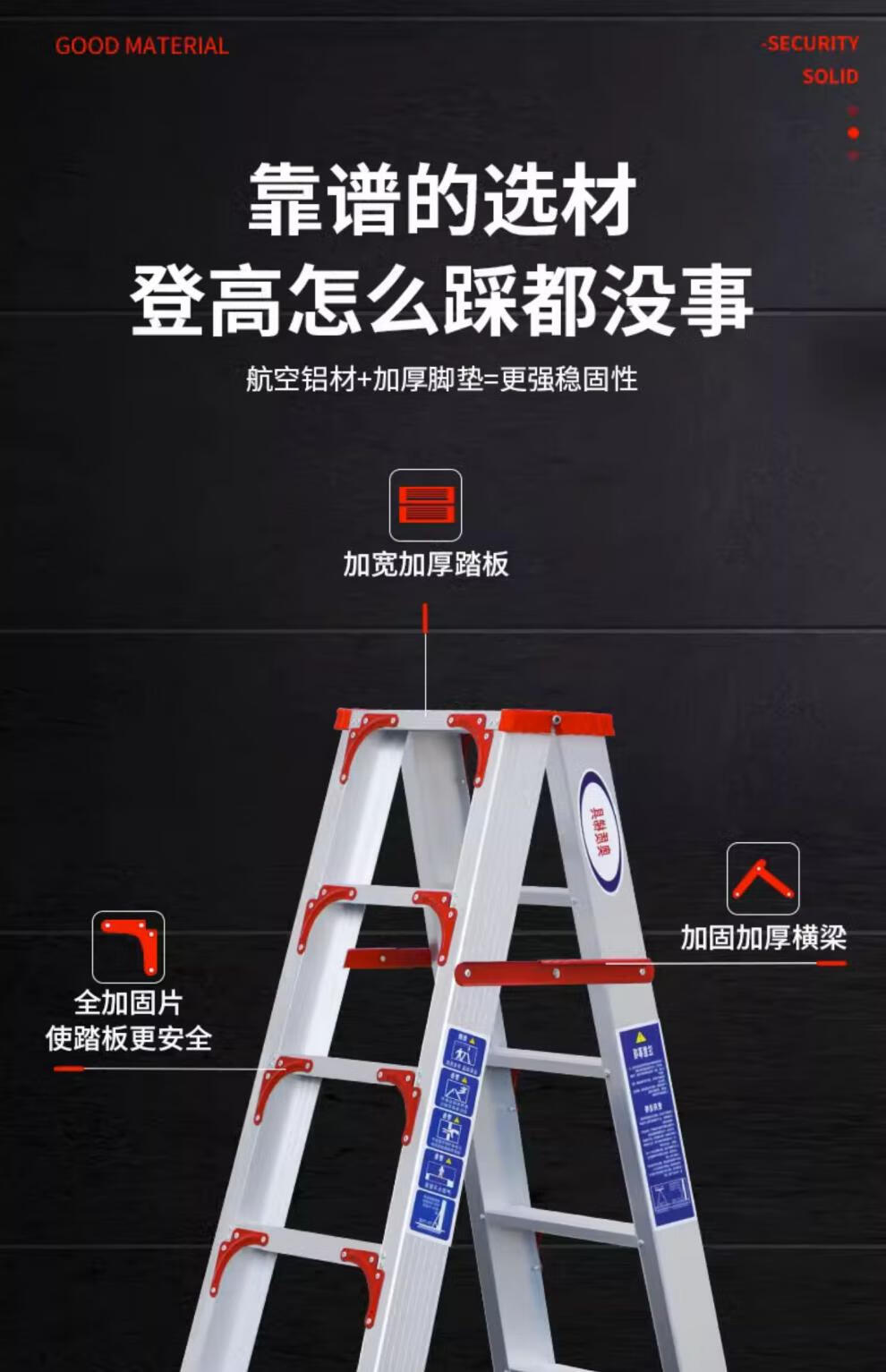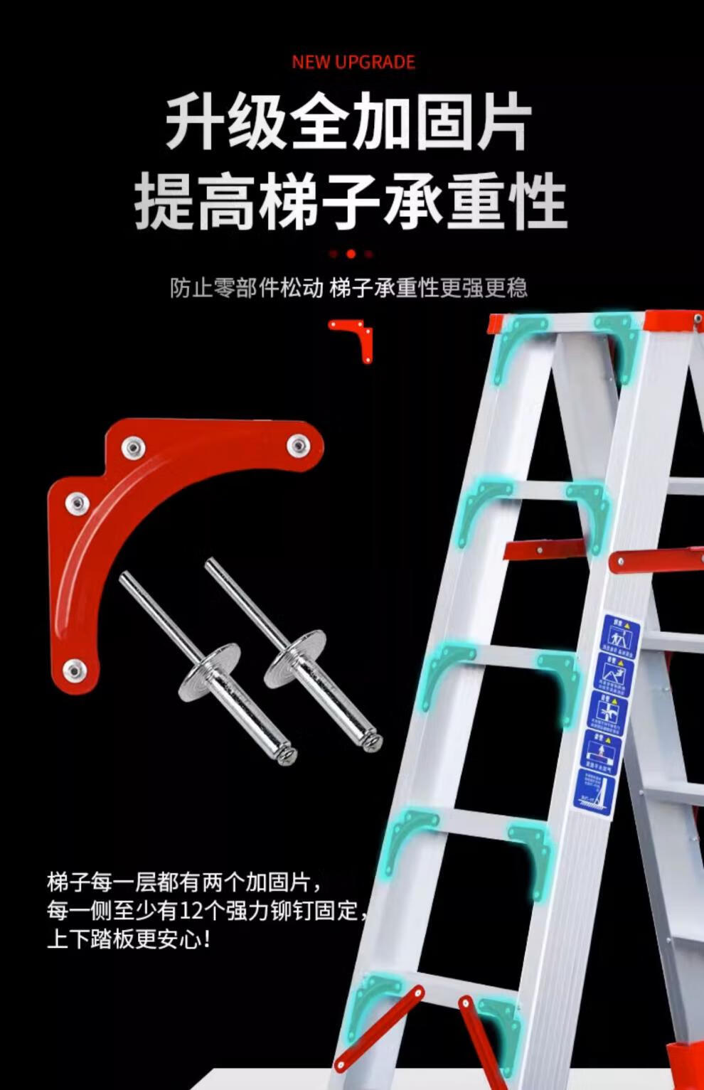 Ladder with step reinforcement and thickening aluminum alloy herringbone ladder folding household climbing stairs telescopic engineering loft 2.0 meters fully reinforced + leg reinforcement