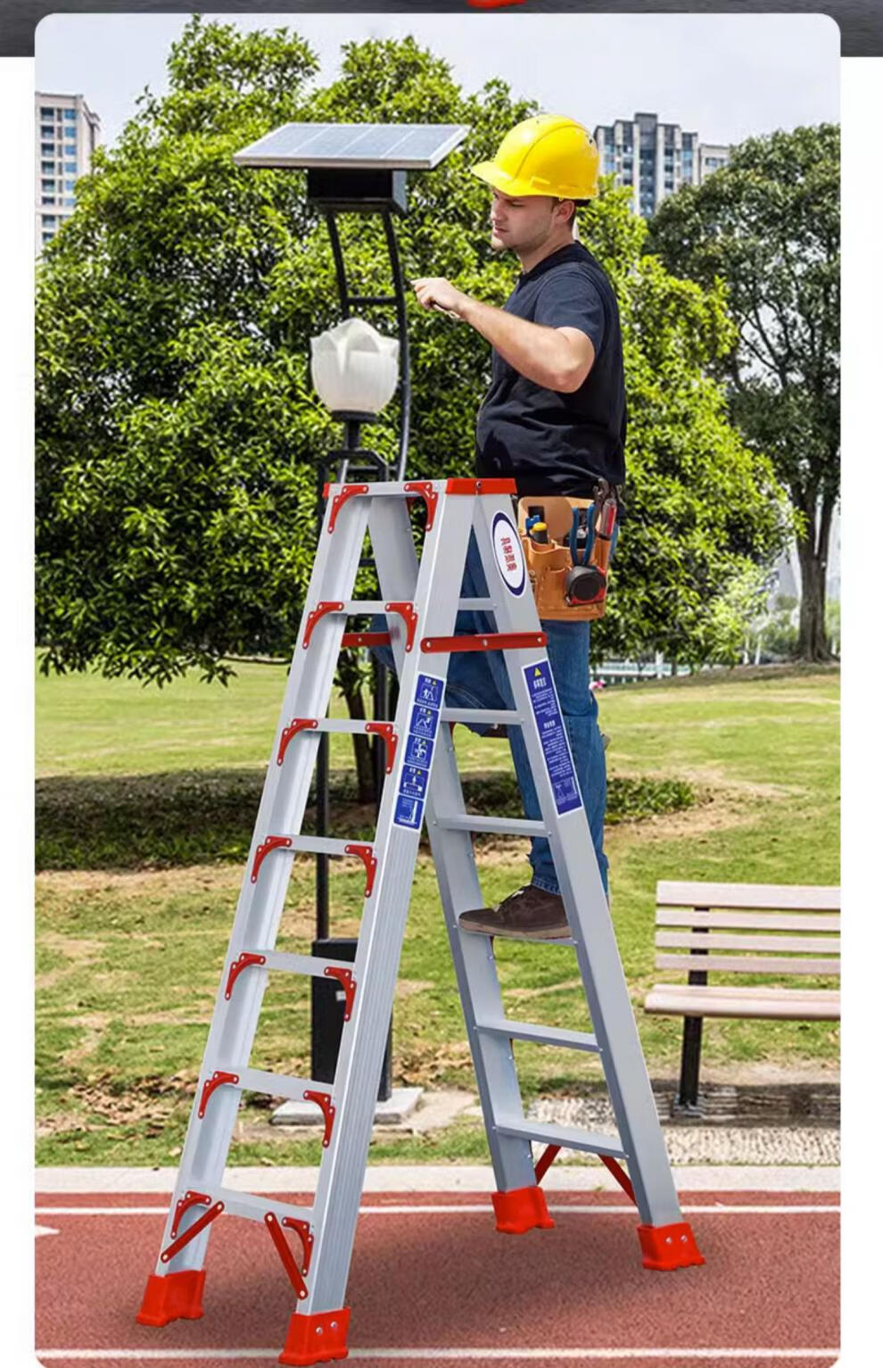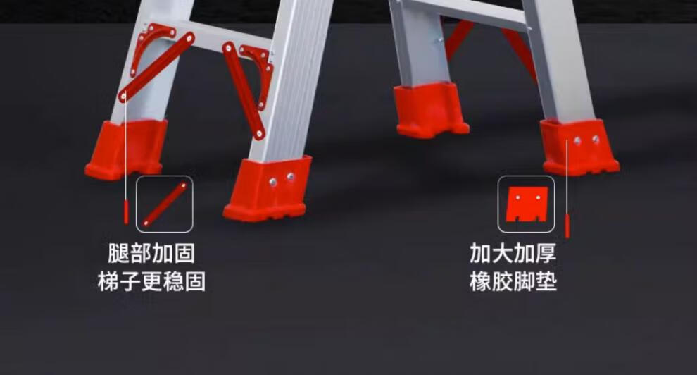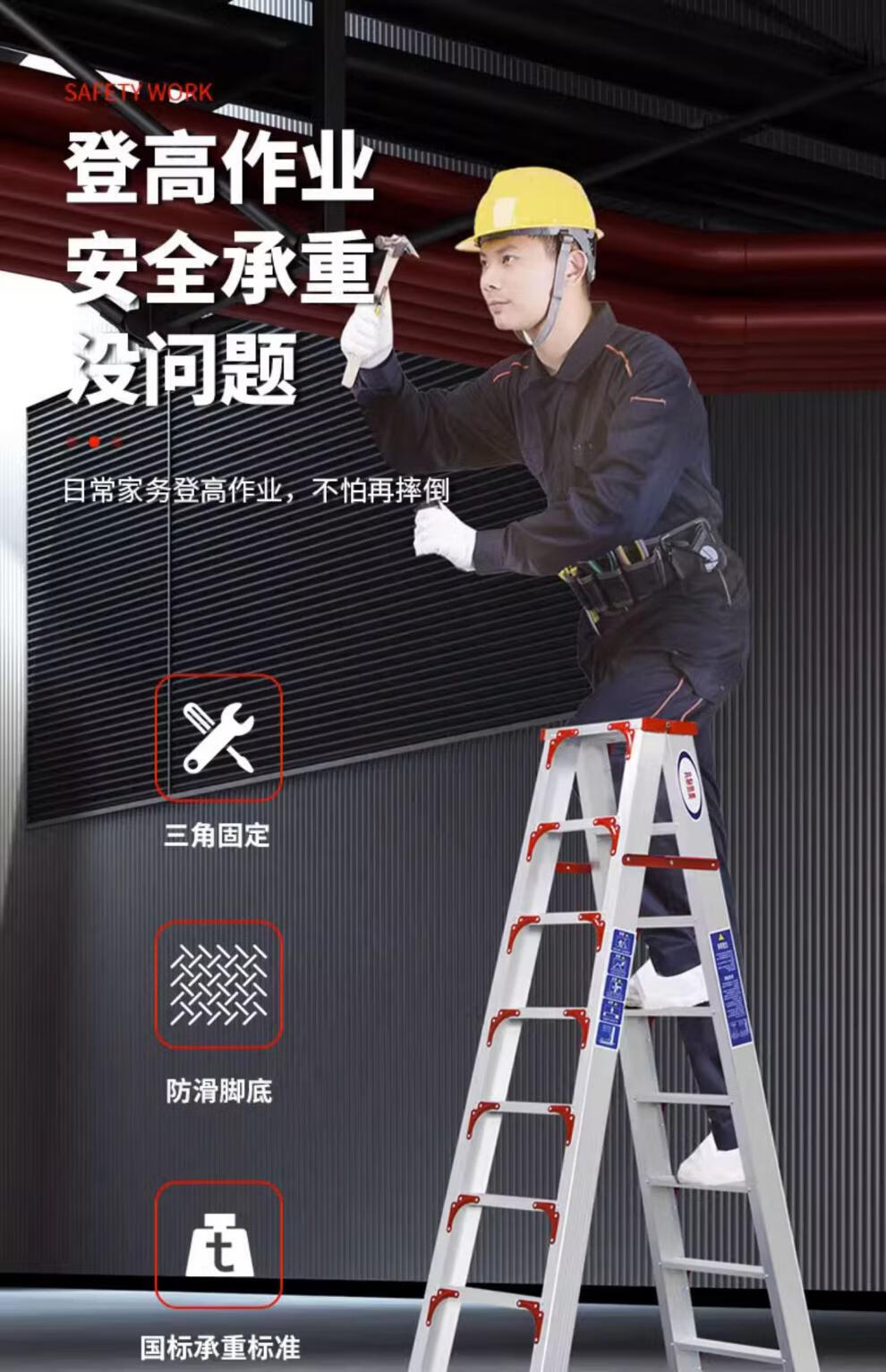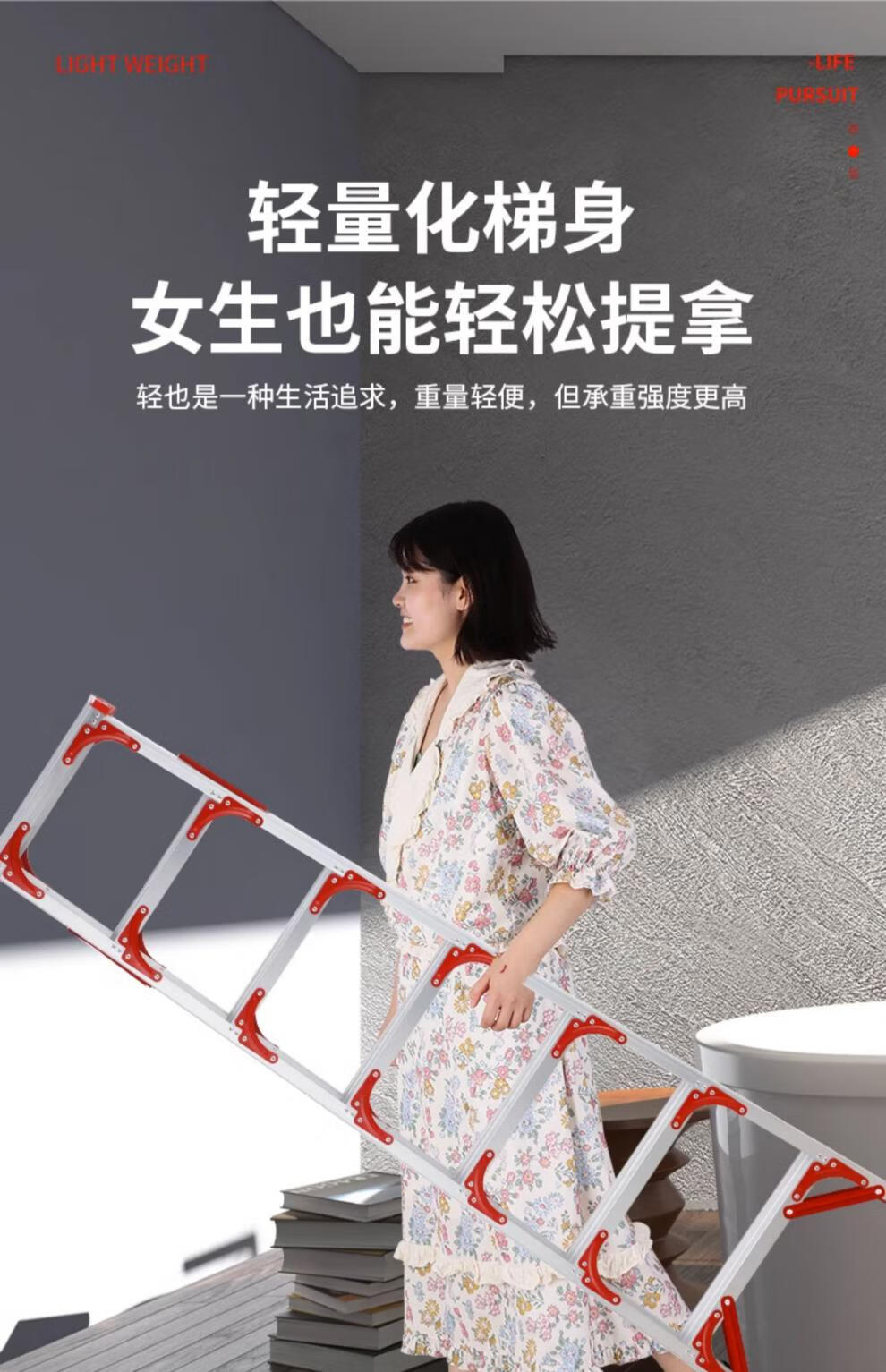Ladder with step reinforcement and thickening aluminum alloy herringbone ladder folding household climbing stairs telescopic engineering loft 2.0 meters fully reinforced + leg reinforcement