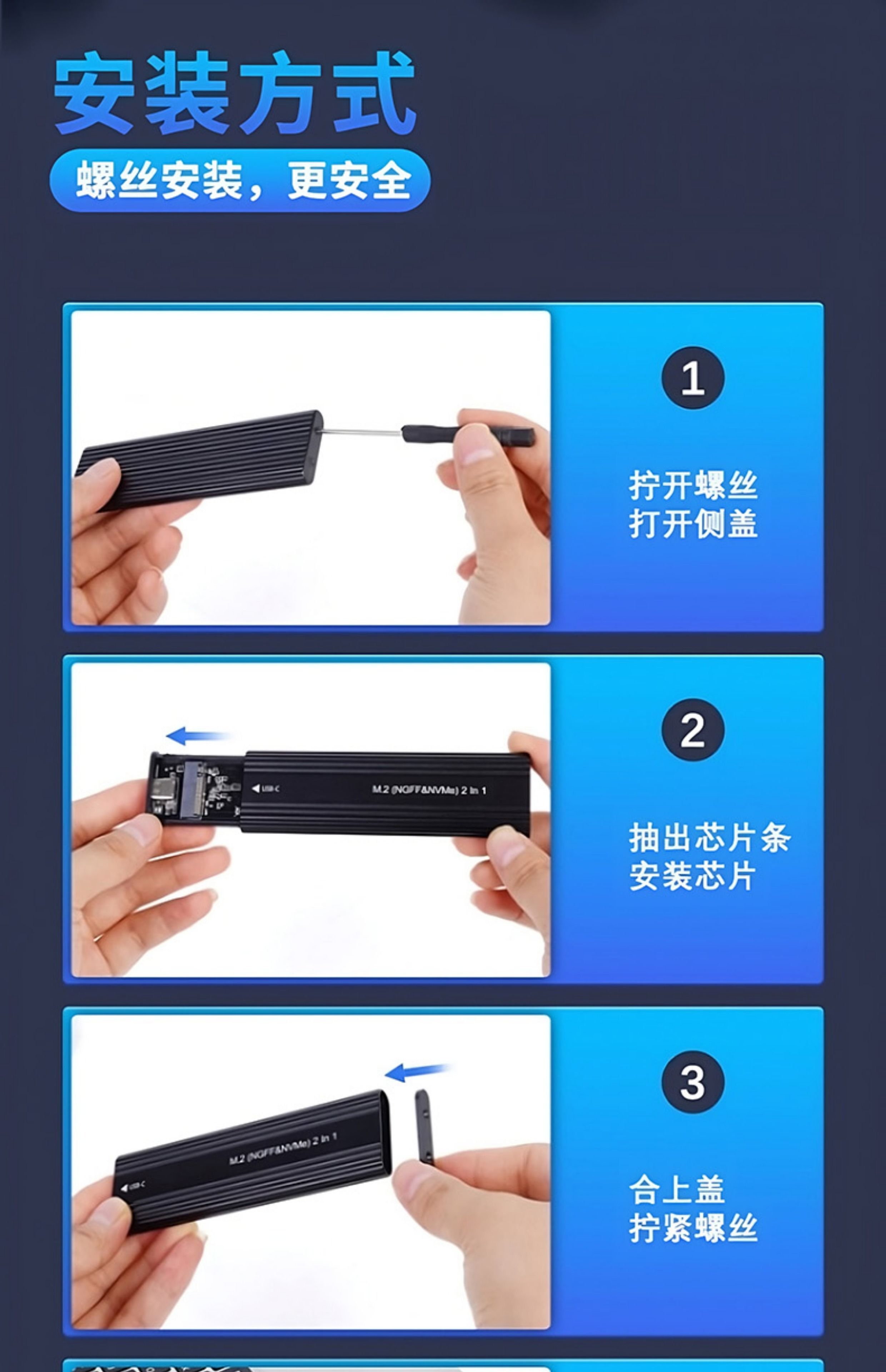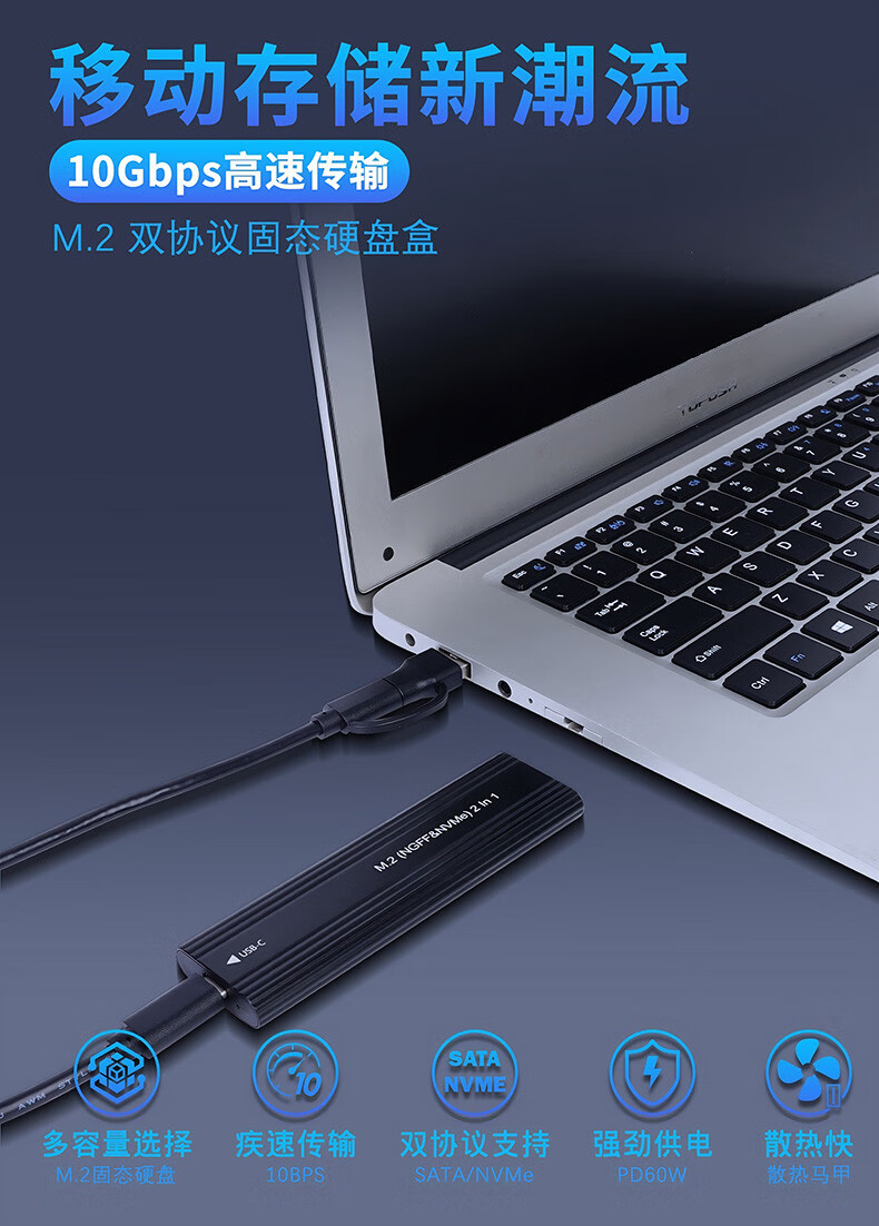 NVme solid state drive box m2 mobile hard drive box M.2 NGFF dual protocol USB3.1 box sata external shell frosted silver screw-free model NVME/SATA dual protocol +3.15