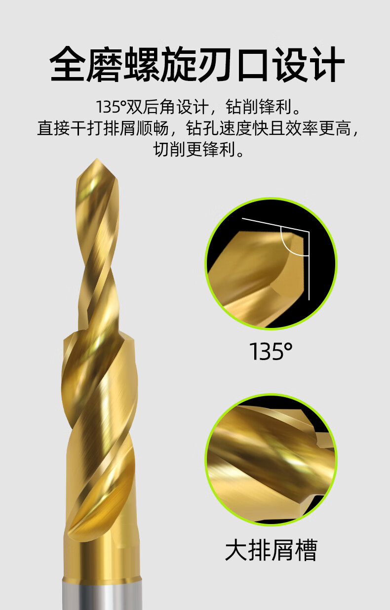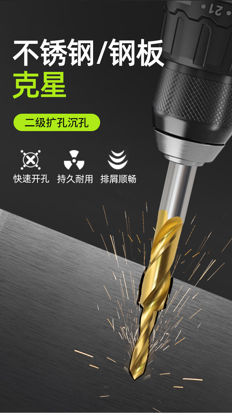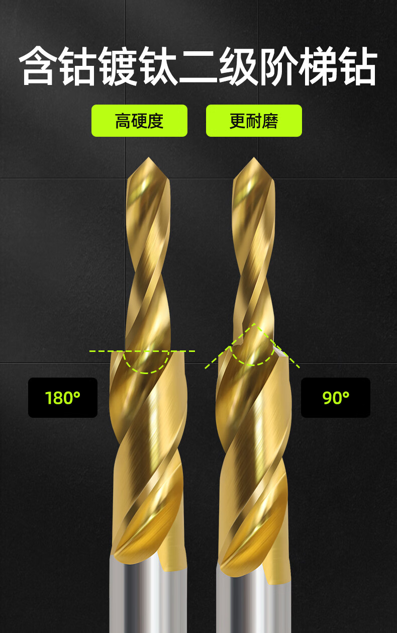 Wide-blade step drill bit 90/180 degree cobalt-containing titanium-plated step drill bit M3-M12 countersink and chamfer integrated drill countersink drill Specifications * small diameter * large diameter * groove length * shank diameter *