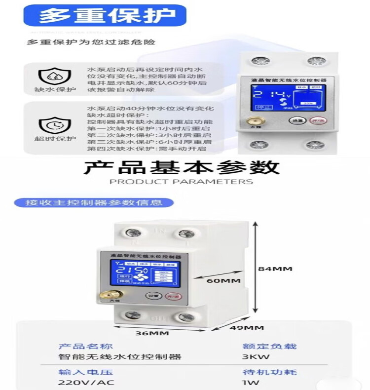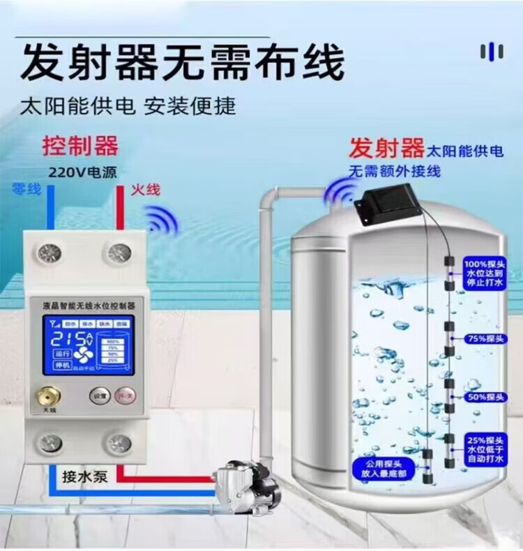 Water tower automatic pumping start and stop control, fully automatic motor water pump, high-power wireless remote control switch, intelligent wireless water level meter, direct use within three-phase 380V, solar model, upgraded model