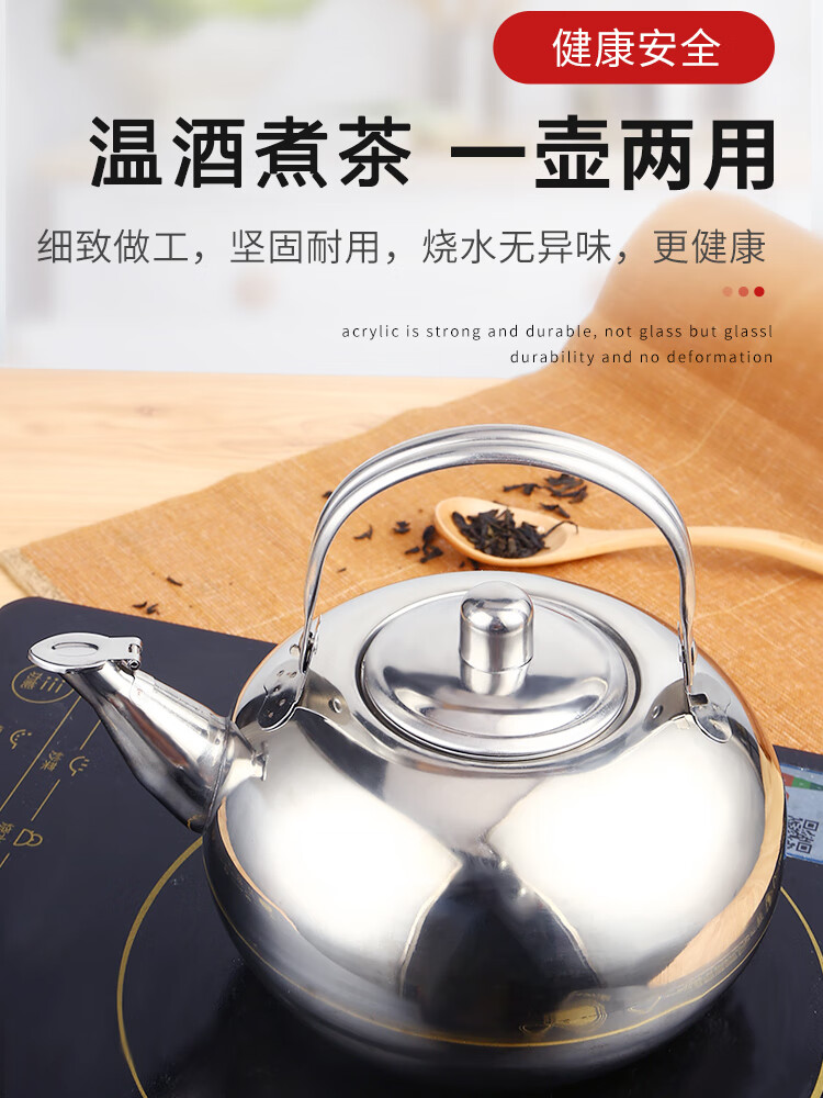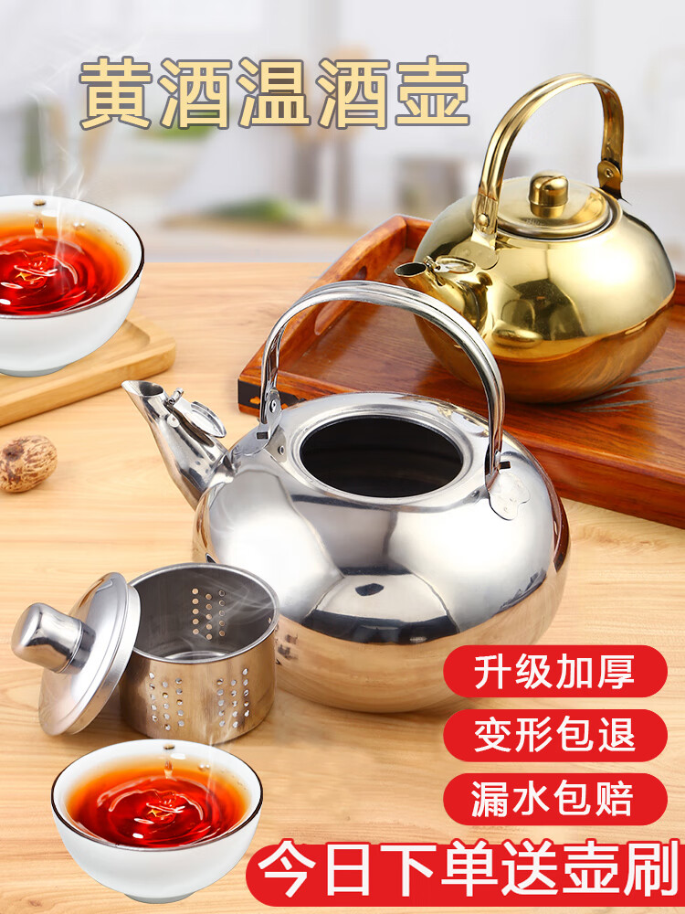 Fat Donglai's same style wine boiler, rice wine warmer kettle, household scalding wine, hot wine, shochu, old-fashioned stainless steel induction cooker, thickened 14cm elegant silver, holds about 1L of wine, free