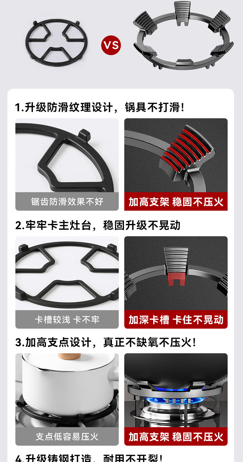CAMTE gas stove bracket thickened cast iron gas stove bracket non-slip windproof flame hood stove pot bracket four or five claws universal anti-slip bracket four or five claws universal