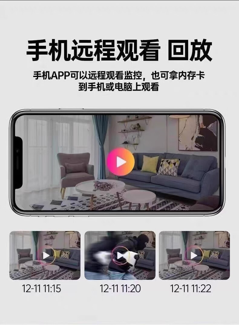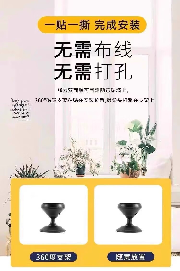 No red light camera home mobile phone remote no plug-in no installation no need network high definition night vision monitoring home ultra clear black mobile phone remote + no installation 128GB loop video card