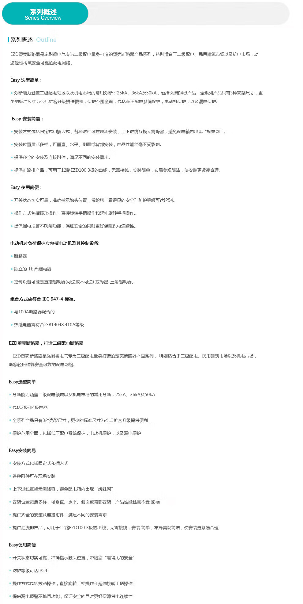 Shantou Lincun Schneider Electric molded case circuit breaker EZD 1-4P 100A250A630A short circuit protection circuit breaker 100 EZD100M-50A4P