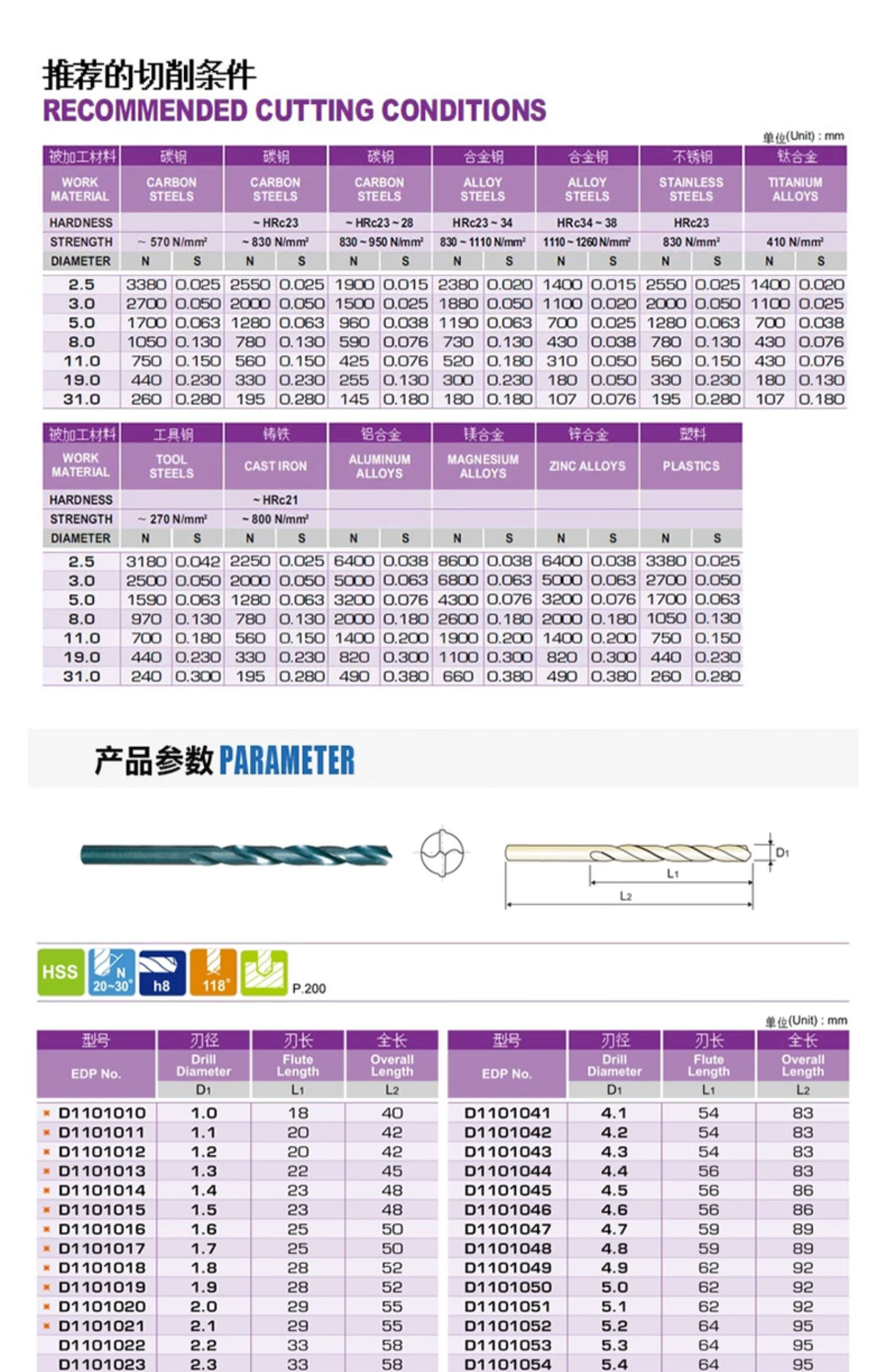YG imported straight shank twist drill bit D1101 cobalt-containing stainless steel drill bit high cobalt electric drill drill bit 2-13mm 1.3mm (price for ten pieces)