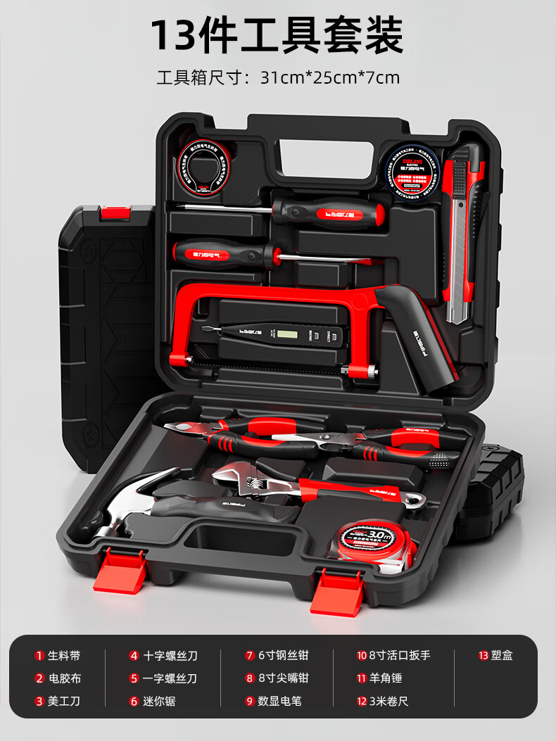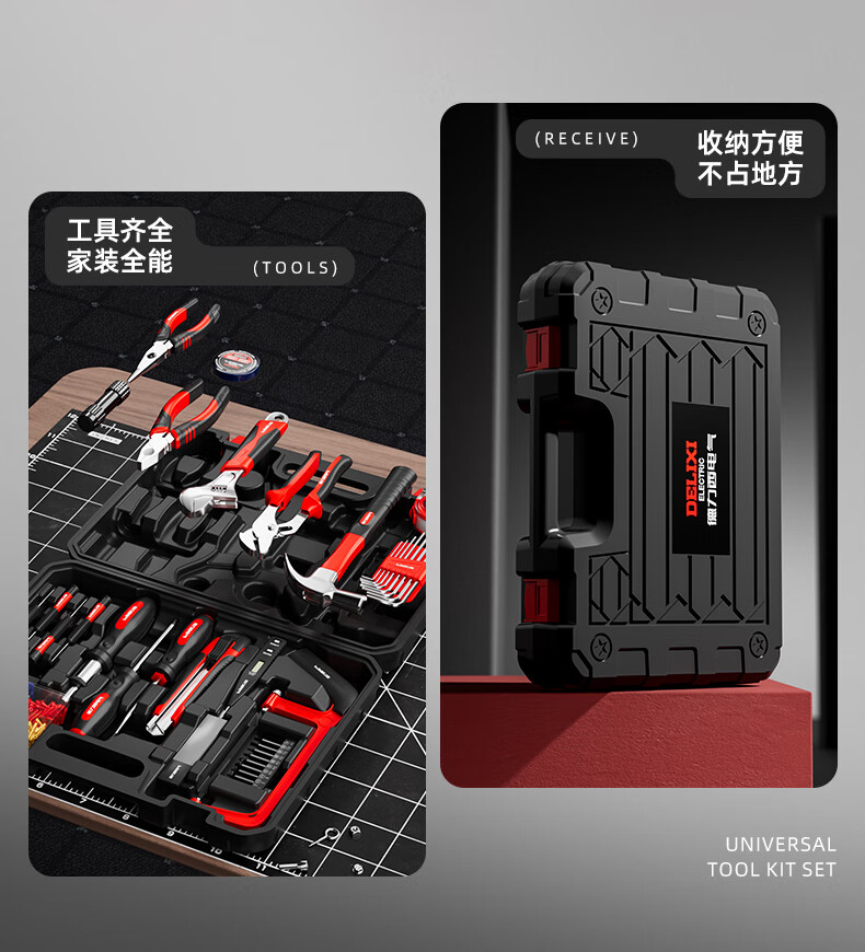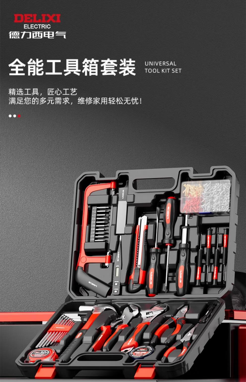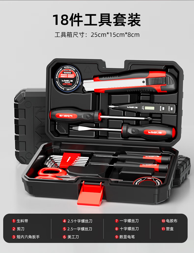 Delixi Electric Household Tool Set Home Repair Plumbing Tool Box Electrician Woodworking Combination Complete Set of Tools Delixi Electric - 18-piece set commonly used at home