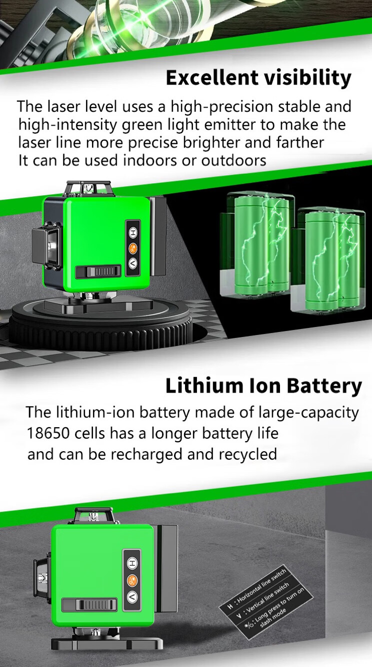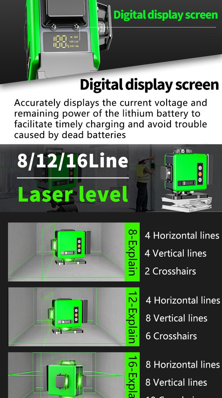 12-line laser level 200 milliwatt green light 16-line high-precision ultra-bright wall and floor meter ultra-bright 8-line 200 milliwatt green light standard